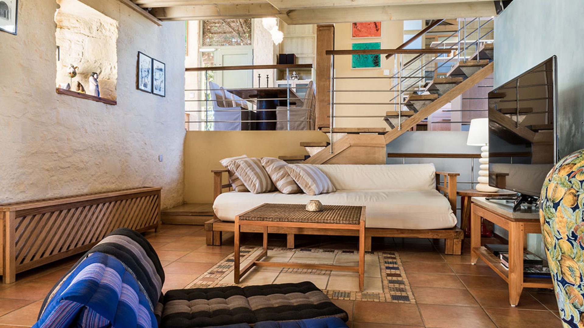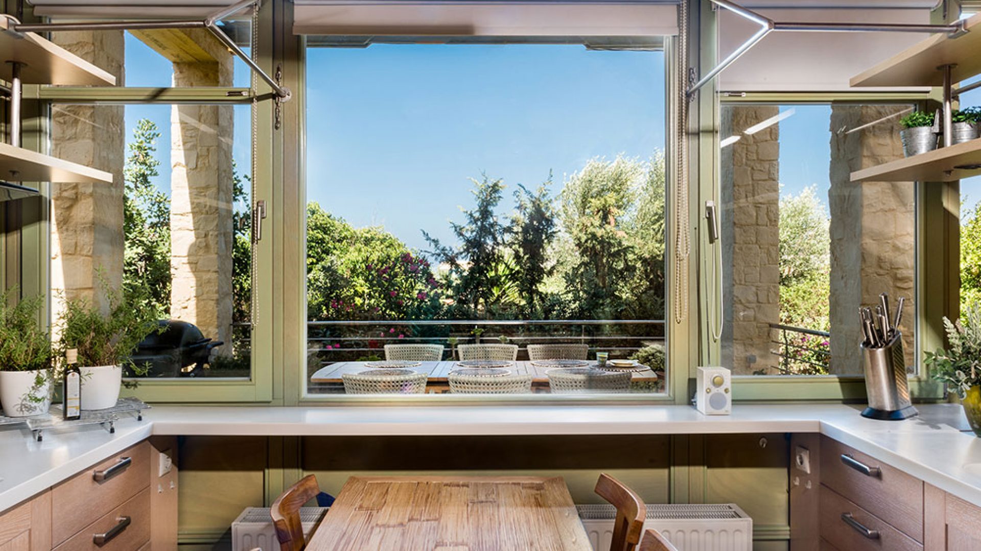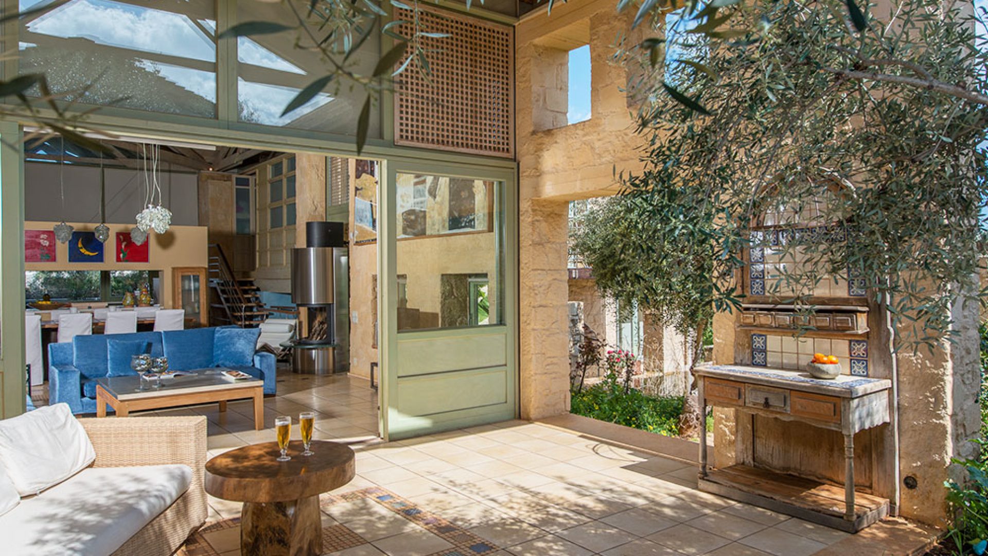 Situated at the Akrotiri peninsula, some 1200 meters from Kalathas’ sandy beach and fifteen minutes by car from the city and the airport, the villa promises to enthrall you in the blink of an eye.