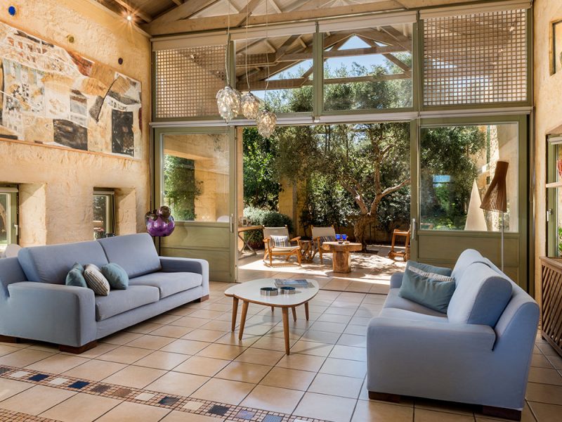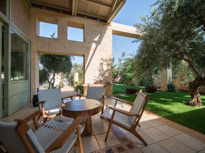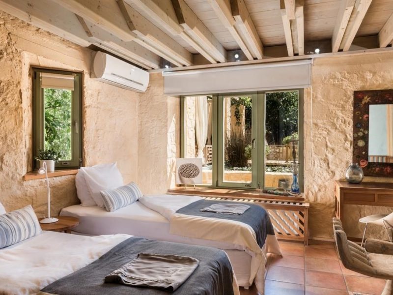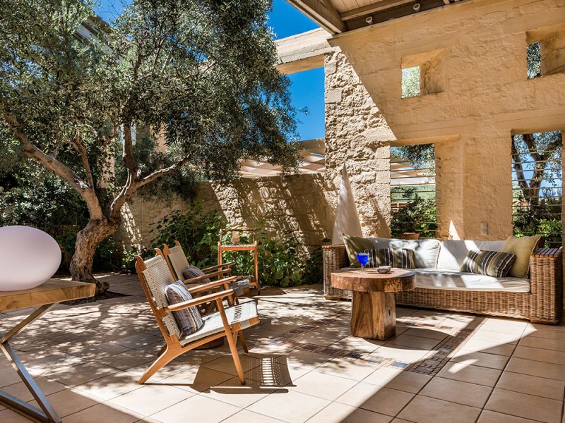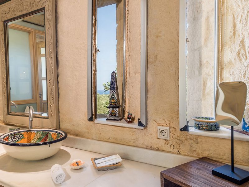 An architectural reflection of the Cretan landscape, bathing in the glorious Greek light and enfolded in the green tapestry of the surrounding olive grove, the luxurious resort lives up to one’s highest expectations. The modern, stone carved rooms, breath inside a pallet of warm, earthly colors and provide the whole range of comforts to indulge in.