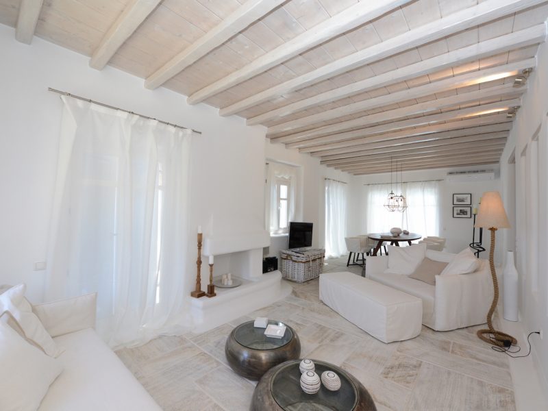 Dilana Villa is only a short walking distance from the beaches of Saint John and Ornos, and just ten minutes away from the Mykonos Town with the intense cosmopolitan life.