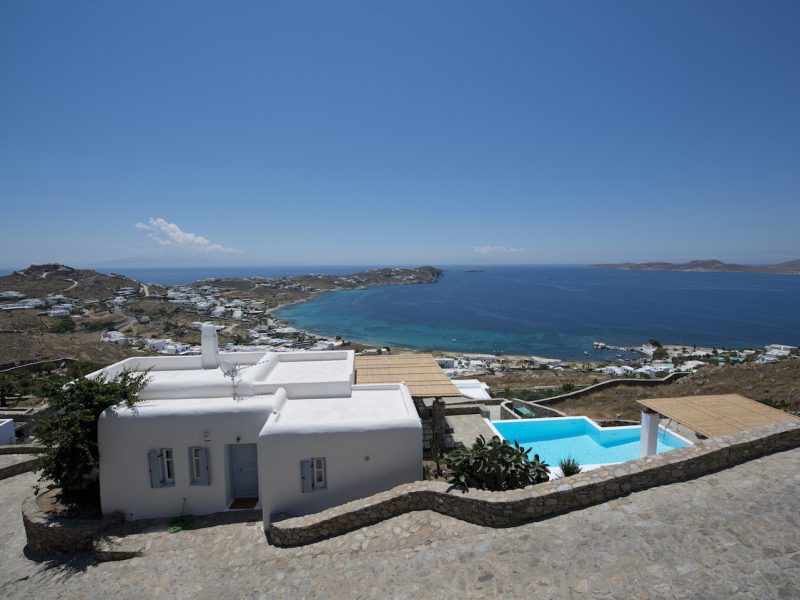 Dilana Villa is a unique privately owned villa and is situated on the hill of Saint John on Mykonos Island, in one of the sought after areas on the island. Located on a peacefully elevated plot, overlooking the Aegean Sea and the ancient island of Delos, it gives you the privilege to enjoy the unique colors of the sunset- beautiful naturally created scenery.