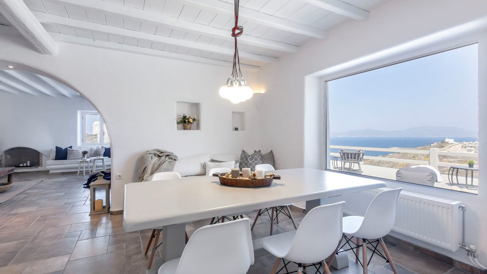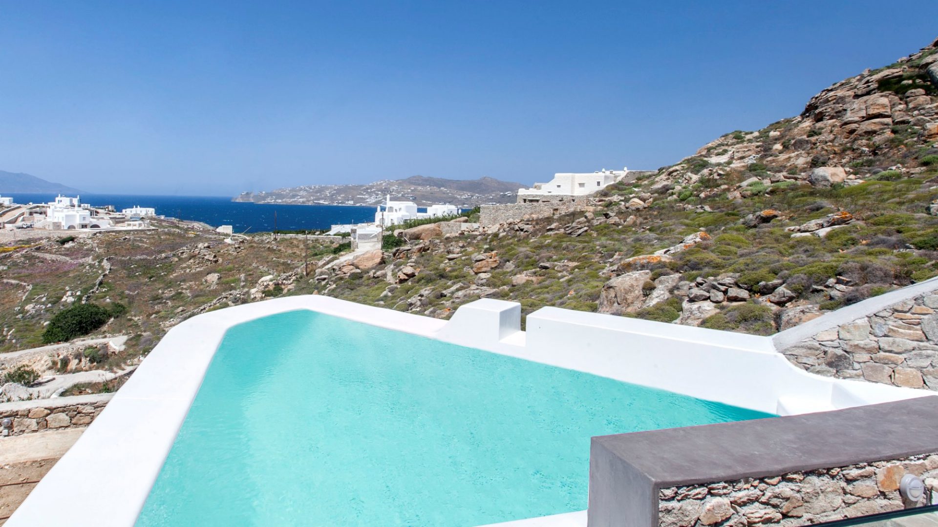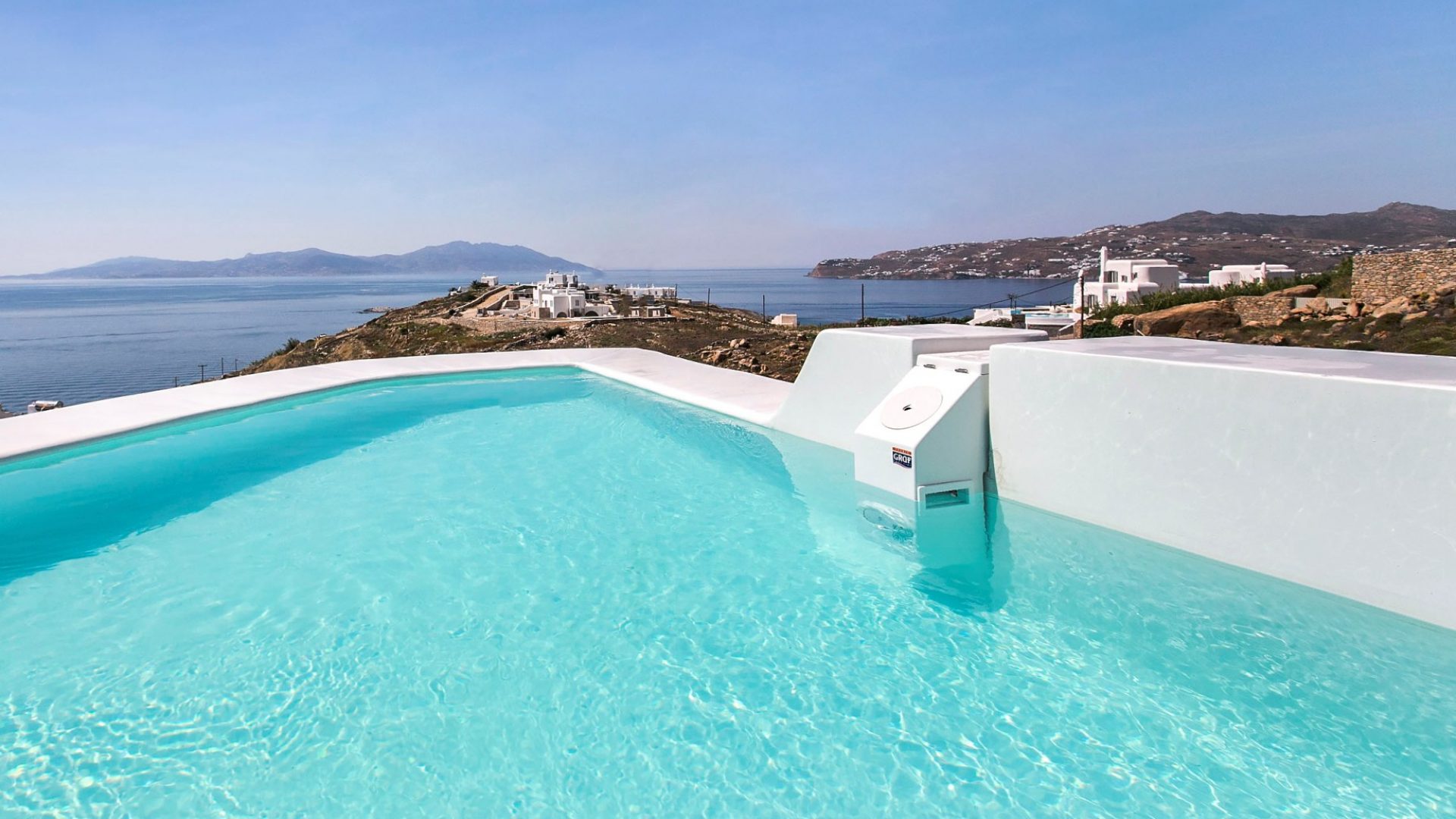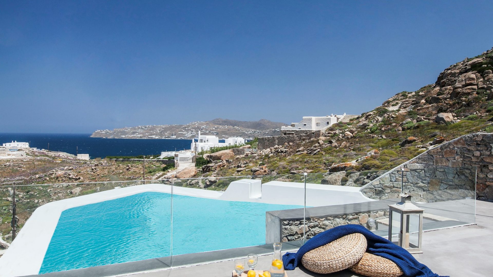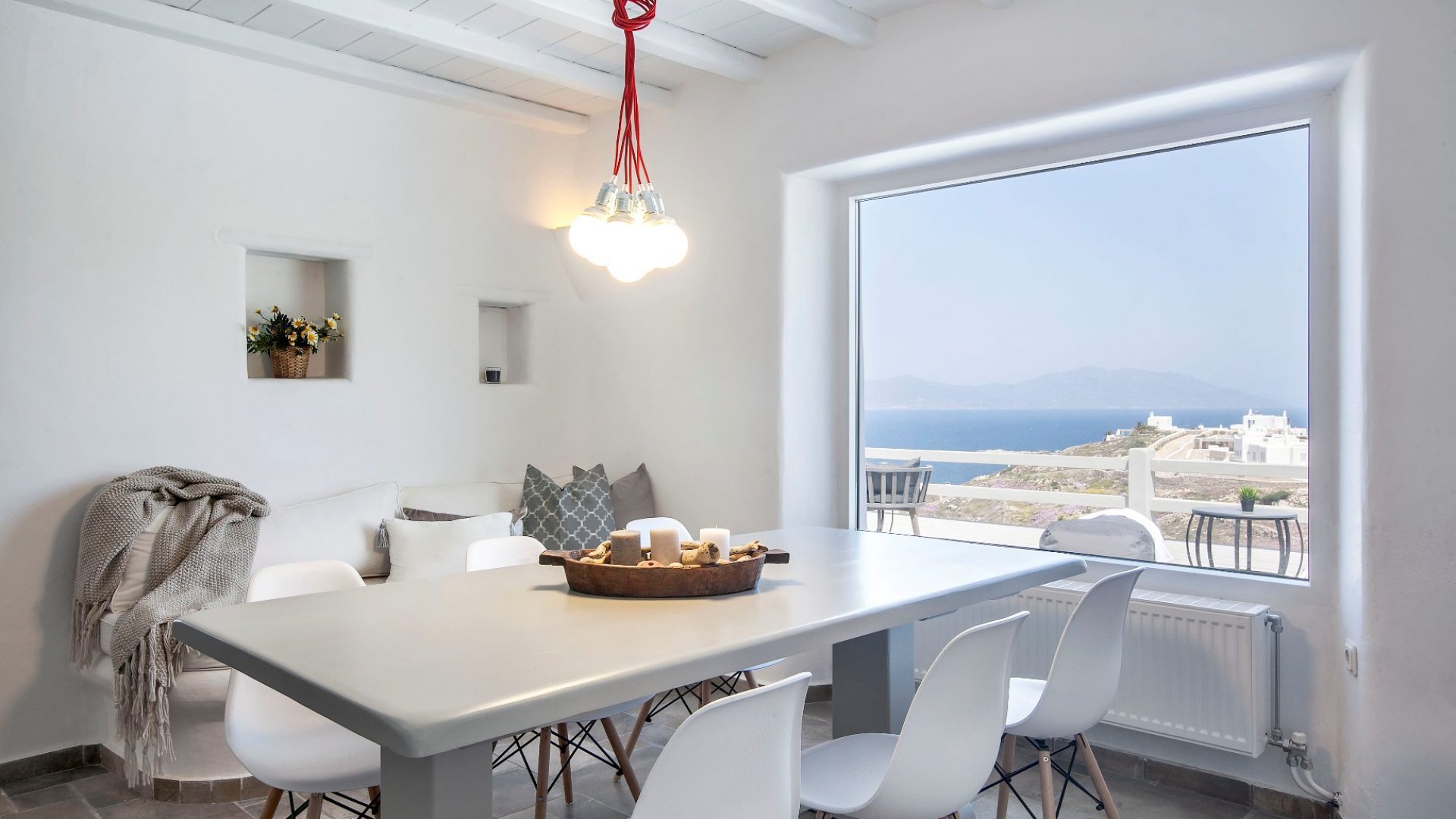 Ornos beach is only a five-minute drive from the villa…lovely! Lovelier so is the fact that after a fun-filled day out exploring the island, one can take an evening dip in the pool and rest on the inviting plush sun-beds. Villa Doria offers beautiful exterior landscaping complete with breathtaking pool resting at the crest of the Villa’s grounds, unobstructed sea views, shaded dining area as well as wooden deck with lounge areas. Yours to spoil your senses!