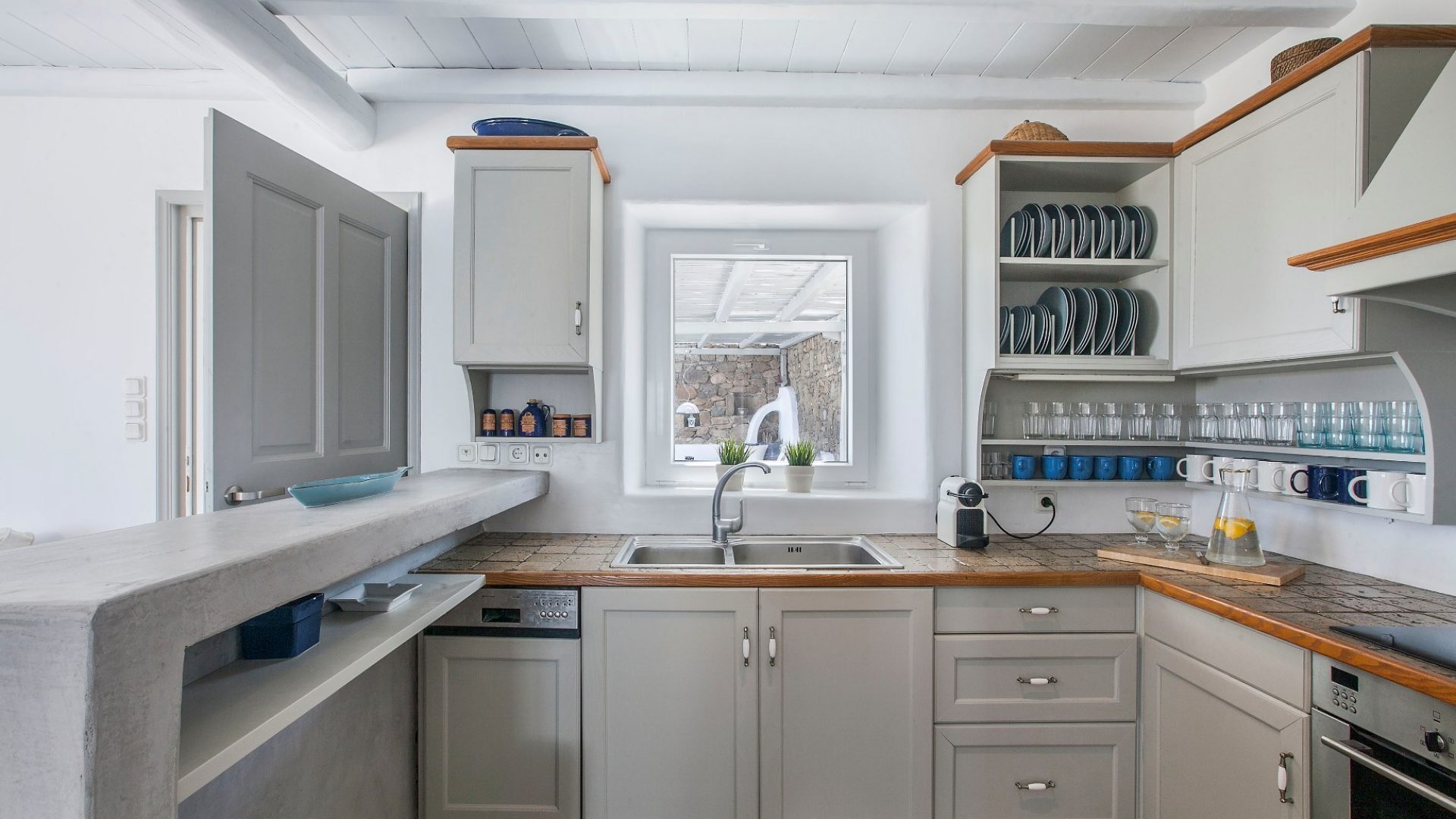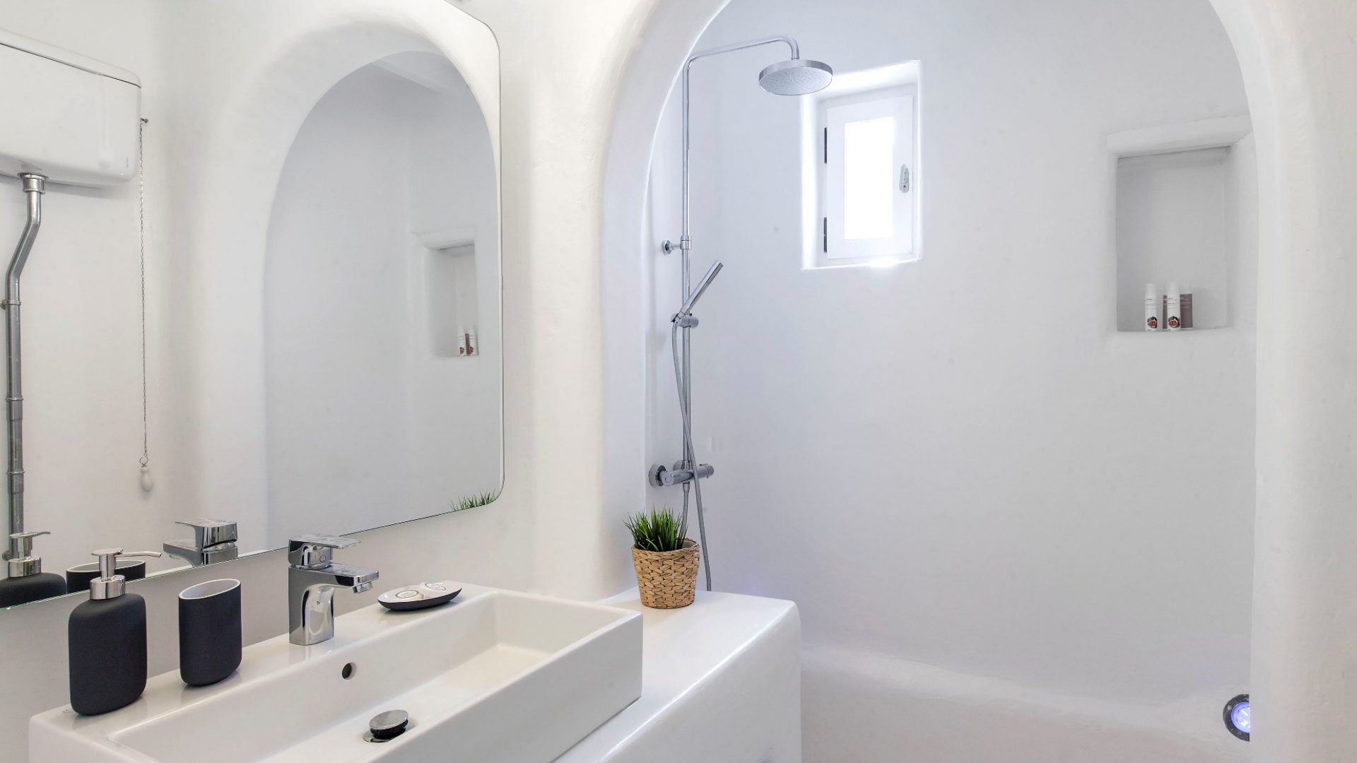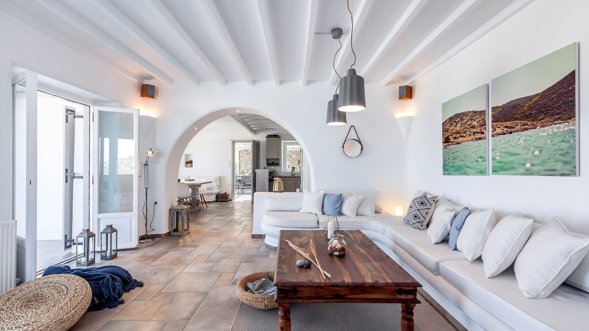 The flexible sleeping arrangements make it a breeze for parents with children or couples travelling without to find their private space in this gorgeous villa. The purity of the white walls inside and out lends the structure a dream-like, ethereal feeling with modern yet minimalist furniture and finishes throughout. Arches and double-pane windows and patio doors grace the villa and let welcome sunshine in, while enjoying a warm awakening.