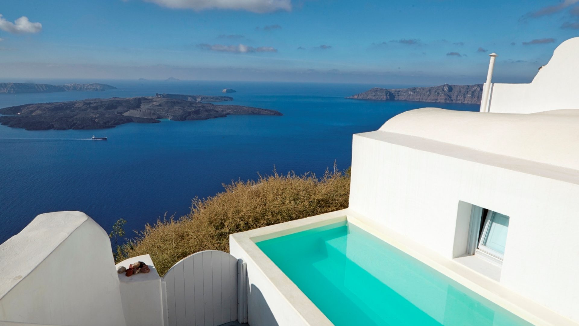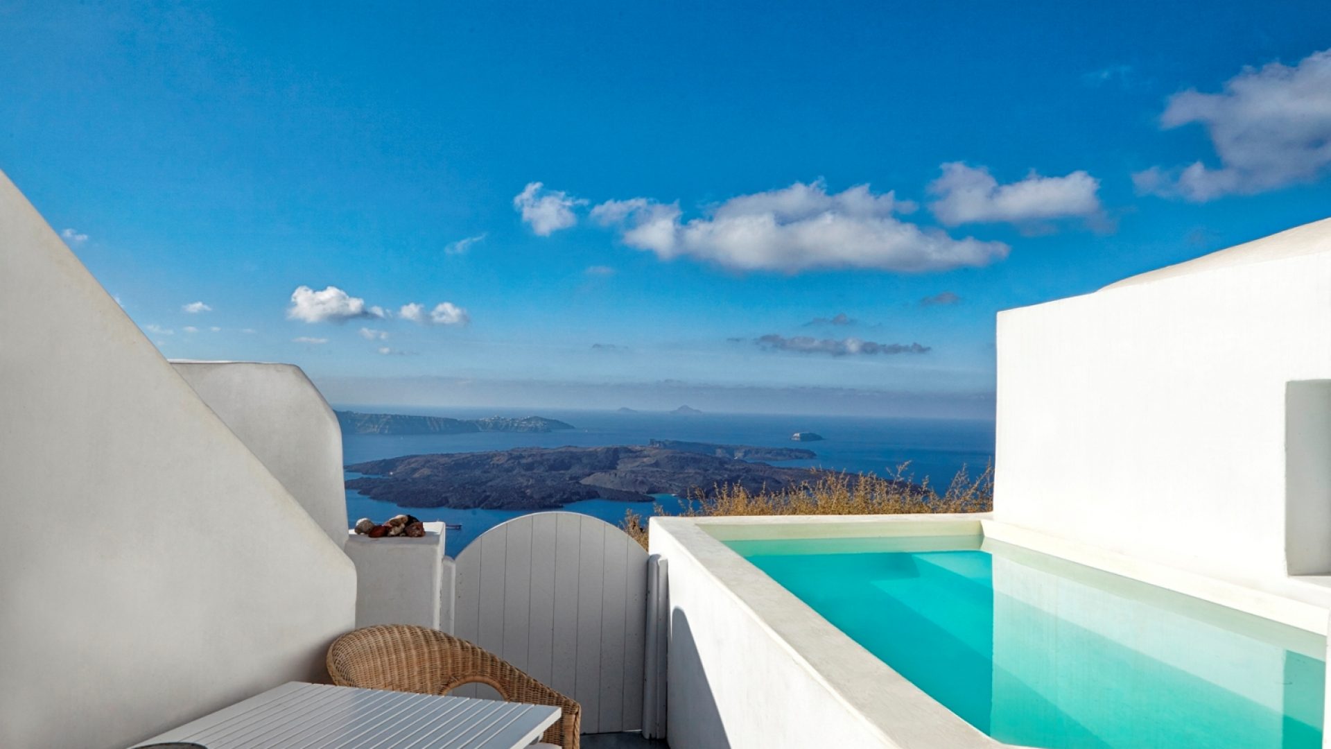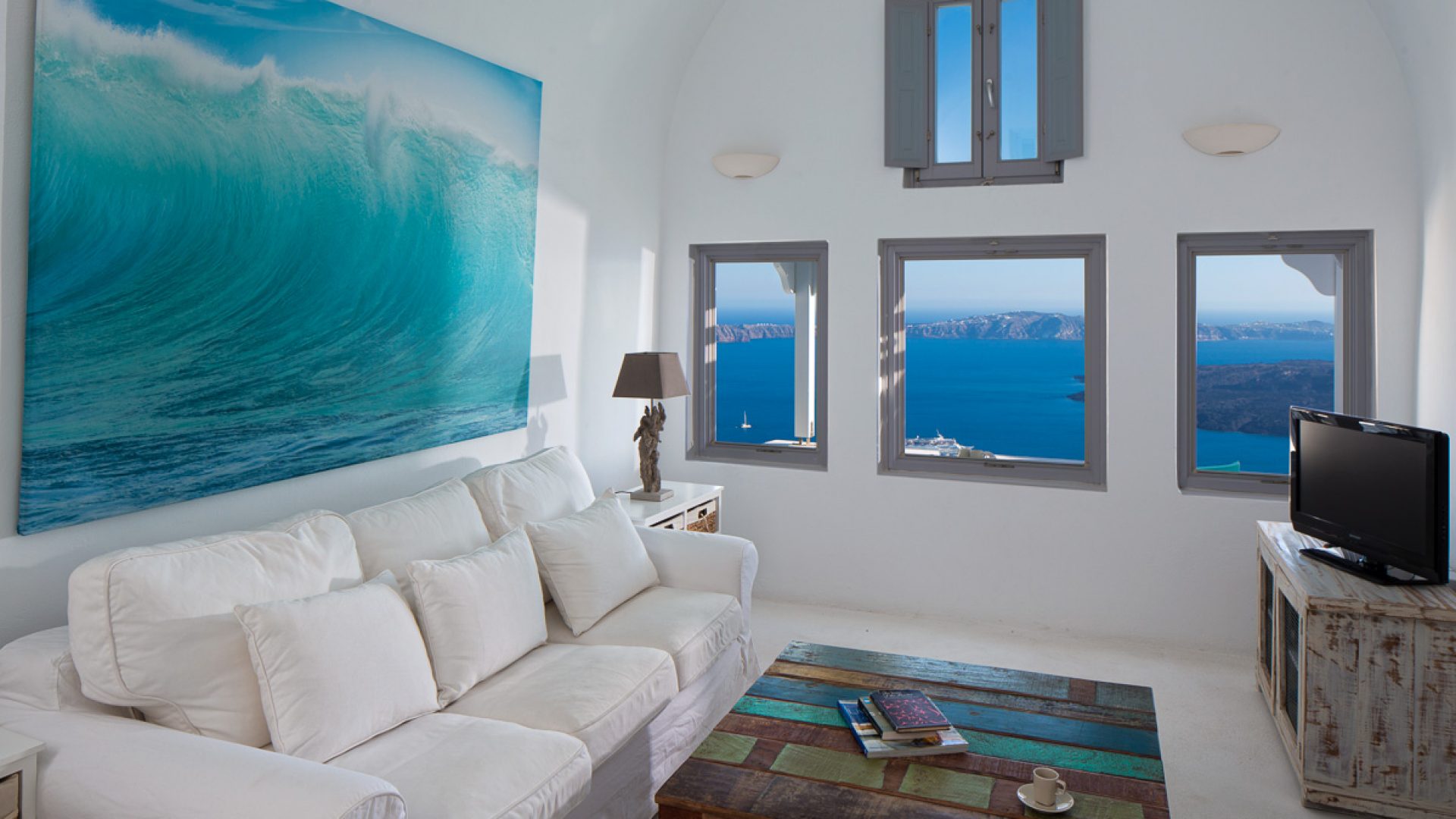 7CS49) VILLA EARTH, Imerovigli, Santorini Island. Experience princely moments