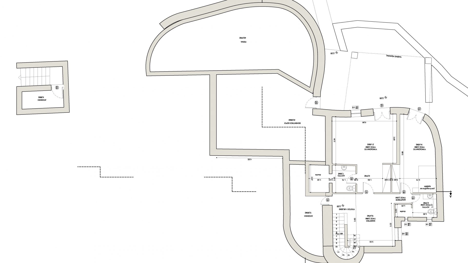 Last but not least, the secret suite of the back yard, features a small living room, two single beds and en-suite shower bathroom. The secret suite is also completely independent from the main and the guest pool house and has separate entrance.