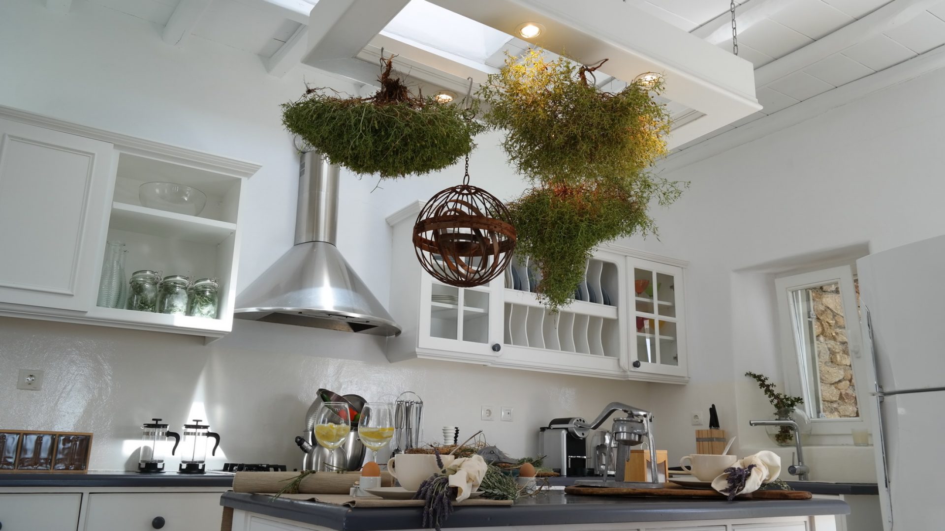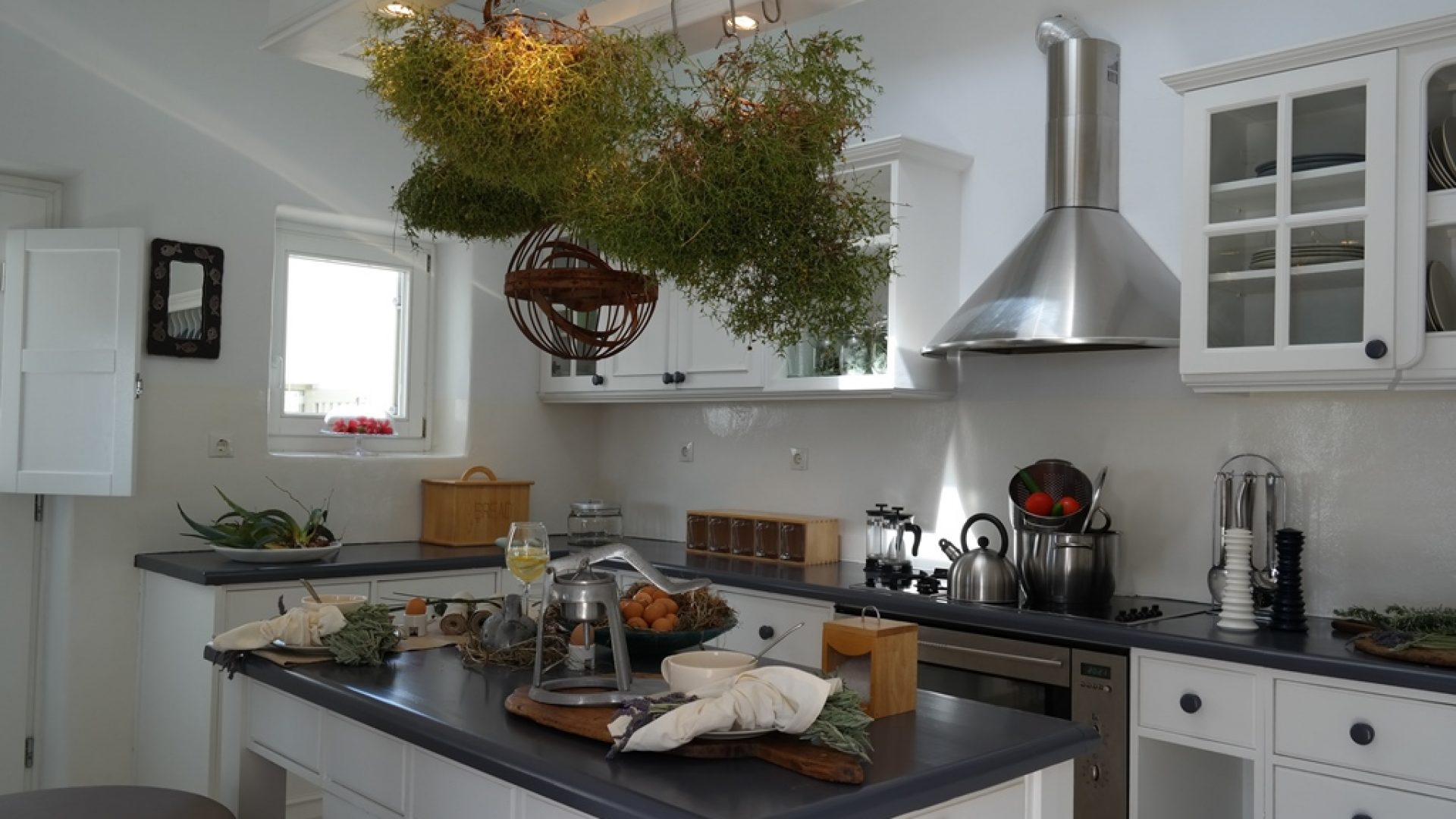Villa Elegante consists of the main house, the guest pool house and the secret suite. The main house is built on three different levels. The ground level features the living and the dining room, with direct access to the pool and private verandas, with gorgeous views on to the Aegean Sea. This level is set with a fully equipped kitchen, next to the dining area with seating for 12.