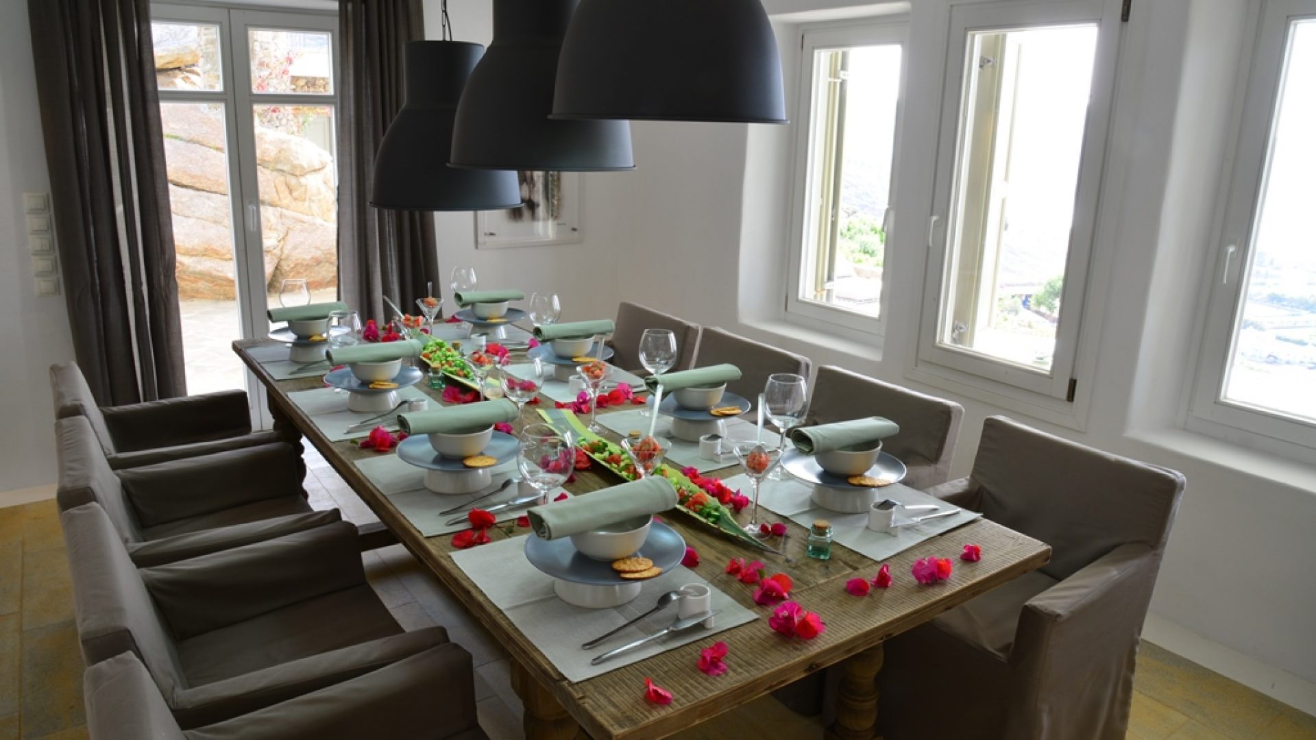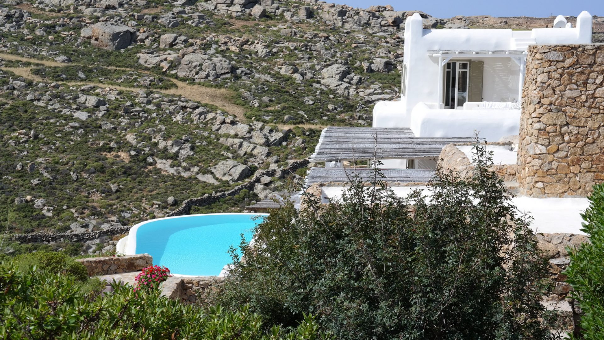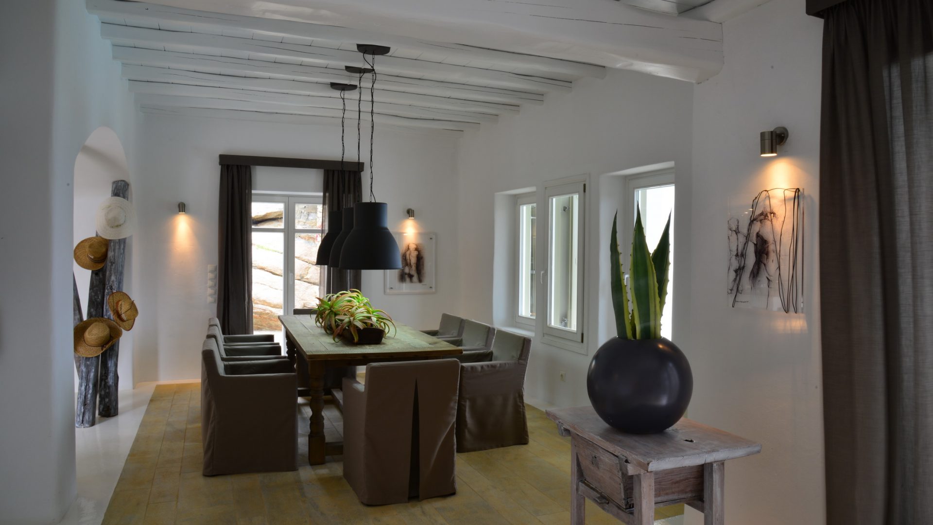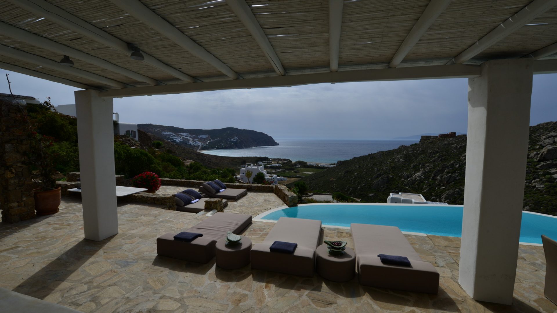 Everything you could possibly ask of luxury and amenities you will find in Villa Elegante. Situated on the southeast side of Mykonos island, Villa Elegante is standing elegantly on the top of the two famous beaches, Agrari and Elia. Comfort, quality, privacy and great views blend, to give our guests a unique experience.