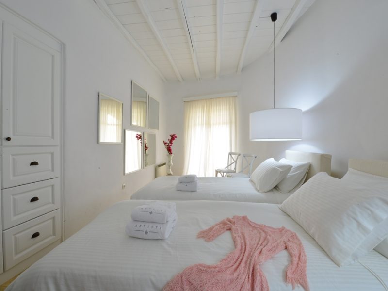 Last but not least, the secret suite of the back yard, features a small living room, two single beds and en-suite shower bathroom. The secret suite is also completely independent from the main and the guest pool house and has separate entrance.