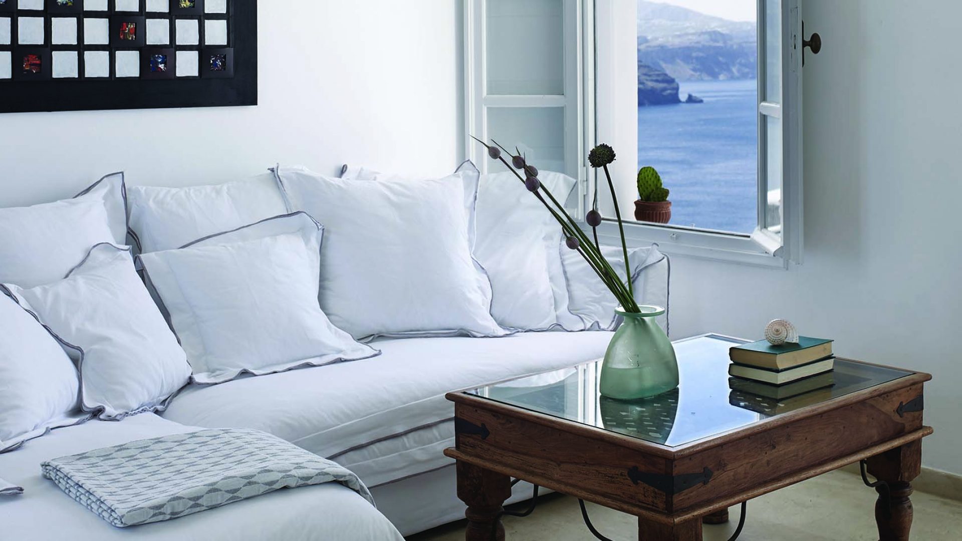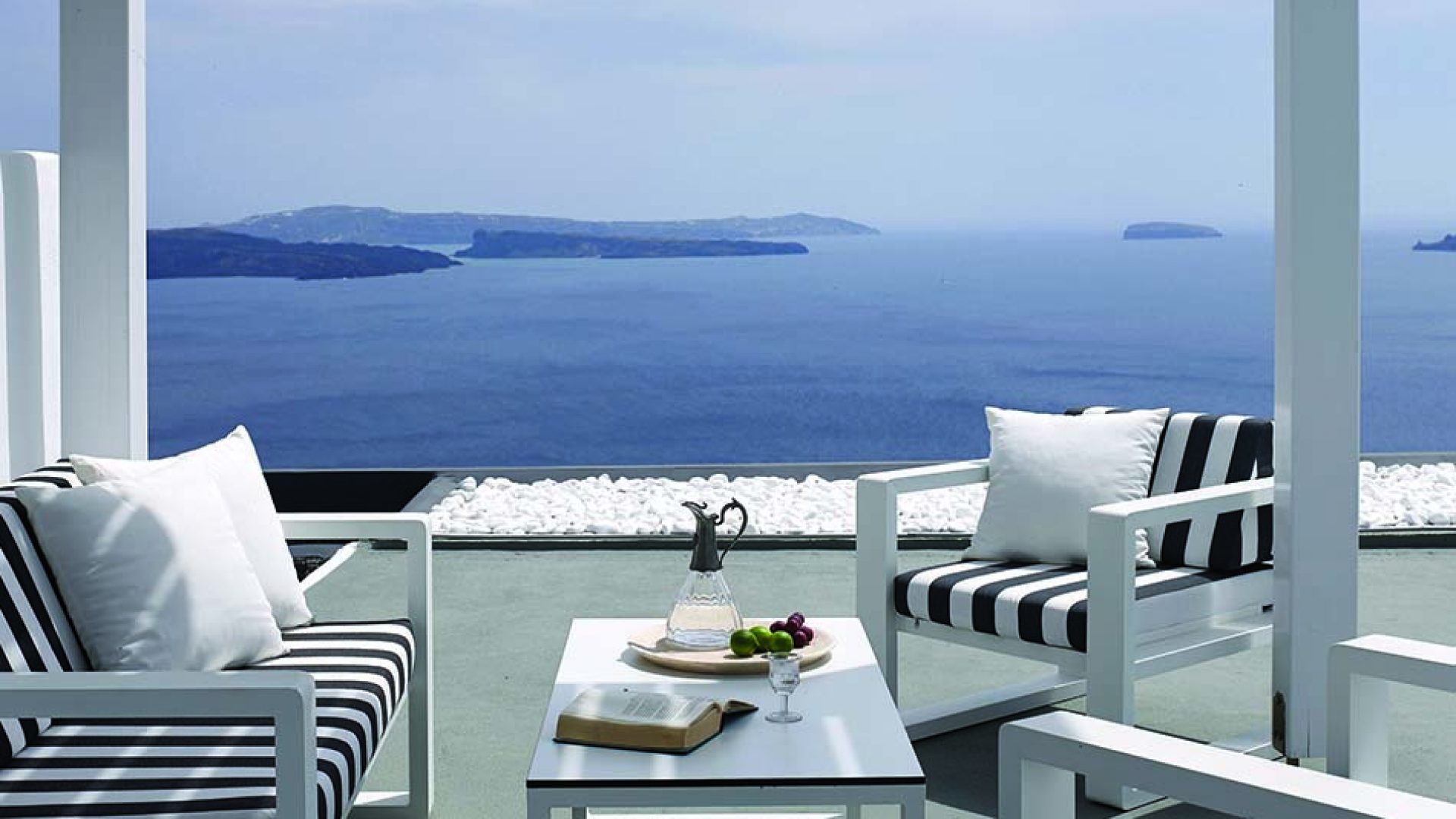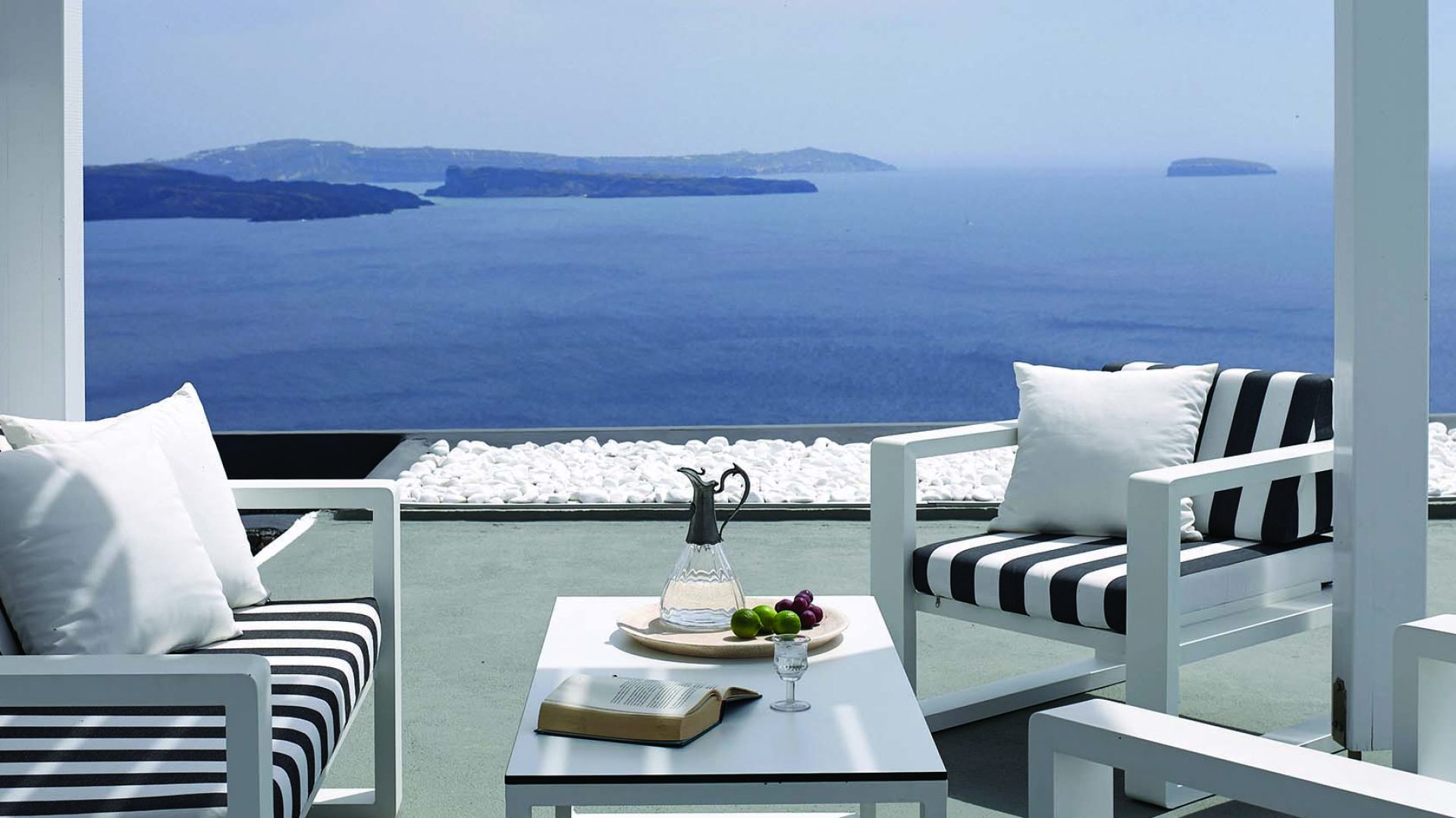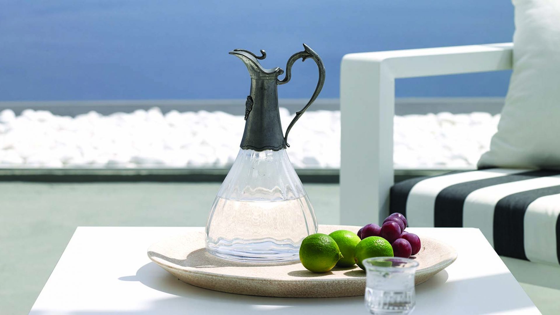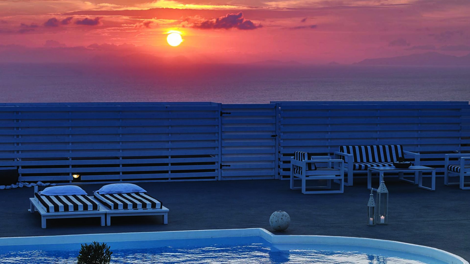 Perfectly adapted to the beauty of Santorini, the indoor decoration of the villa get inspiration from the Cycladic white and minimalism, composing a fairytale atmosphere for its guests. Designer furniture, high-end technologies, unique colorful details and exclusive services, promise to offer guests the essence of luxurious, peaceful holidays in Greece.
