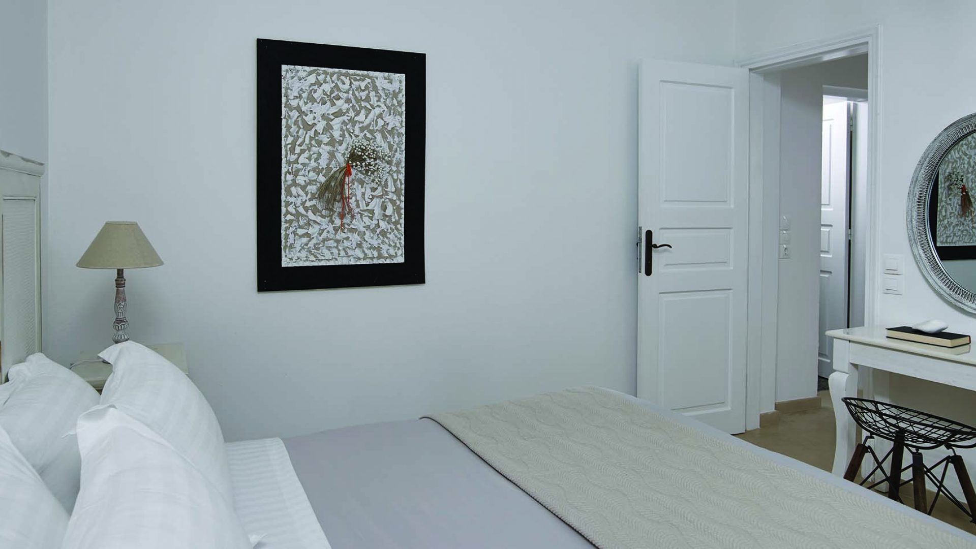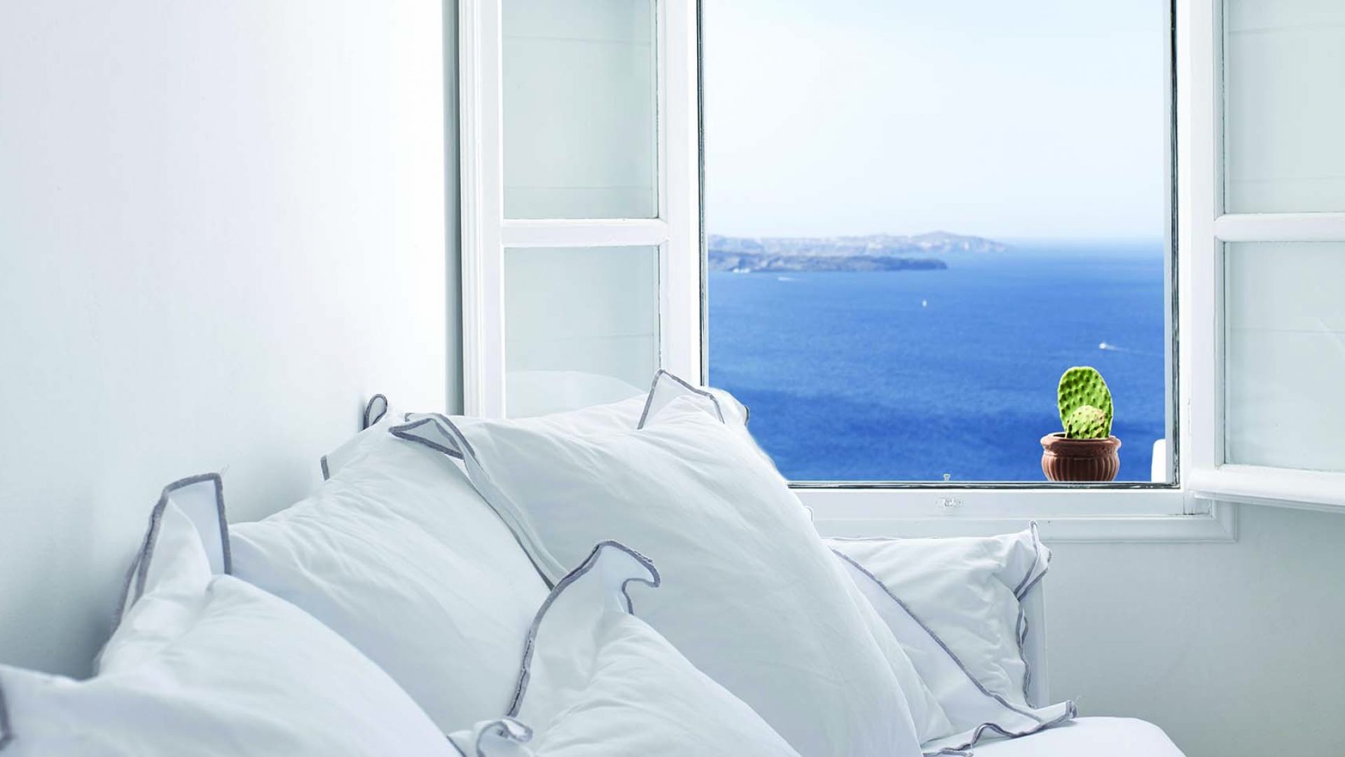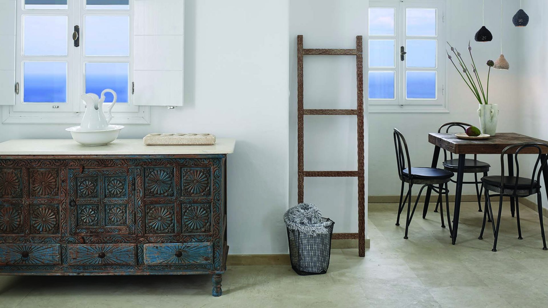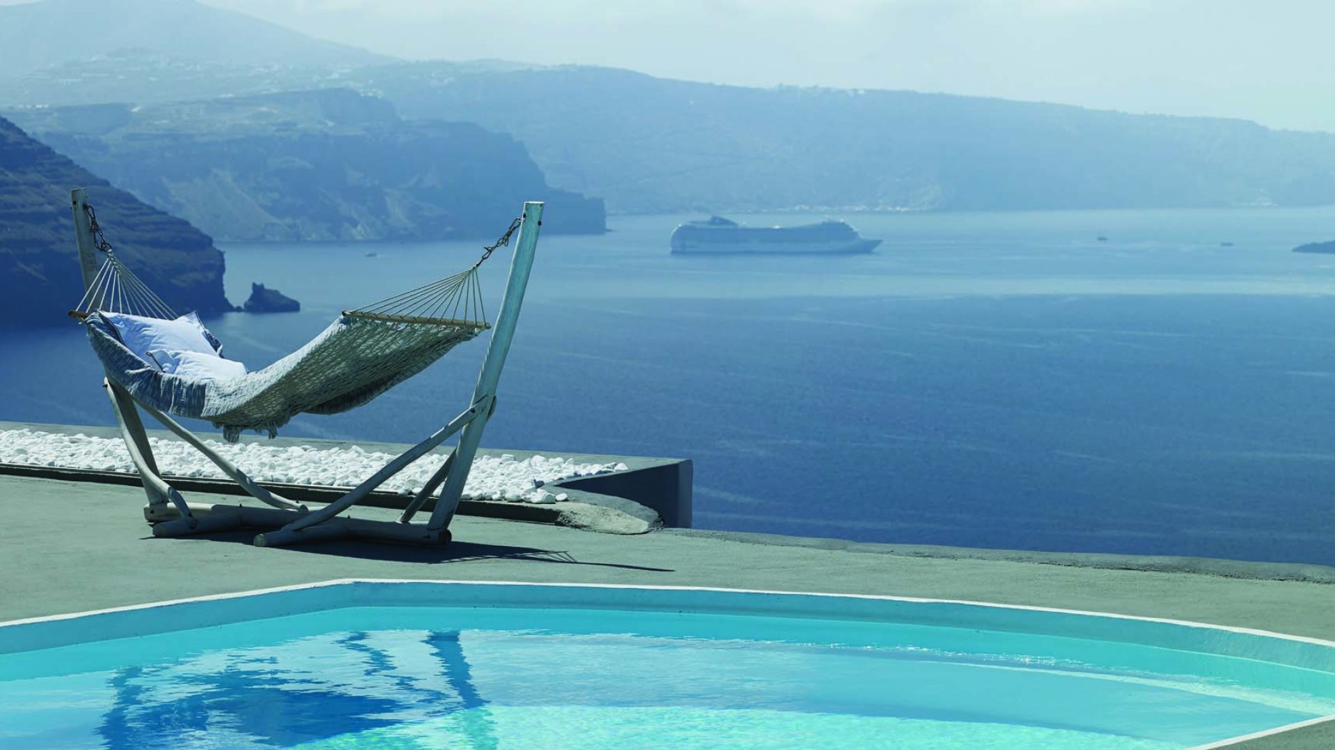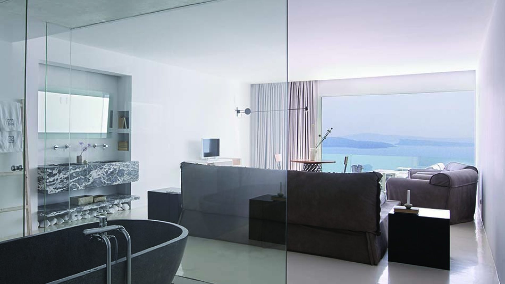 Perfectly adapted to the beauty of Santorini, the indoor decoration of the villa get inspiration from the Cycladic white and minimalism, composing a fairytale atmosphere for its guests. Designer furniture, high-end technologies, unique colorful details and exclusive services, promise to offer guests the essence of luxurious, peaceful holidays in Greece.