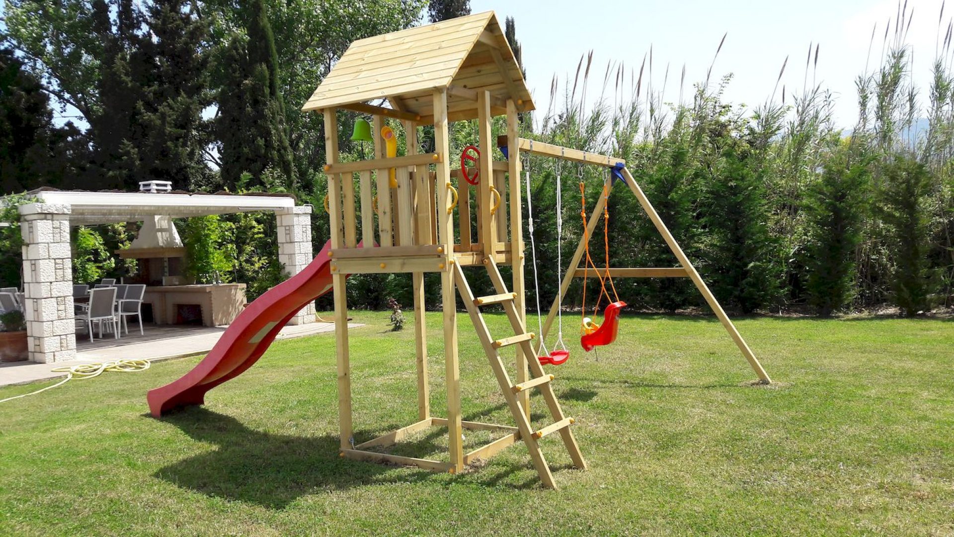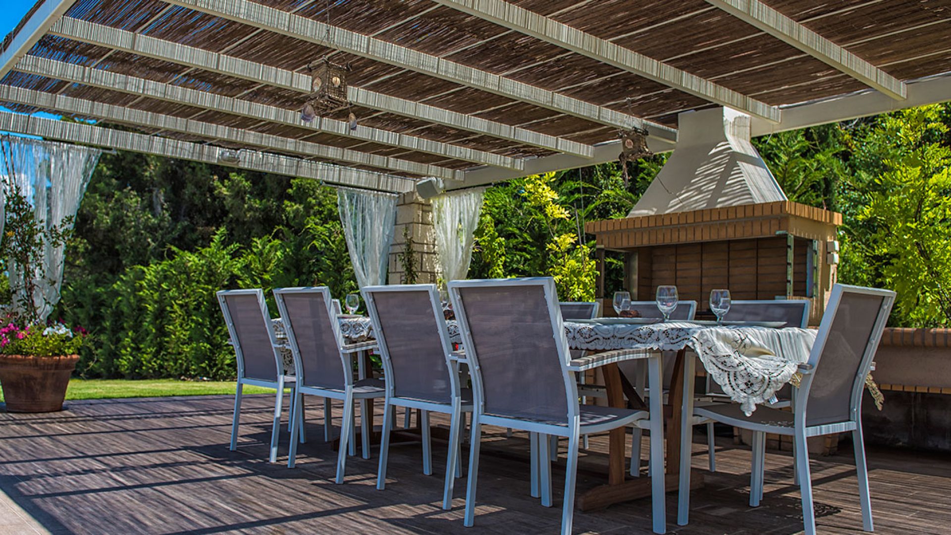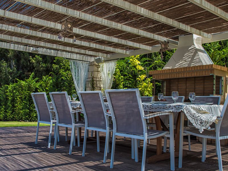 For those who don’t feel like staying inside, there is a fully equipped BBQ area with a dining room of 12 and tents protecting you from the sun while letting you enjoy the perfect weather of Greece.