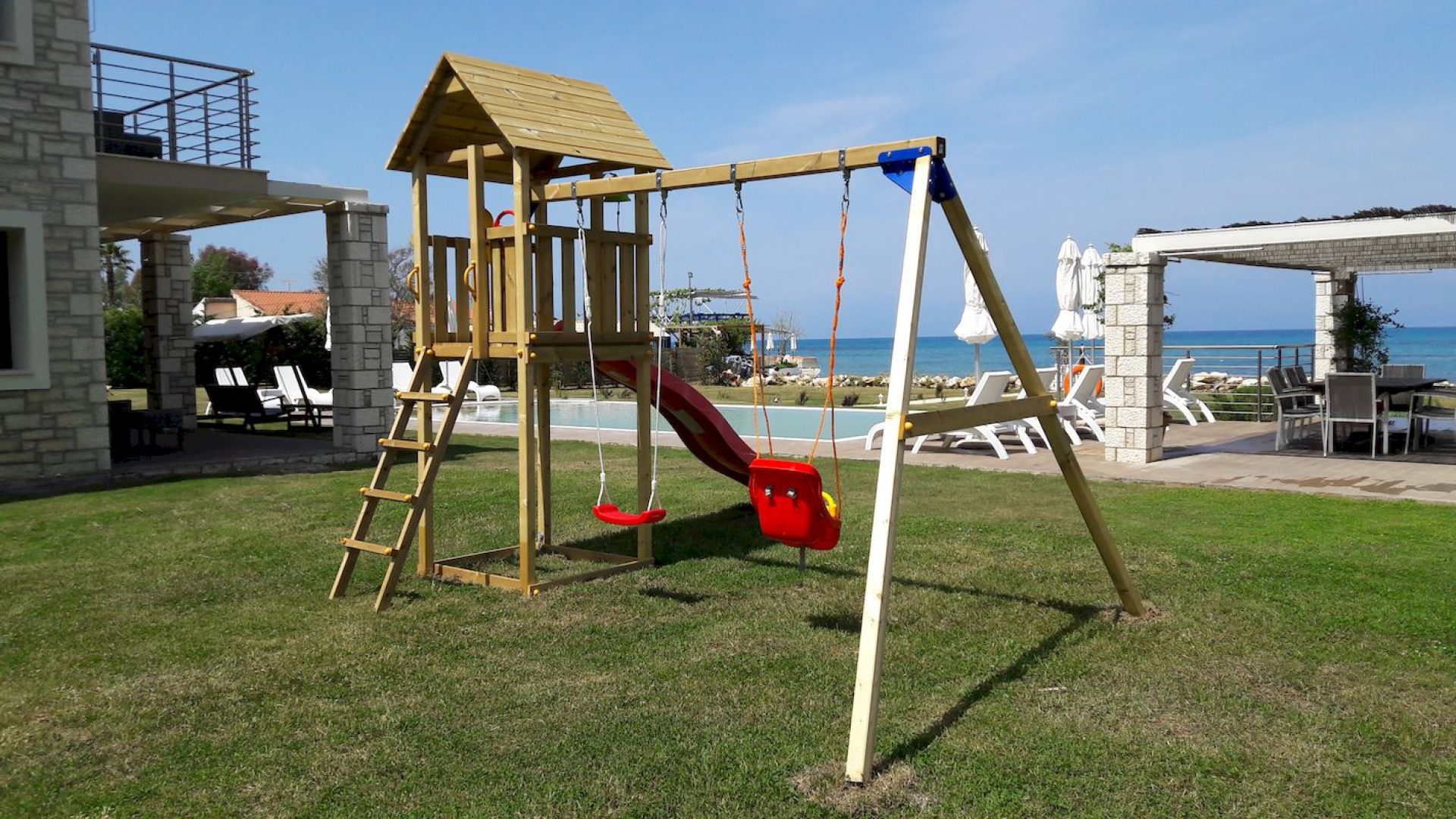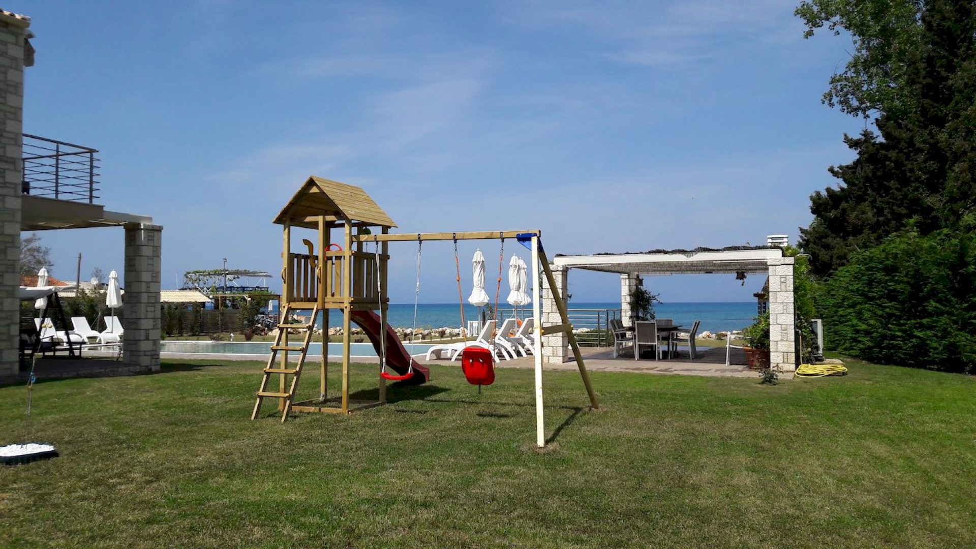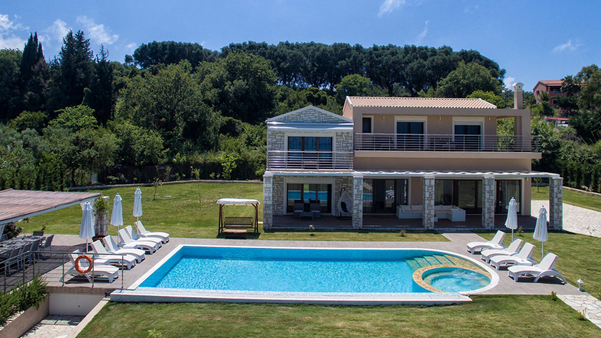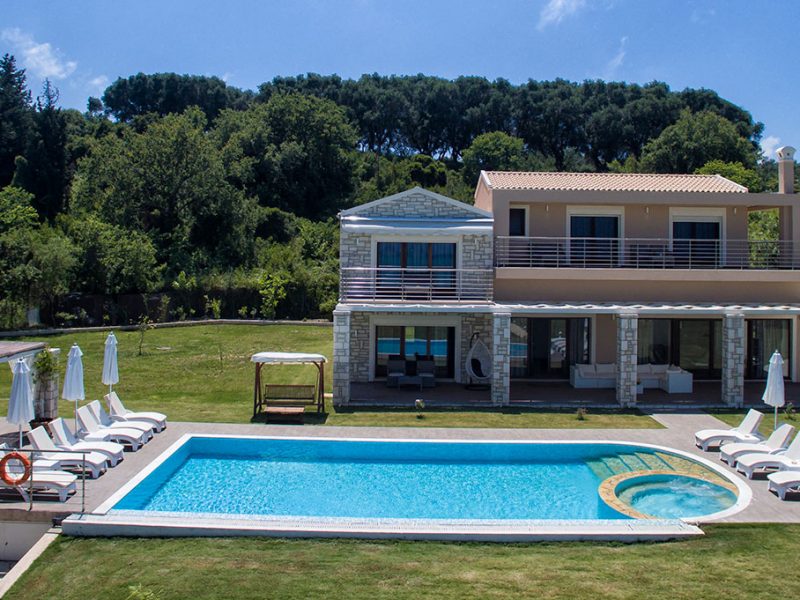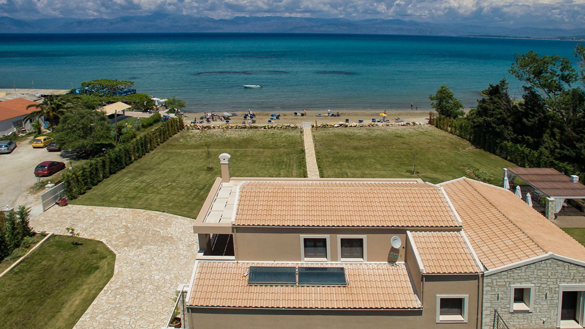 Luxury beach front villa Emily, just one step away from the sea! A 200m2 villa, located in the north part of the island, in the beautiful area of Roda, 35km away from the town of Corfu. The construction and decoration of this villa was completed in June 2015.