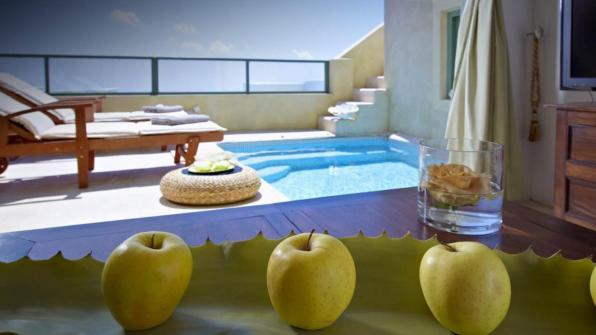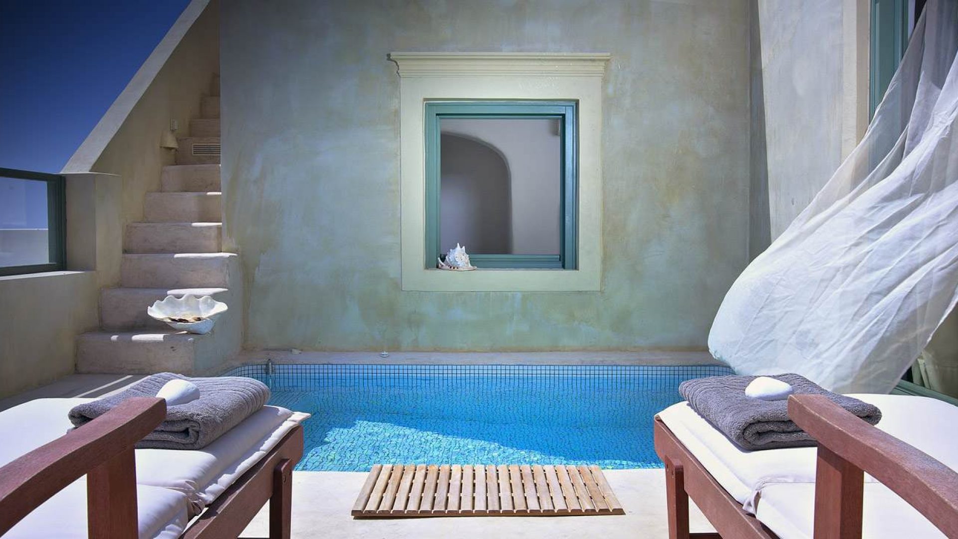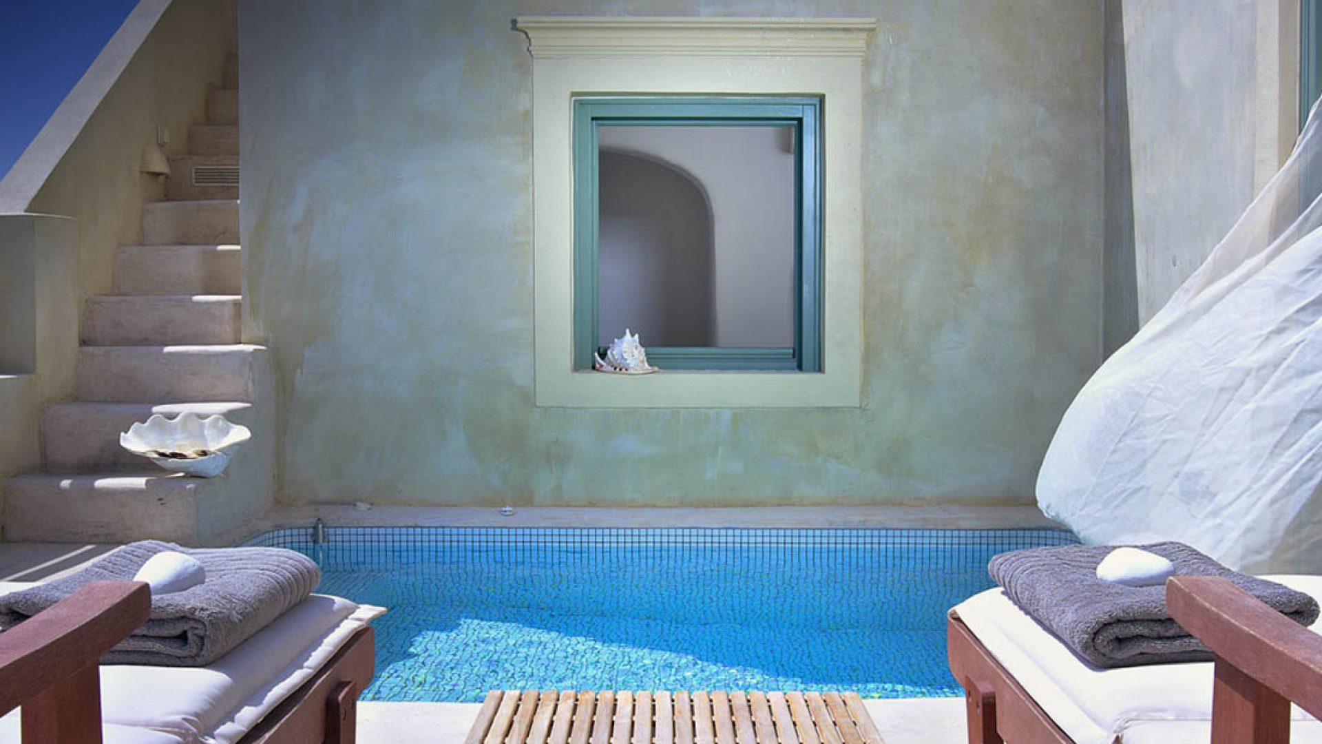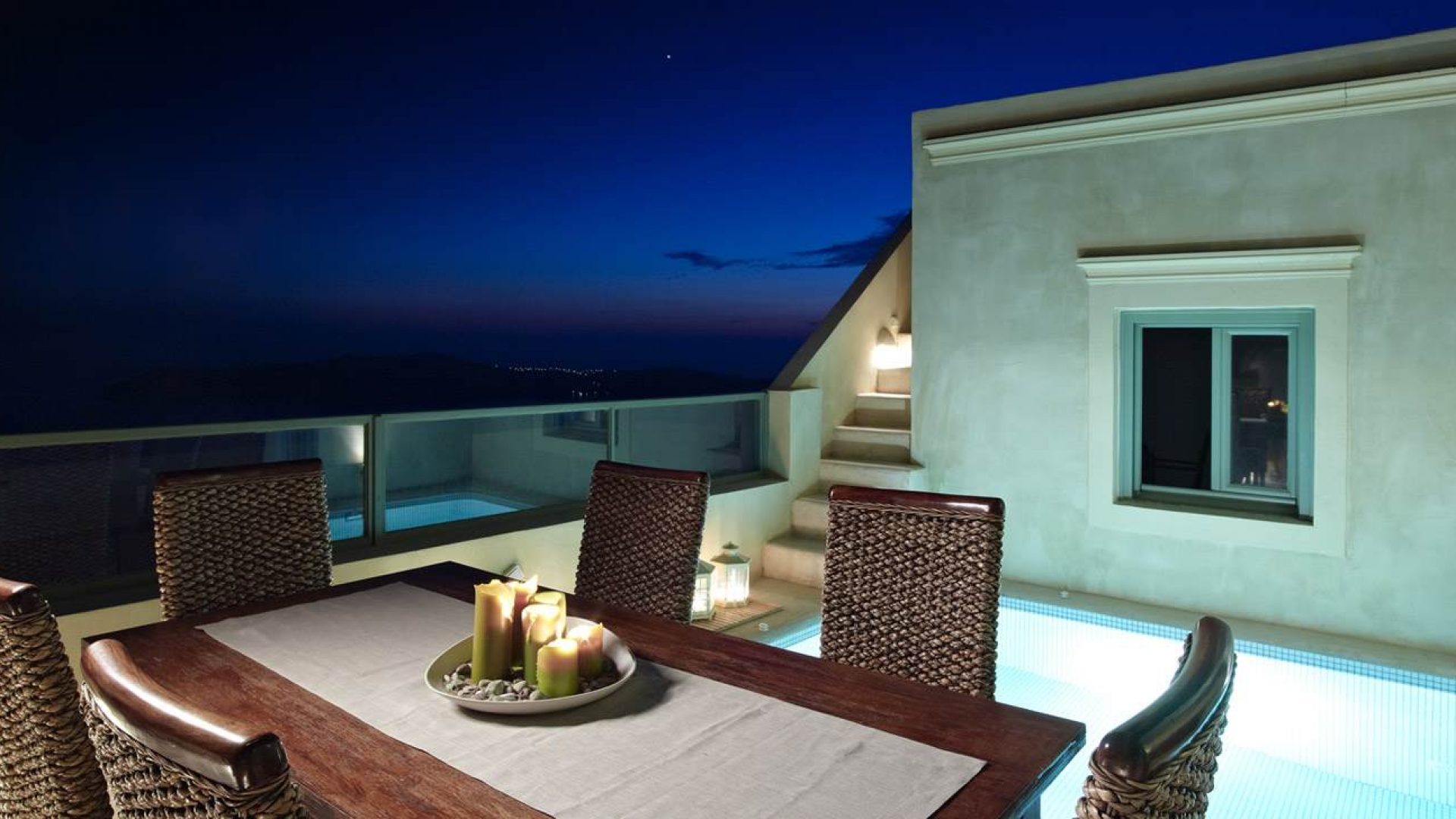 To be able to wake up in the morning and enjoy your breakfast on your private terrace next to your private pool, gazing at the deep blue water of the Aegean, the mysterious Santorini volcano and the secluded island of Thirasia and in the evenings, being able to enjoy the most unforgettable and amazing Santorini sunsets, a dream come true.