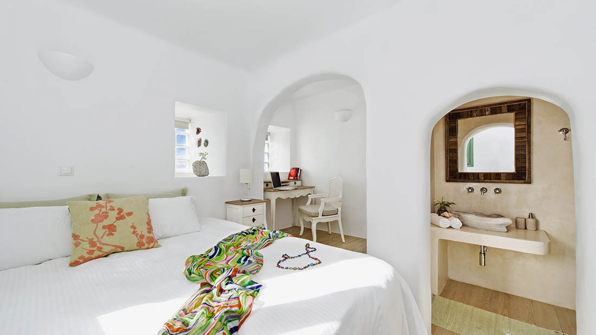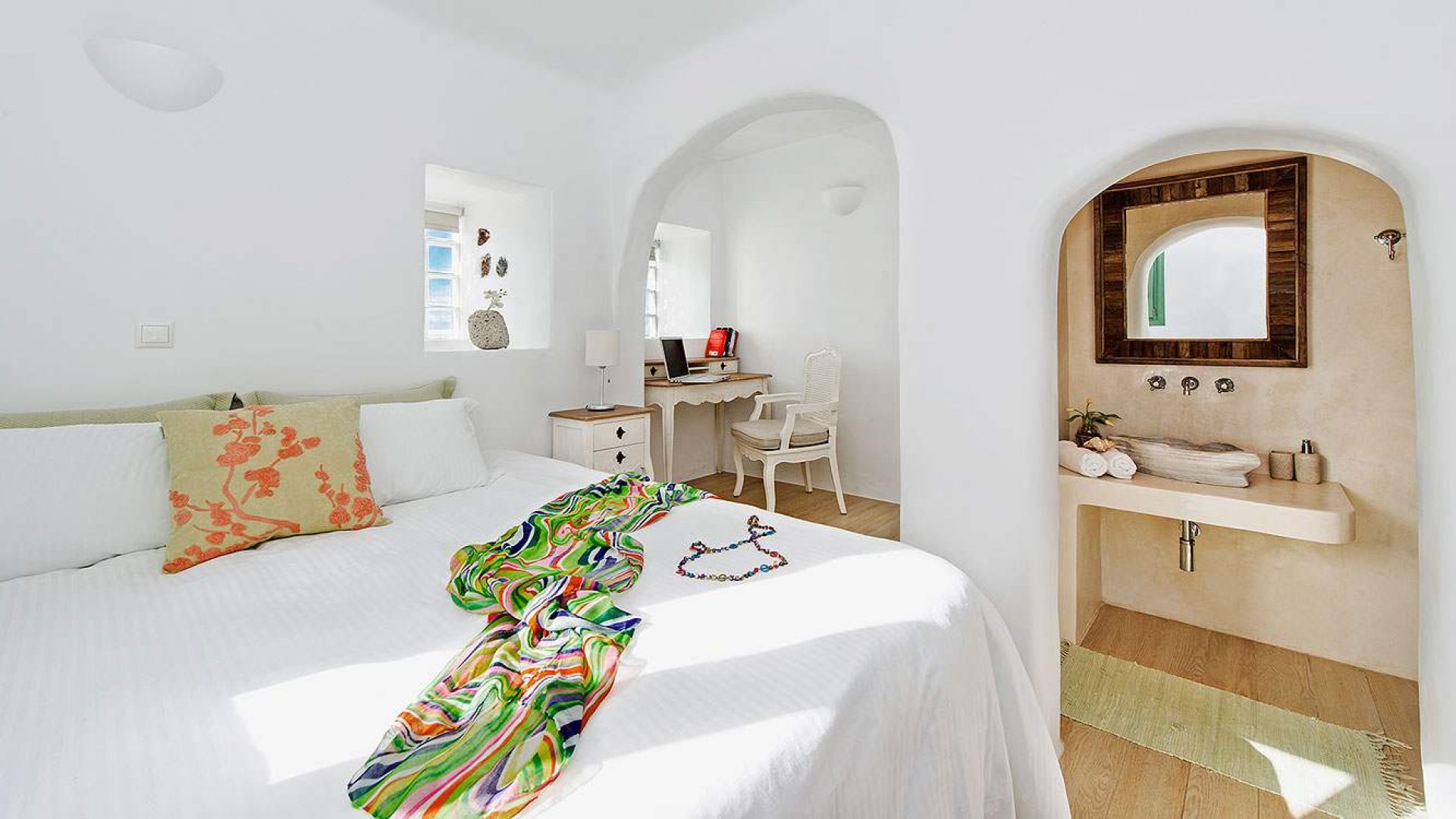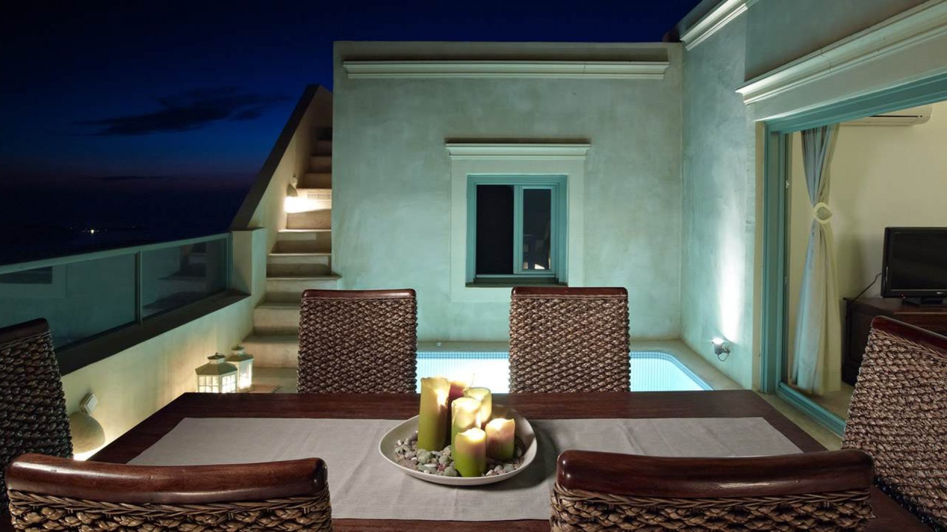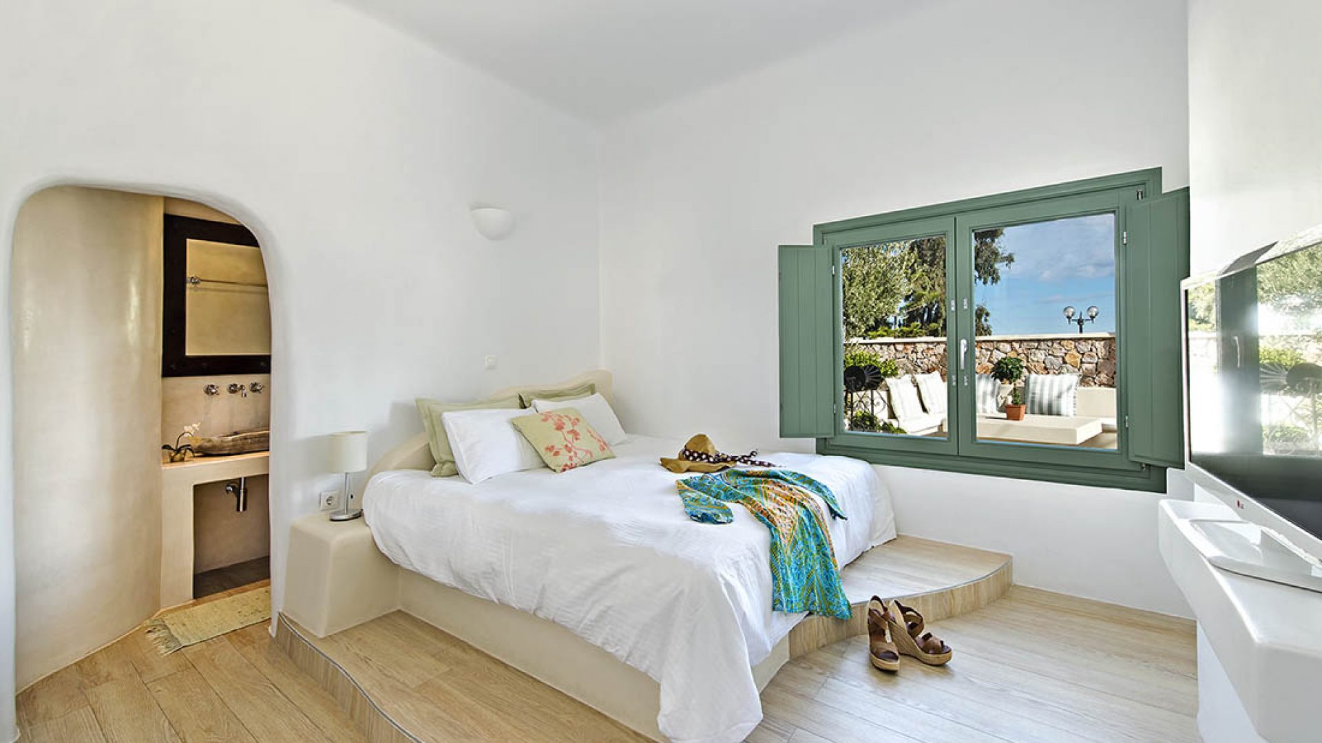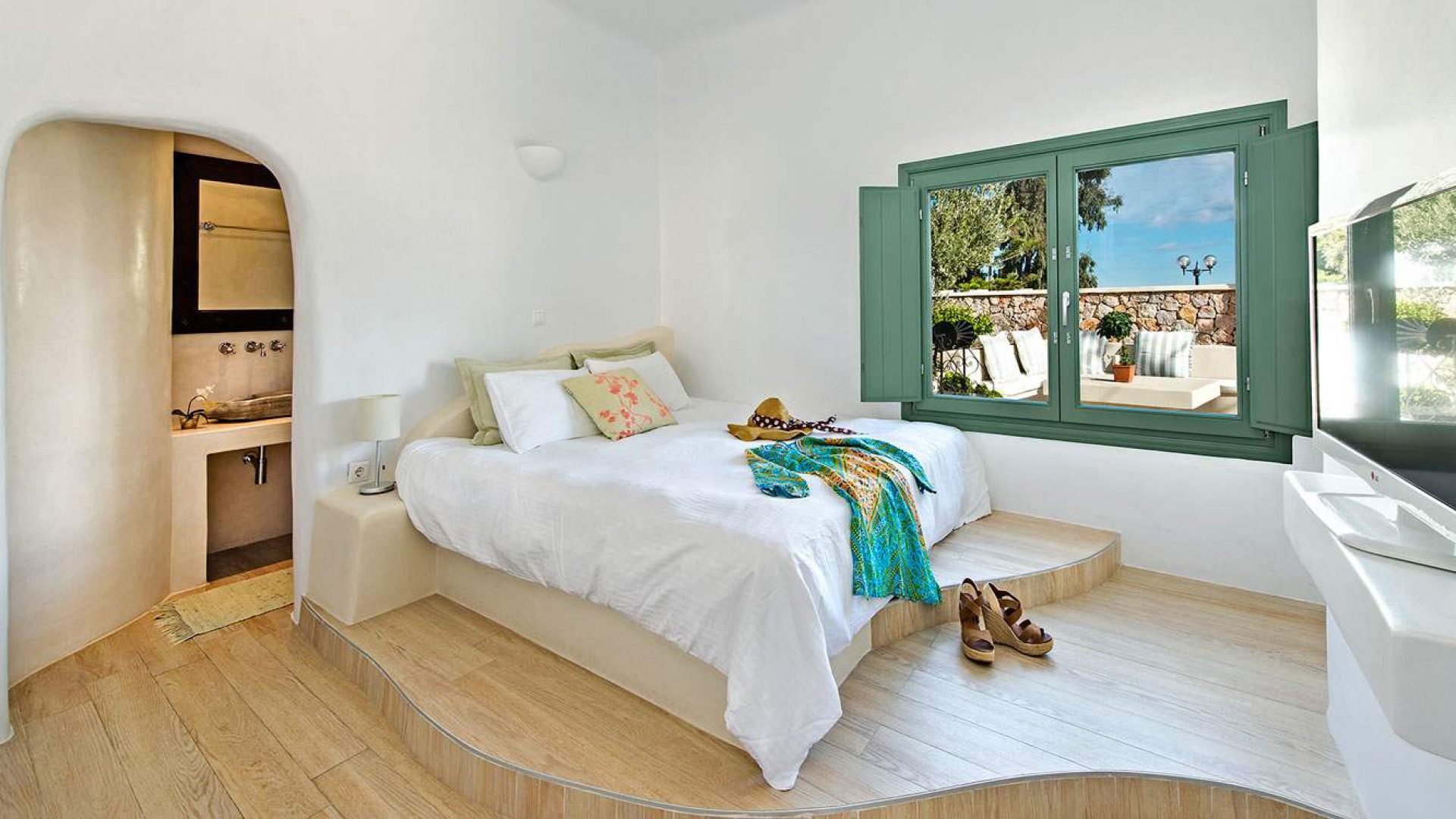 To be able to wake up in the morning and enjoy your breakfast on your private terrace next to your private pool, gazing at the deep blue water of the Aegean, the mysterious Santorini volcano and the secluded island of Thirasia and in the evenings, being able to enjoy the most unforgettable and amazing Santorini sunsets, a dream come true.