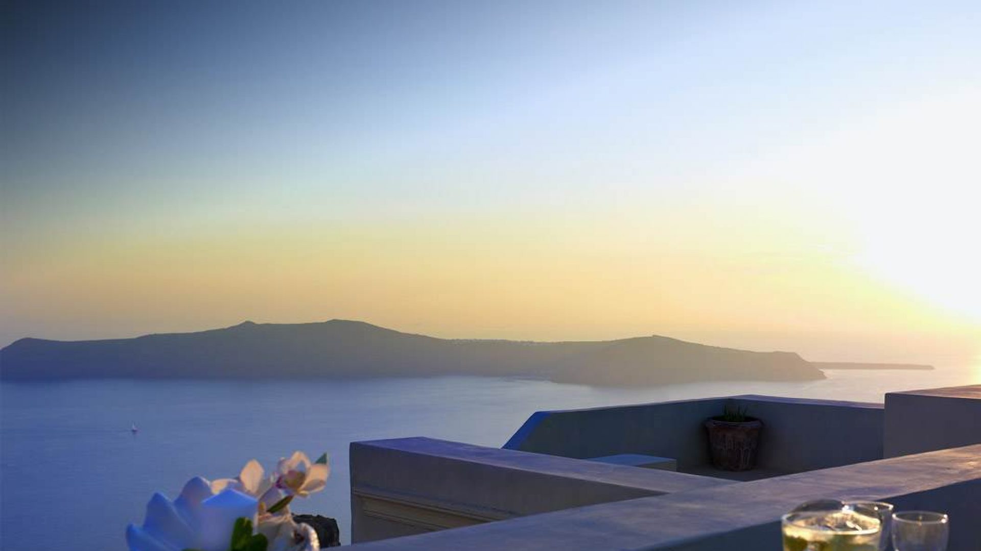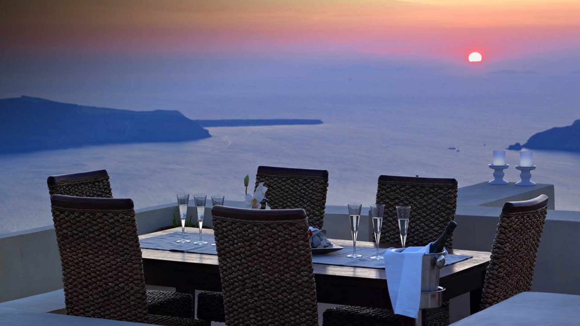 An amazing view of the Aegean sea, the volcano & the Santorini sunsets.