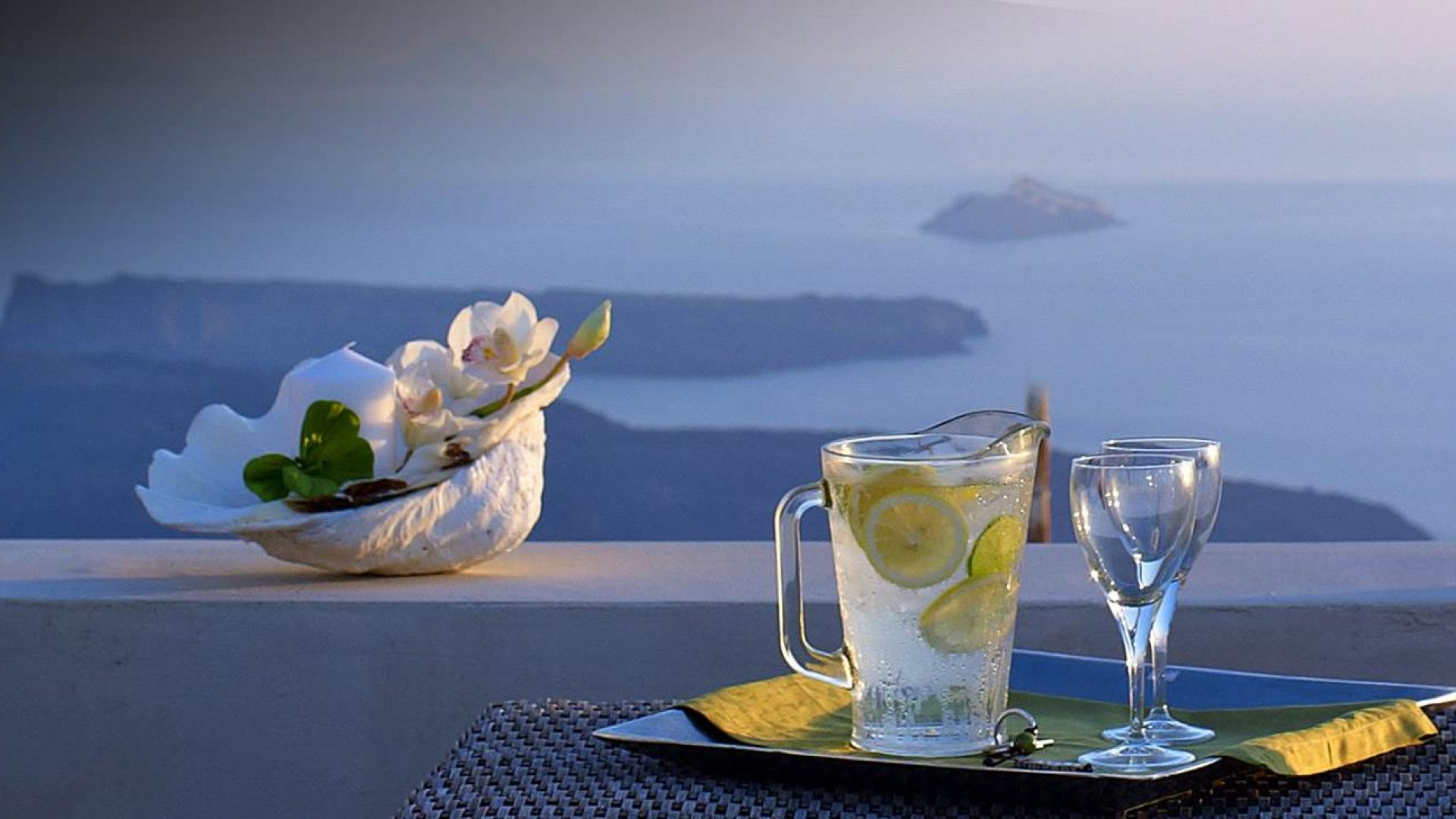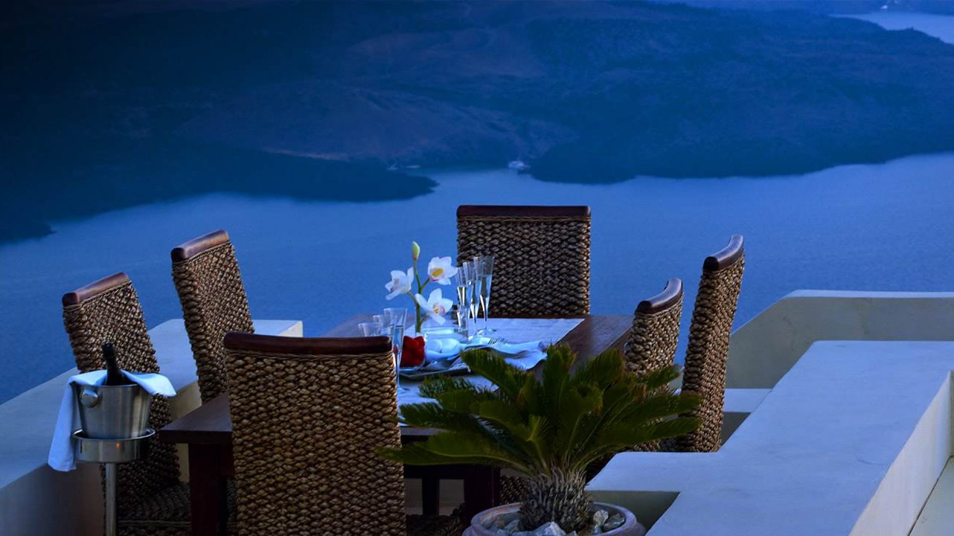 The amazing roof garden with a panoramic view of Santorini island is the perfect place to enjoy the magnificent sceneries the island has to offer.