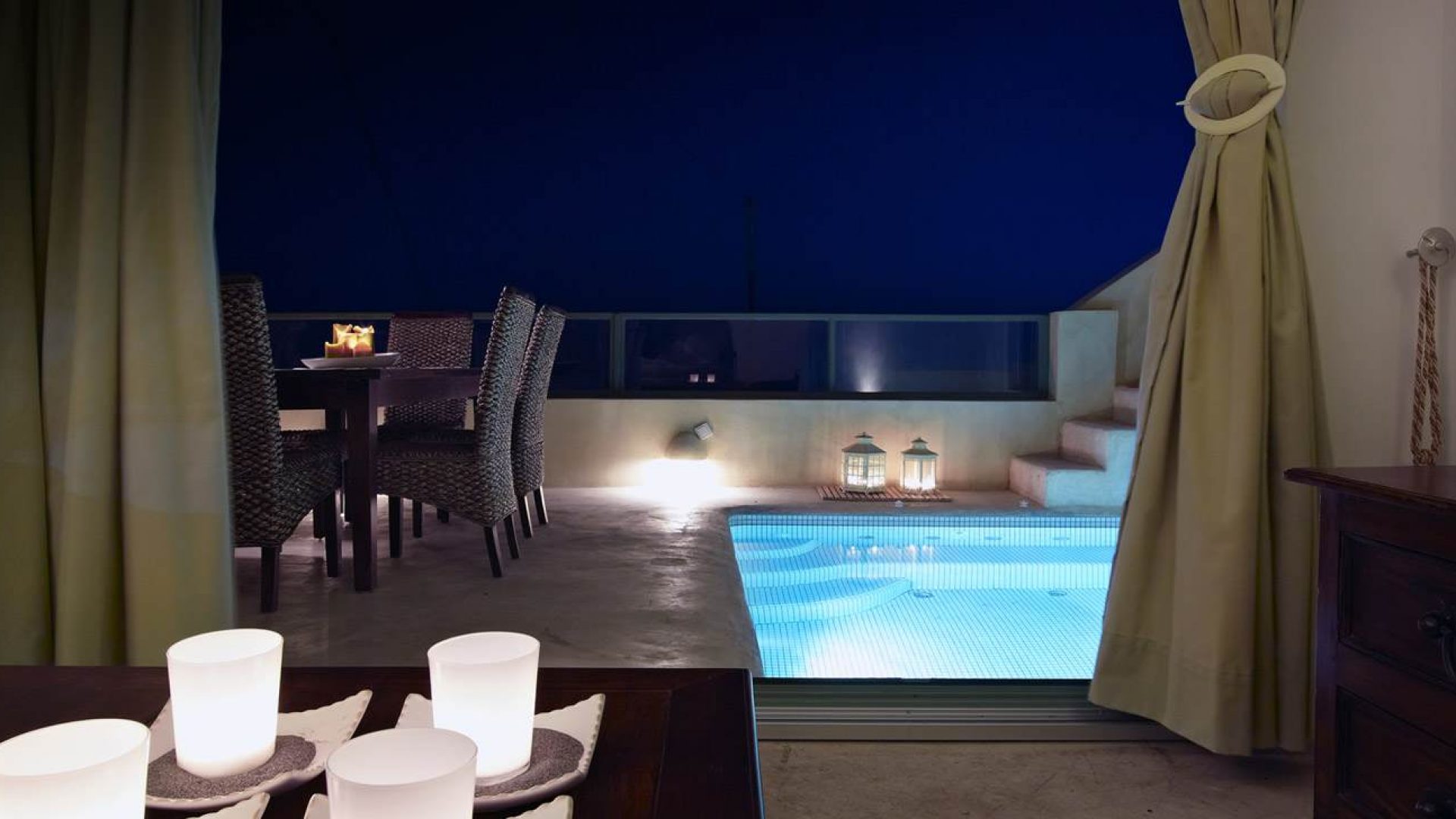 • Dining area next to the pool.
