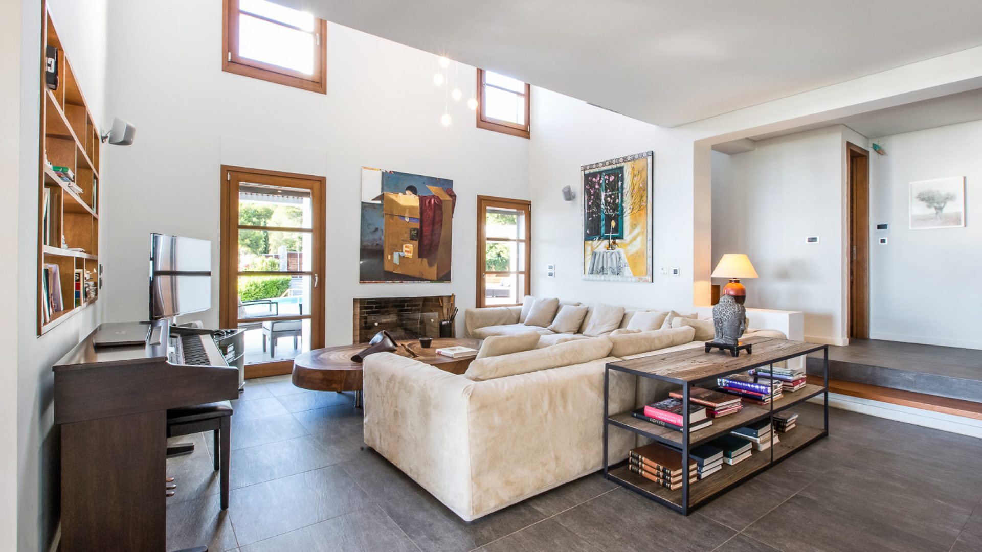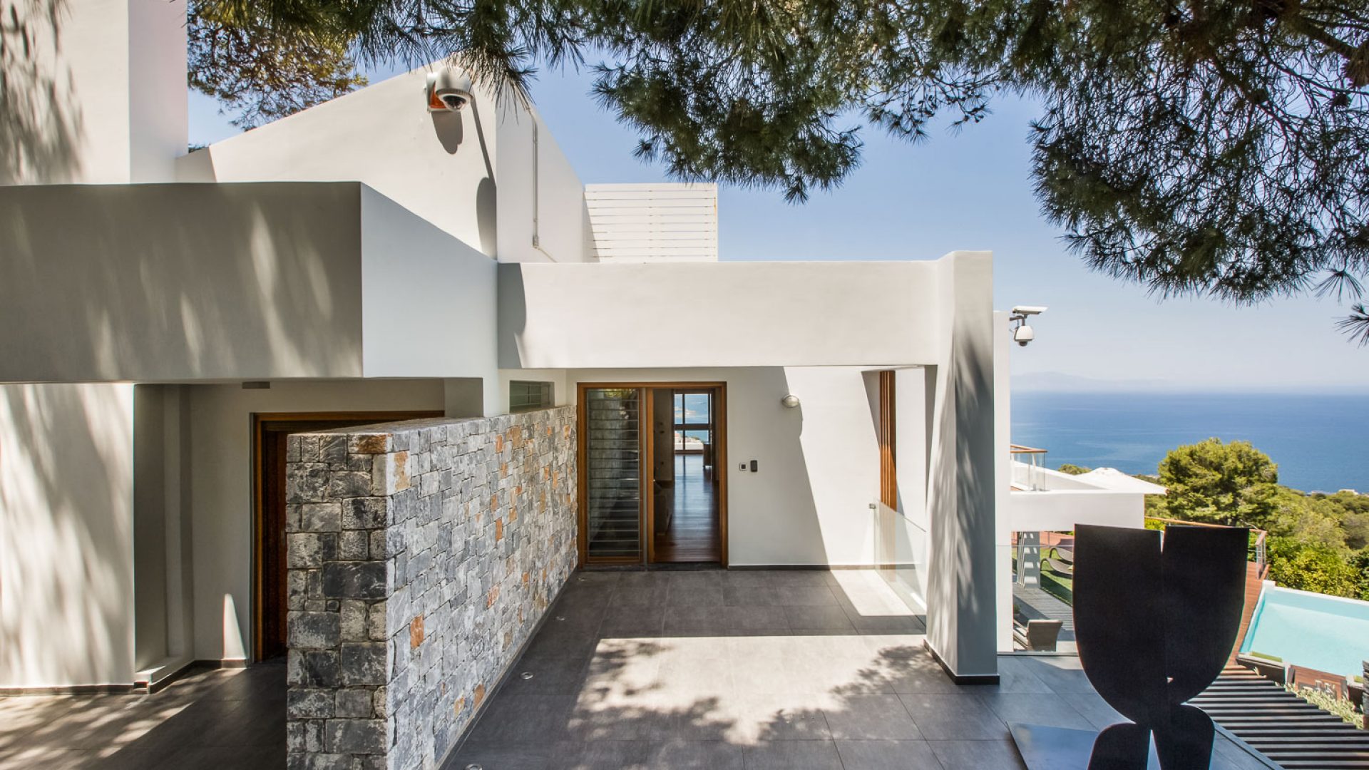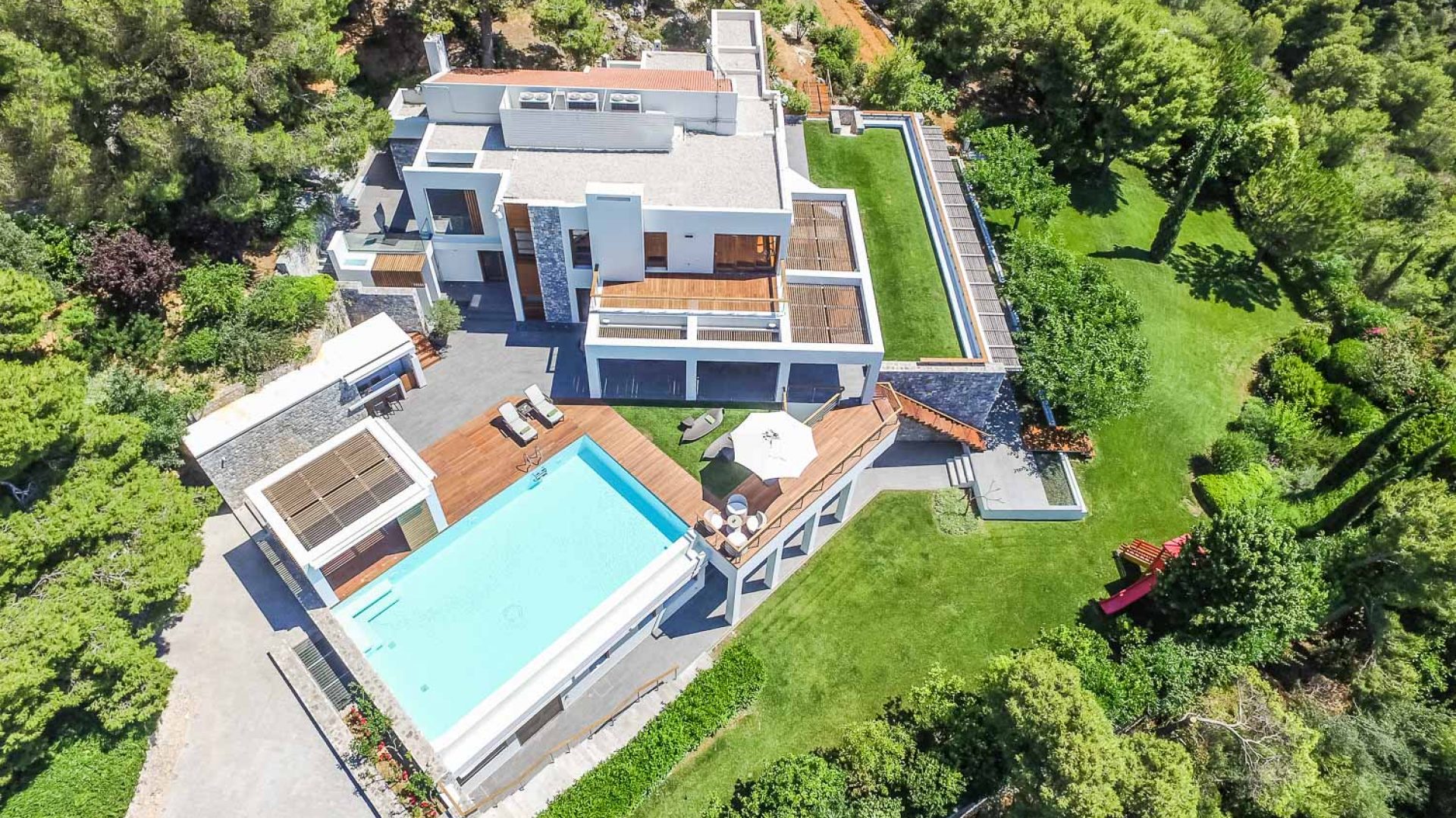 The modern architecture is humancentric and exudes unpretentious elegance, comfort and subtle luxury. The villa is built on 3 separate levels. It warrants discretion in all 5 bedrooms that spread across the 3 levels and inspires conviviality in the multiple common areas, decorated with original Art and furnished with pieces from owners’ private collection.