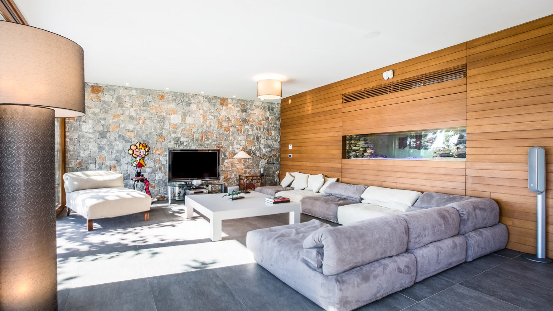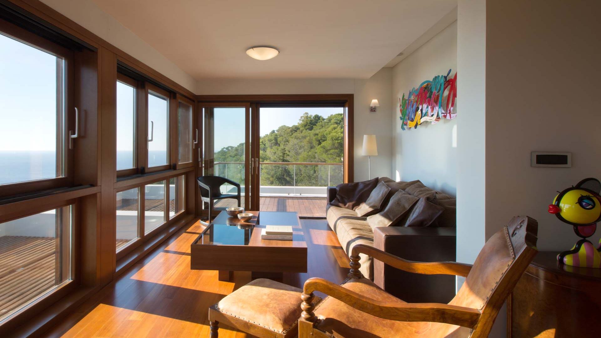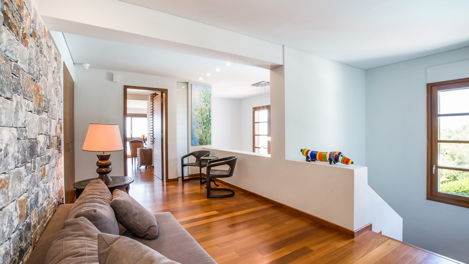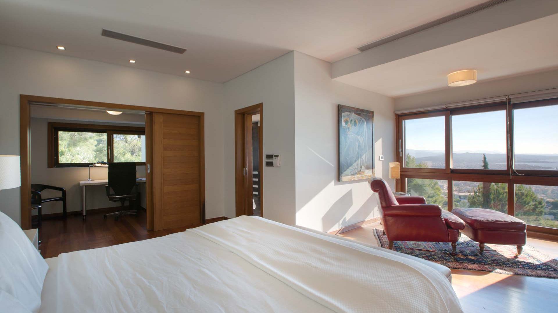 The modern architecture is humancentric and exudes unpretentious elegance, comfort and subtle luxury. The villa is built on 3 separate levels. It warrants discretion in all 5 bedrooms that spread across the 3 levels and inspires conviviality in the multiple common areas, decorated with original Art and furnished with pieces from owners’ private collection.