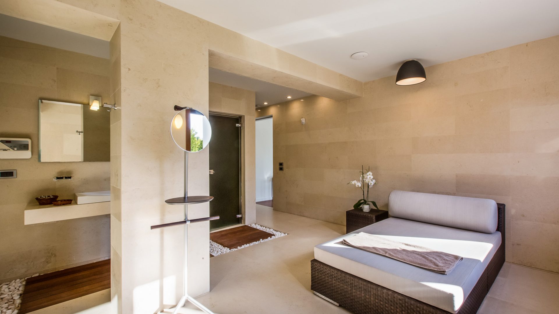 Next to the Gym, in a separate and quiet part of the villa, you will discover our favorite part of the property: the spa. Built in original marble, the five-star Spa, features: