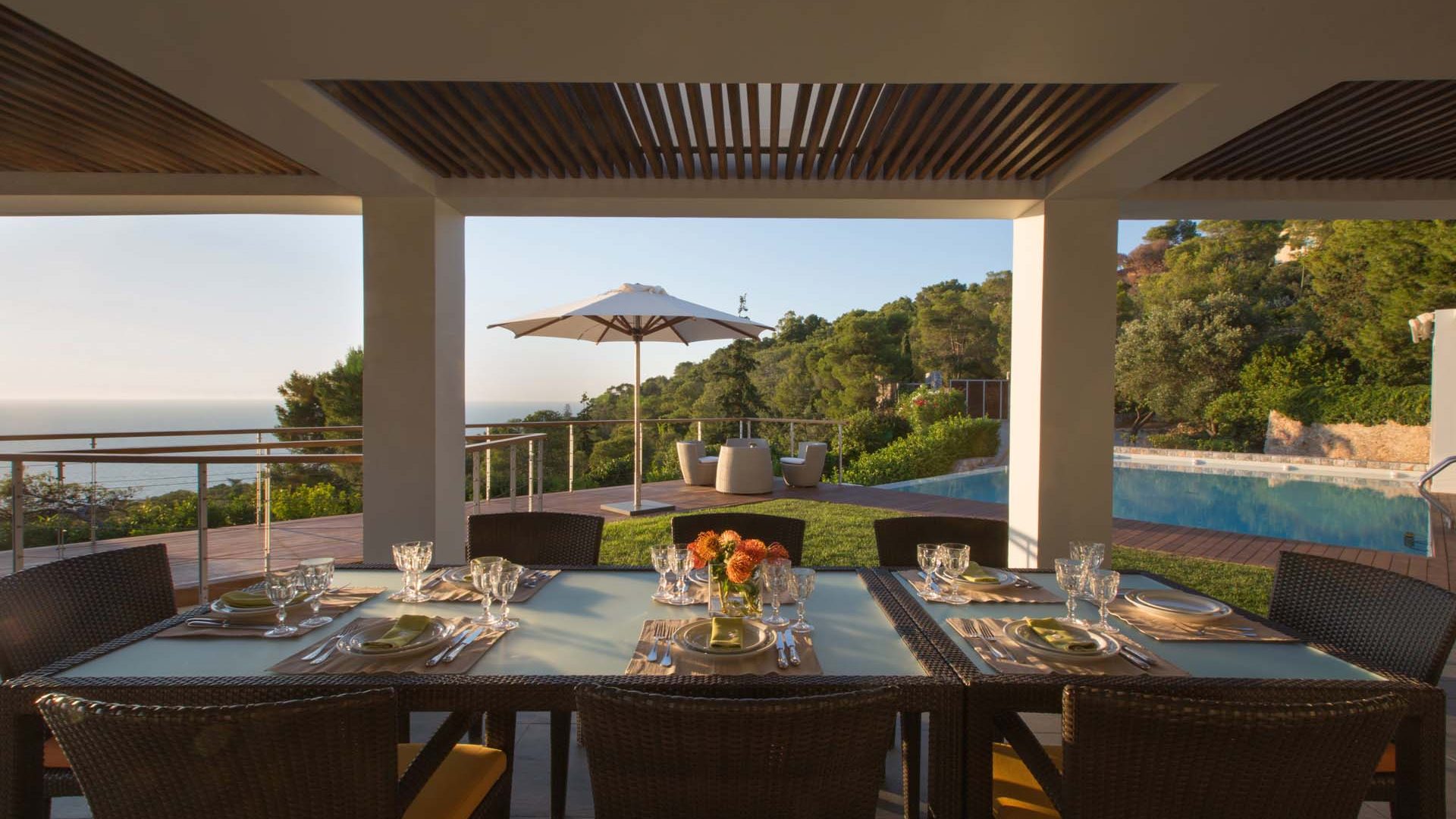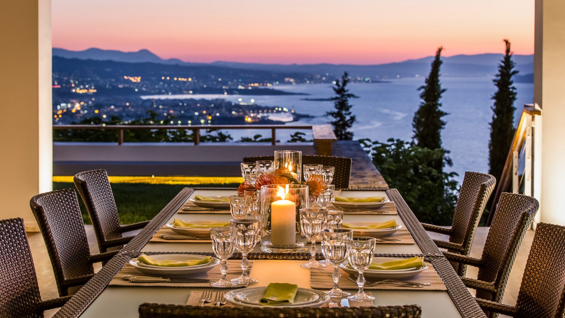 Villa Gaia is ideal as a luxury destination wedding venue, since it is the only property in the region that combines unique special features and facilities with this unbeaten view. The covered verandas, bird’s eye view pavilions and multiple different set ups in all levels can inspire exclusive wedding stories and or other type of private events, where elegance and exclusivity is required by discerning customers.