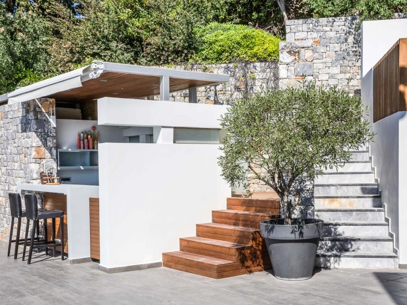 The professional covered outdoor kitchen is another special feature that makes it ideal for private events, but also for individual food lovers! It includes a traditional wood-oven, suited for traditional Cretan cooked meals, a built charcoal BBQ, a modern gas BBQ and gas stove and storage room with extra fridge and freezer.