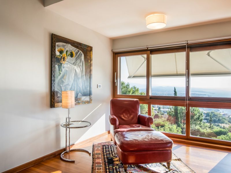 Presidential Suite takes up the majority of the upper floor and enjoys bird’s eye views of the Aegean Sea, the old harbor, Chania town and the «White mountains» through its ceiling-high glass windows.