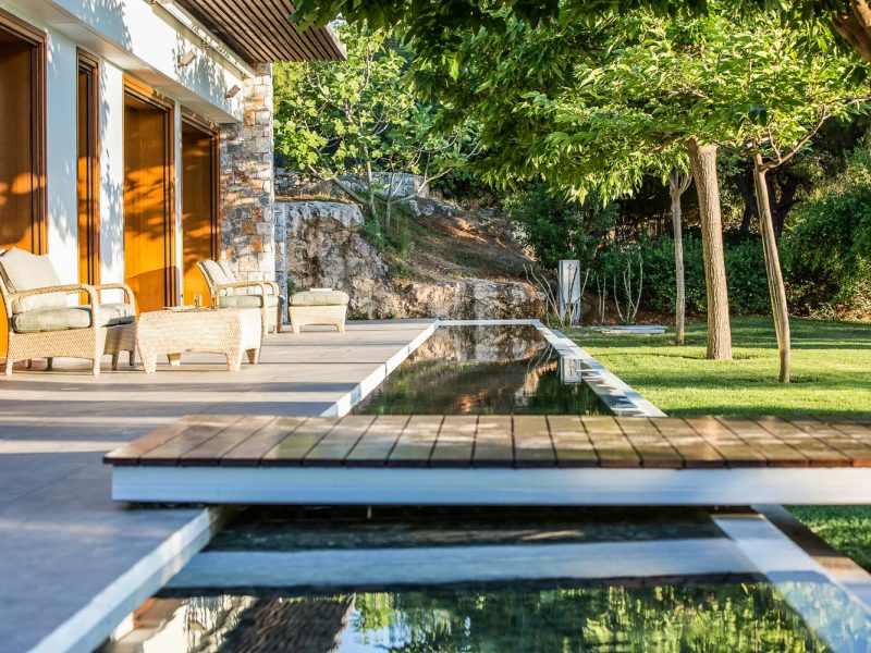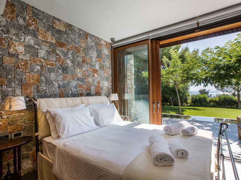 Natural elements such as wood, natural stone and water, enhance perfect harmony with surroundings: the pine forest’s green and the Aegean Sea blue! Unique features include an authentic ancient construction from Ottoman empire and a natural cave that add to its distinct charm.