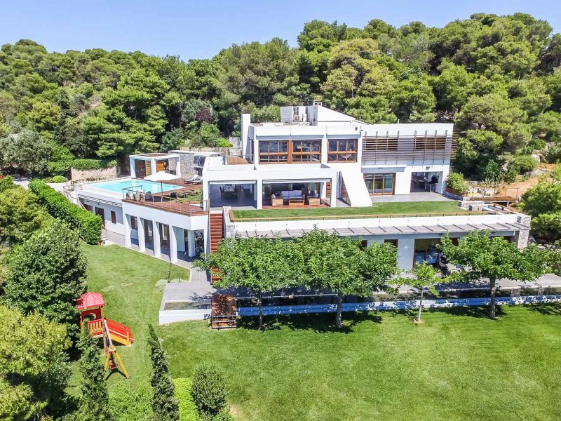 The modern architecture is humancentric and exudes unpretentious elegance, comfort and subtle luxury. The villa is built on 3 separate levels. It warrants discretion in all 5 bedrooms that spread across the 3 levels and inspires conviviality in the multiple common areas, decorated with original Art and furnished with pieces from owners’ private collection.