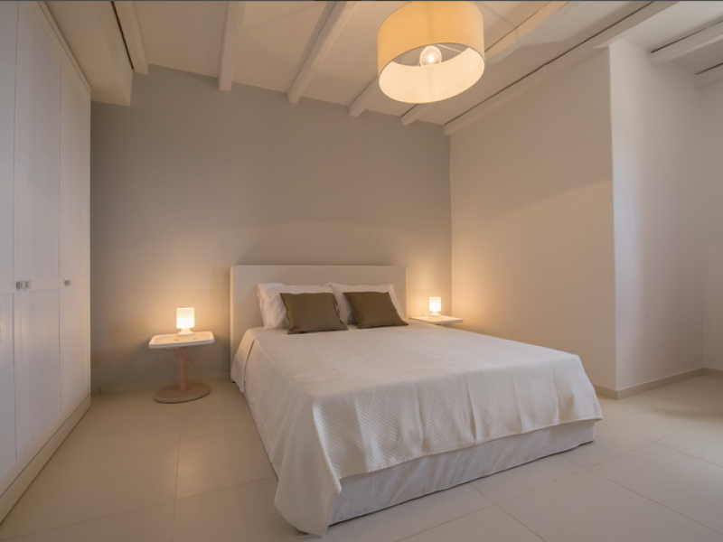On the Ground Floor of the villa we find the fully equipped kitchen, a large dining table that seats 15 people and the living room with the unobstructed sea views to the Aegean Sea. The living room has two large sofas, a library and a TV. The Ground floor also features two bedrooms and one bathroom, plus storage and laundry rooms next to the kitchen. From the ground floor you have direct access to the fully furnished veranda where there are a table for 8, a sofa, 2 armchairs and a coffee table