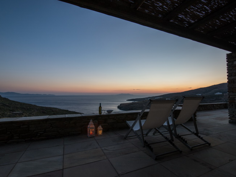 Veranda: Two fully furnished verandas with amazing views to the Aegean Sea on the ground floor with table for 8, a sofa, two armchairs and a coffee table, and one in the first floor with sun loungers and armchairs.