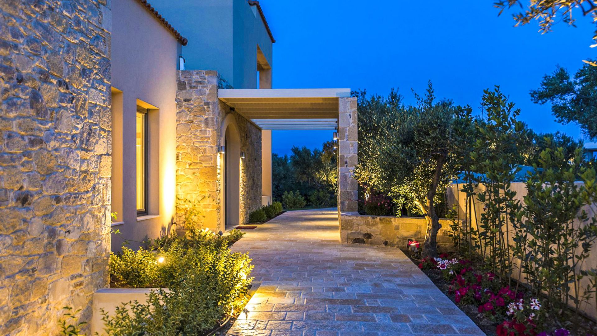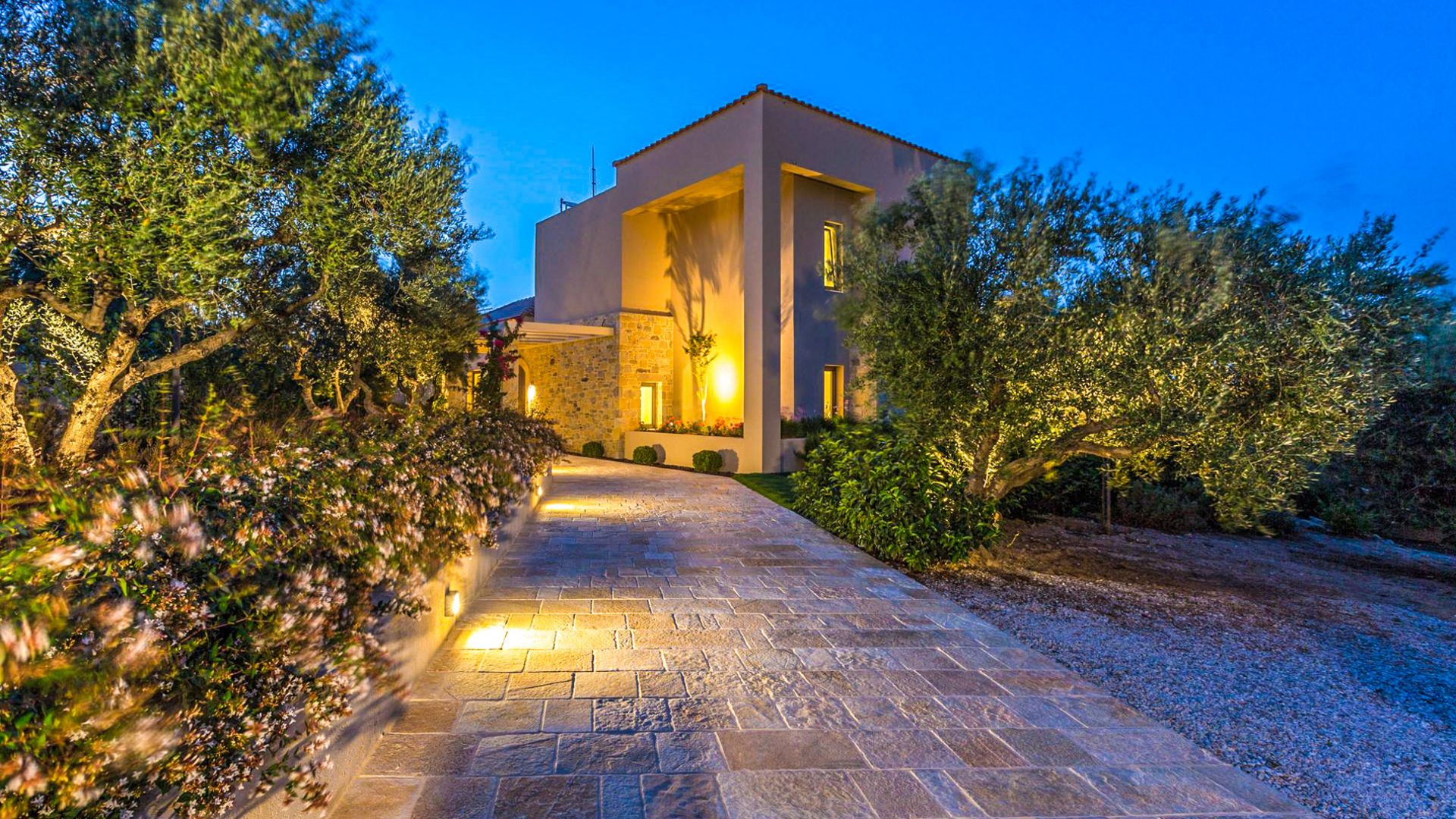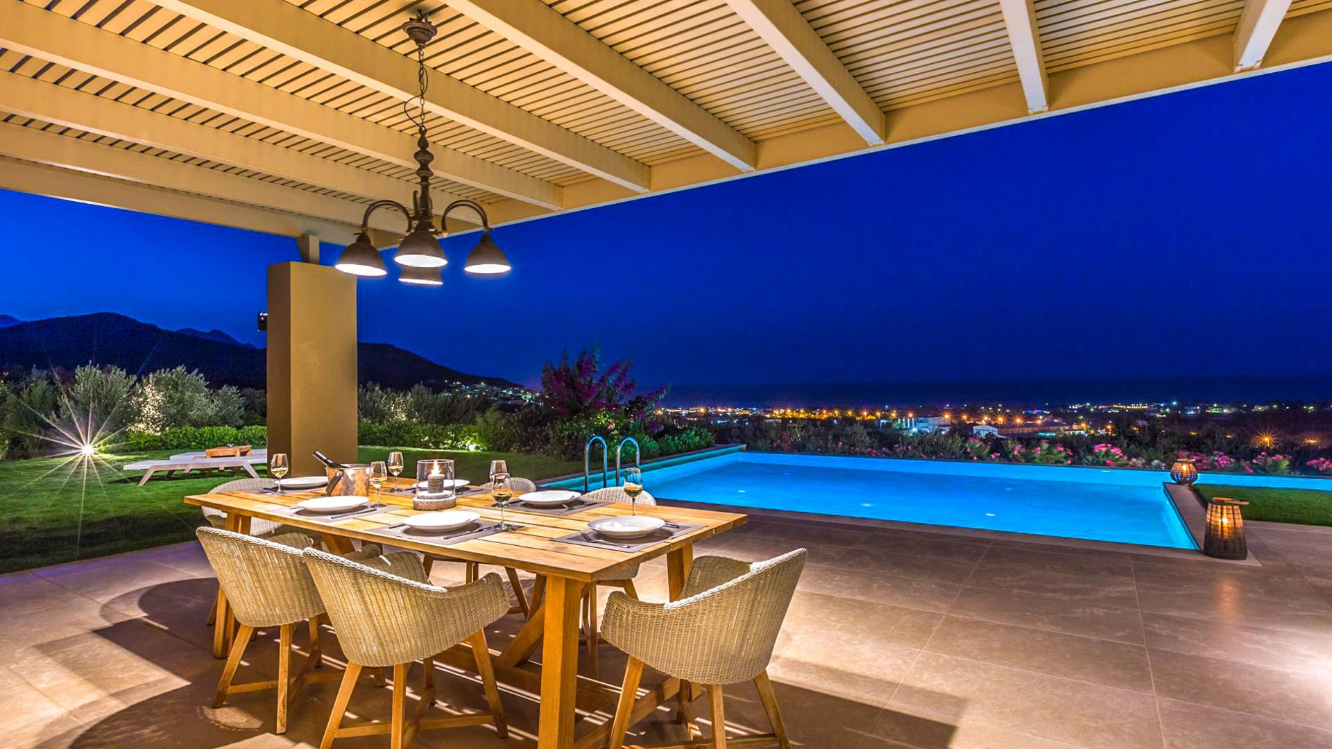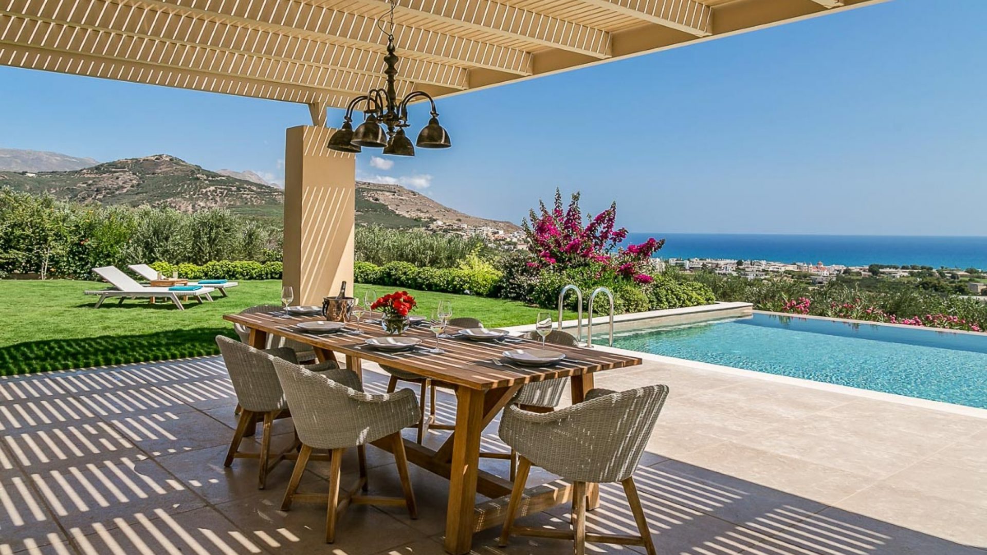 Well-situated within its 3-hectare property, this Cretan holiday villa is impressive in its contemporary architectural lines that blend so seamlessly with its surroundings as to almost become one with the land. The swimming pool’s pebble-tiled depths boast a lovely sandy shade that captures the sunlight and creates playful iridescent reflections through the crystal-clear water.