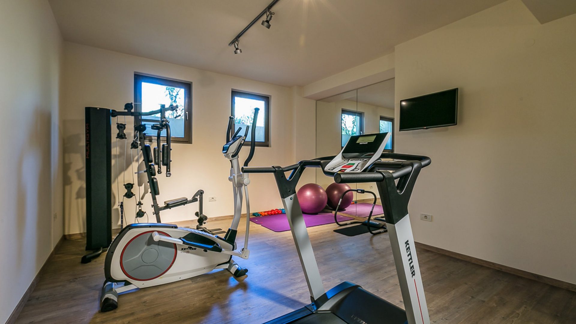 The villa’s gym is also located in the lower floor: a well-equipped private workout space with large windows and abundant natural lighting for inspired fitness routines.