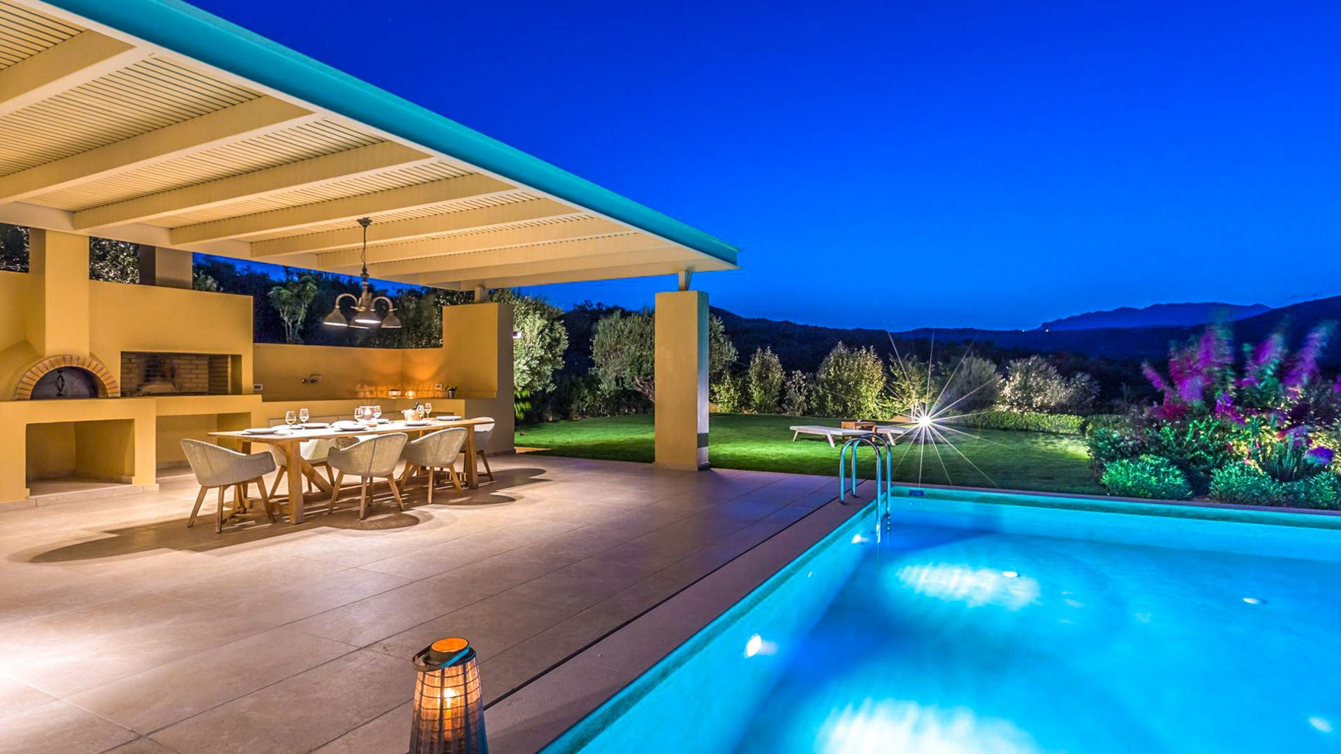 Exterior facilities/amenities: Covered patios, 1 outdoor dining area, sitting area with built-in sofas, outdoor kitchen with a wood-burning oven and covered BBQ area, 60 m² infinity pool for adults, 12 m² children’s pool (0.50 cm deep), outdoor shower.