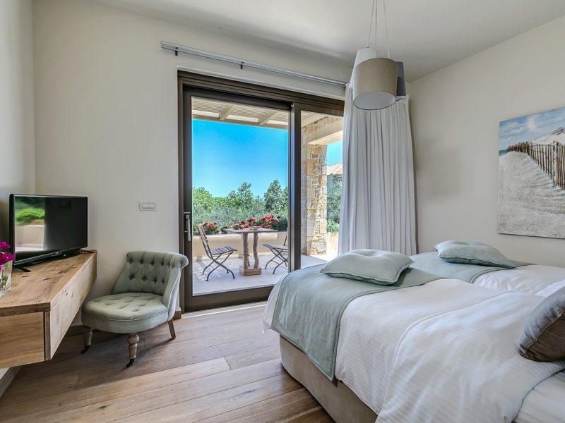 The ground floor hosts two of the four bedrooms, with beds and mattresses from the award-winning company COCO-MAT collection of advanced technology, ecological bedding. Their signature “4-layer beds”, the pillows that can be adjusted to suit individual sleeping needs, the cotton/satin blend and linen bedding, soft towels, fluffy bathrobes and fragrant natural personal hygiene products all grant a luxurious feeling of comfort and well-being.