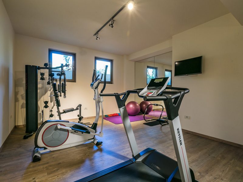 The villa’s gym is also located in the lower floor: a well-equipped private workout space with large windows and abundant natural lighting for inspired fitness routines.