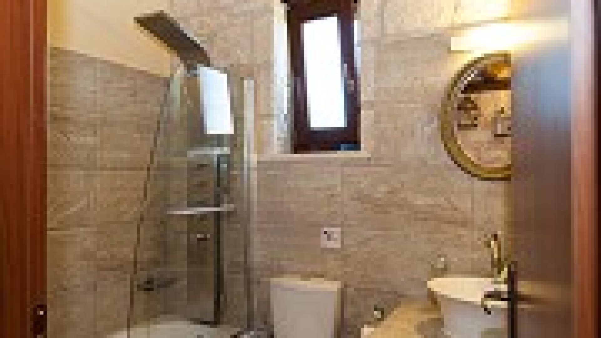 It is luxury construction made with care to the details and is suiting very nice with the local natural environment. It has a large bathroom with bathtub with Hydromassage column.