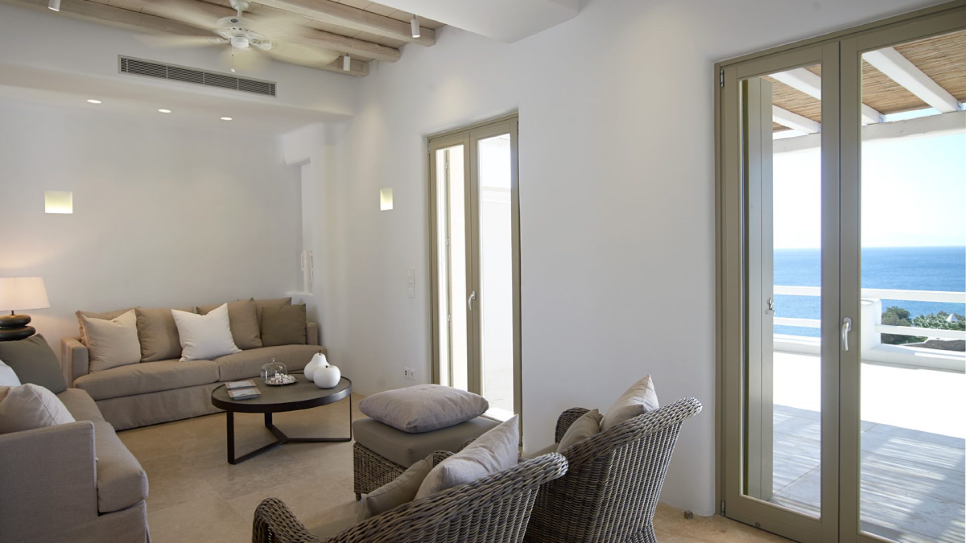 The infinity pool with magnificent sea views or the mini pool, are ideal relaxation spots for the grownups or playgrounds for the little ones. The spacious outdoor facilities, including the barbeques, can form a unified surrounding ideal for partying, weddings or other similar activities demanding large gatherings.