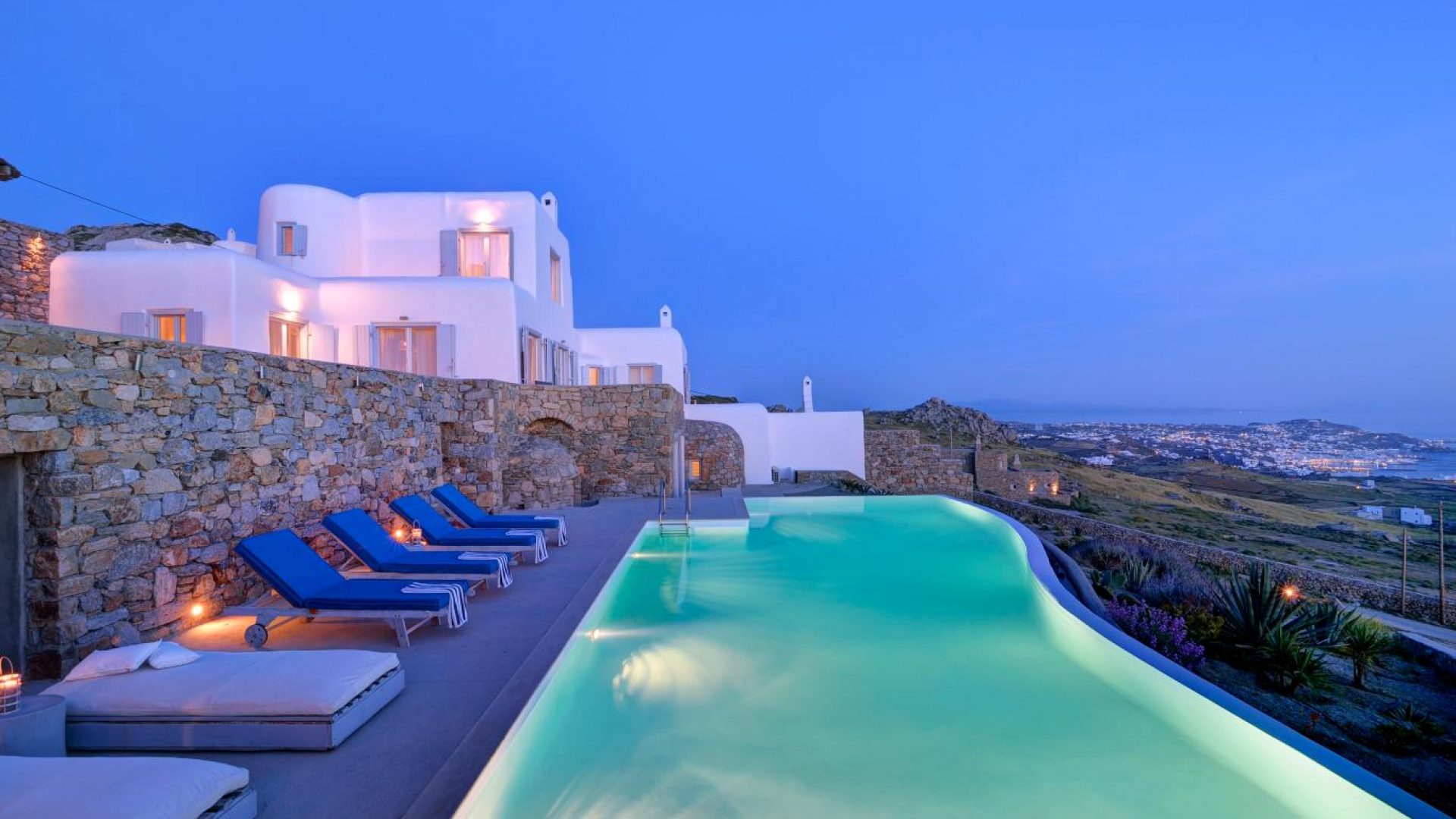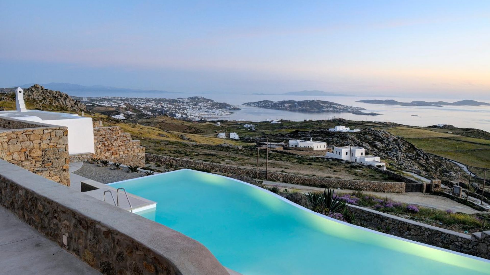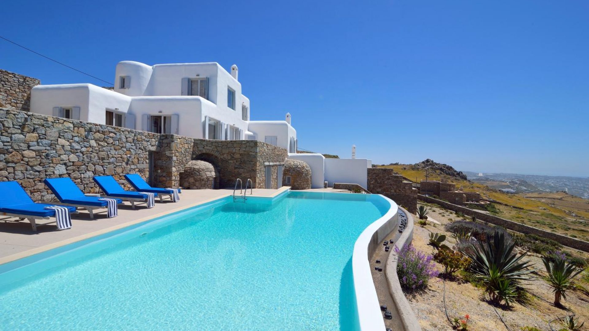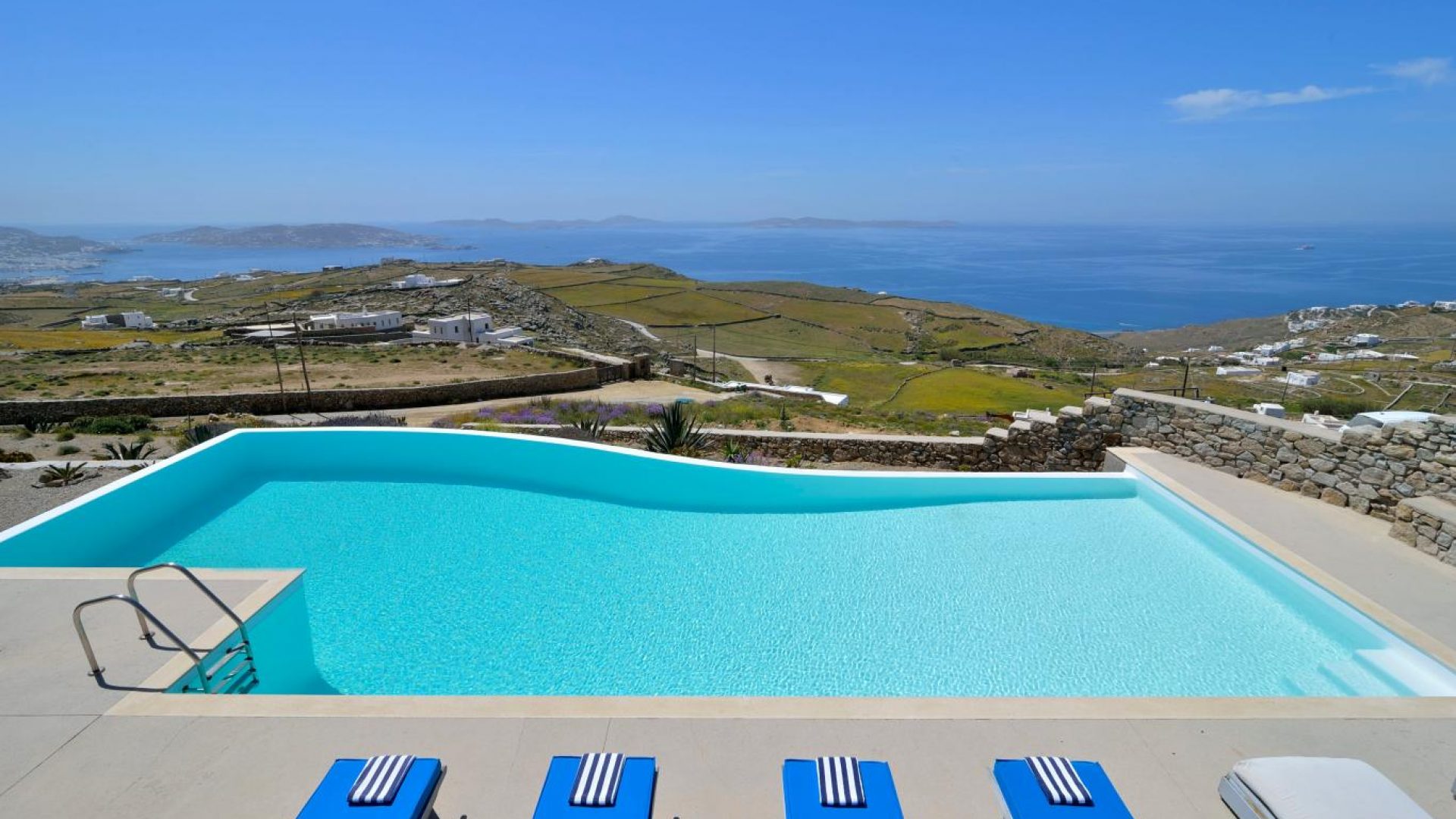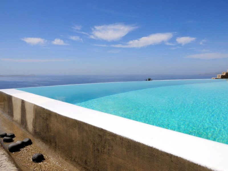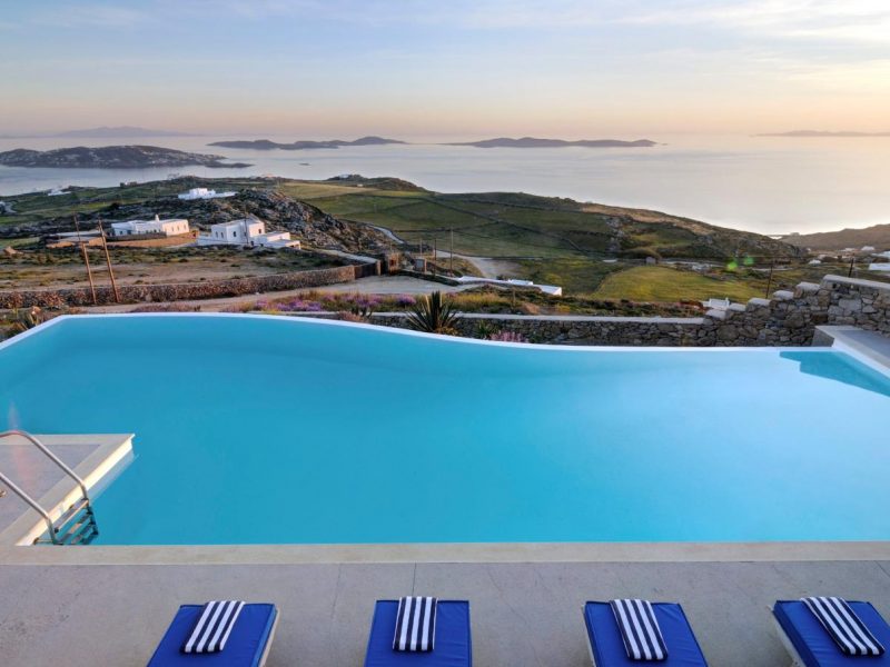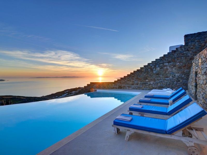 High atop a cliff, Villa Ocean Dream, this 7 bedroom villa, offers the perfect setting for indulging holidays in Mykonos island. It is located in Fanari area.