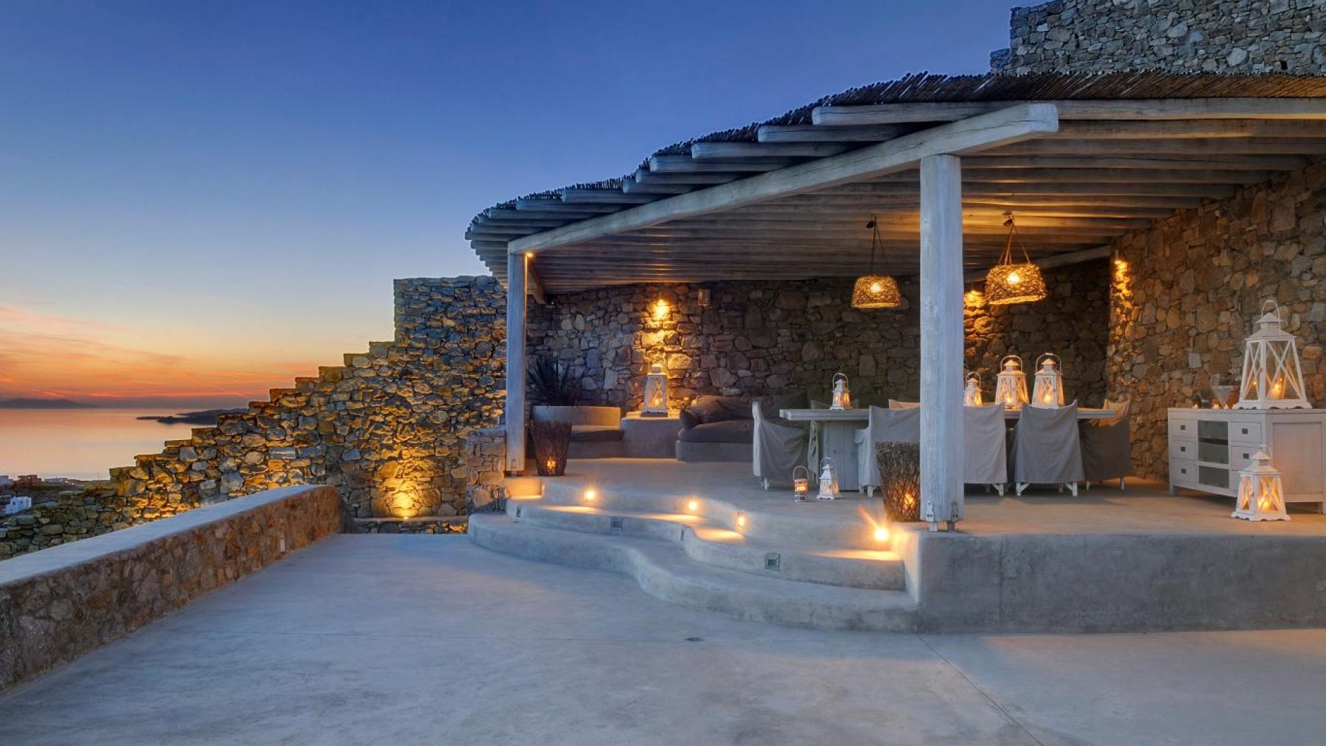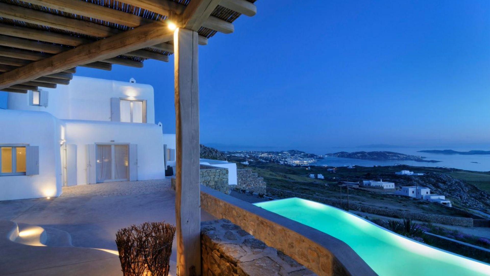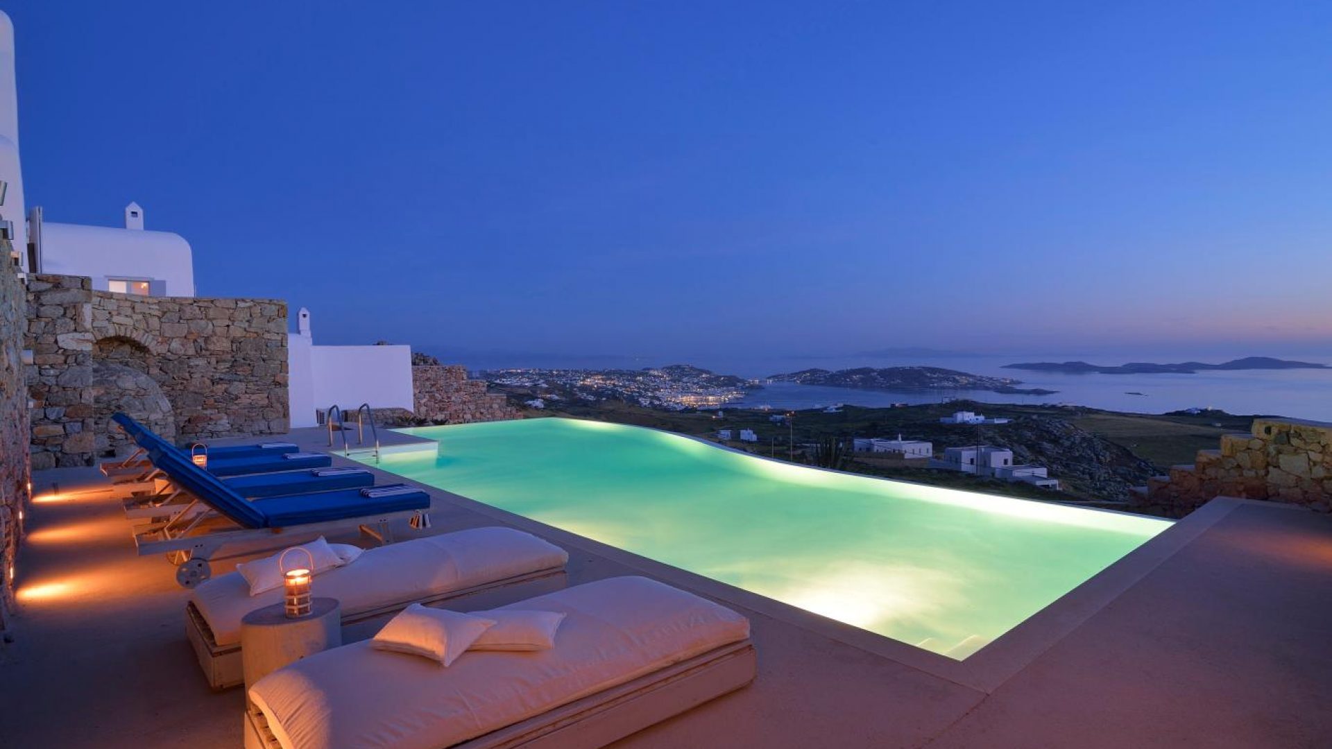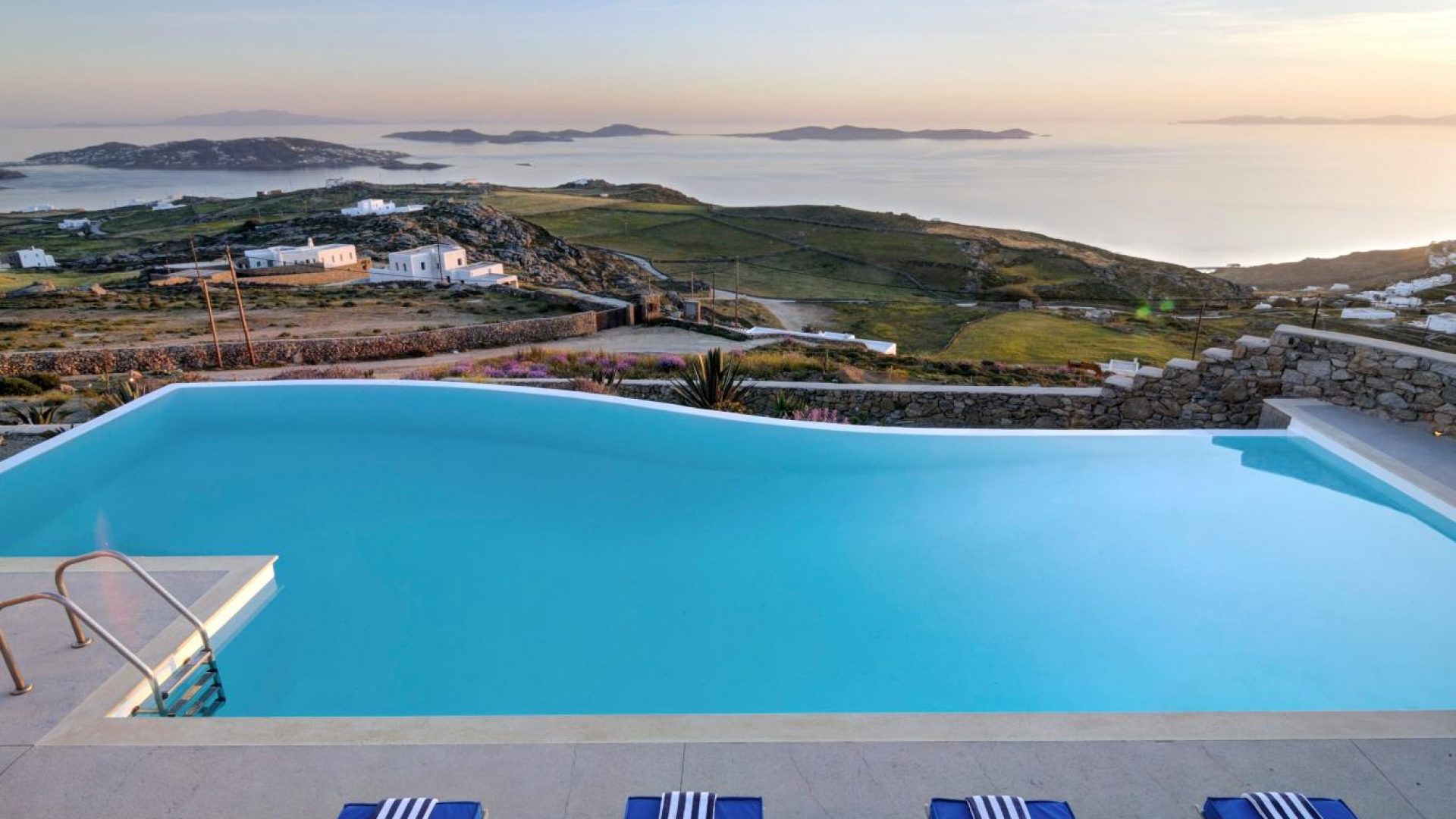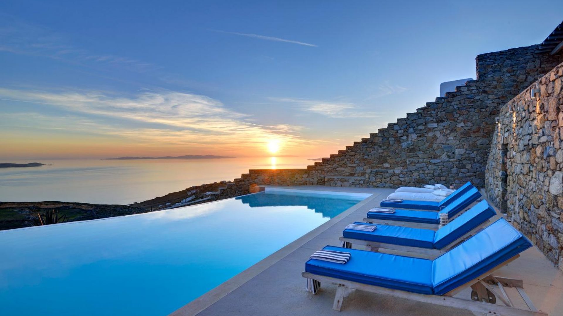 High atop a cliff, Villa Ocean Dream, this 7 bedroom villa, offers the perfect setting for indulging holidays in Mykonos island. It is located in Fanari area.