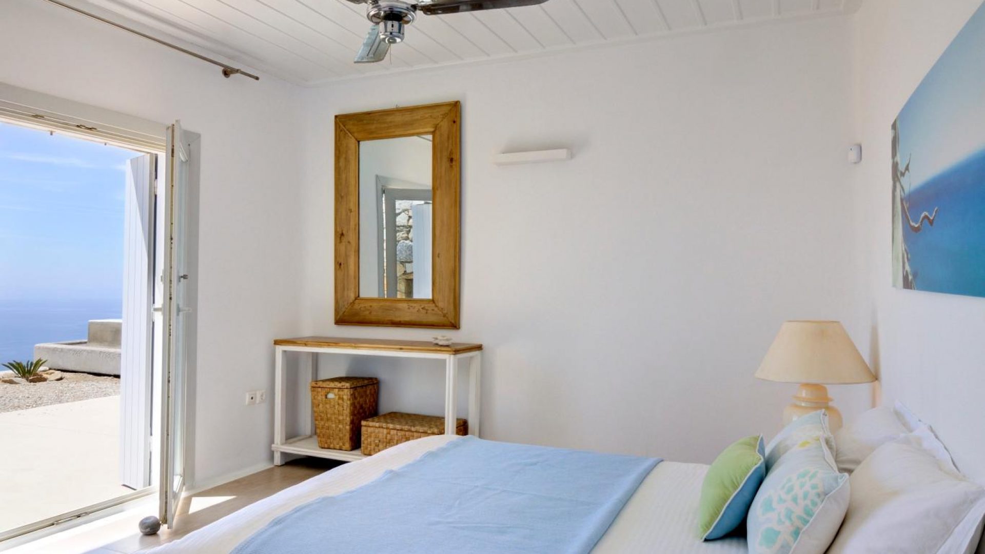 Located in the northwestern side of Mykonos island, in the area of Fanari, Villa Ocean Dream is at a short distance to the sandy, family-friendly Agios Stefanos beach. Mykonos Town is approximately 5 km away, while Mykonos airport is 8 km away & Mykonos port about 3km.