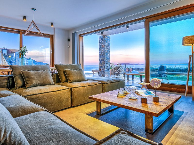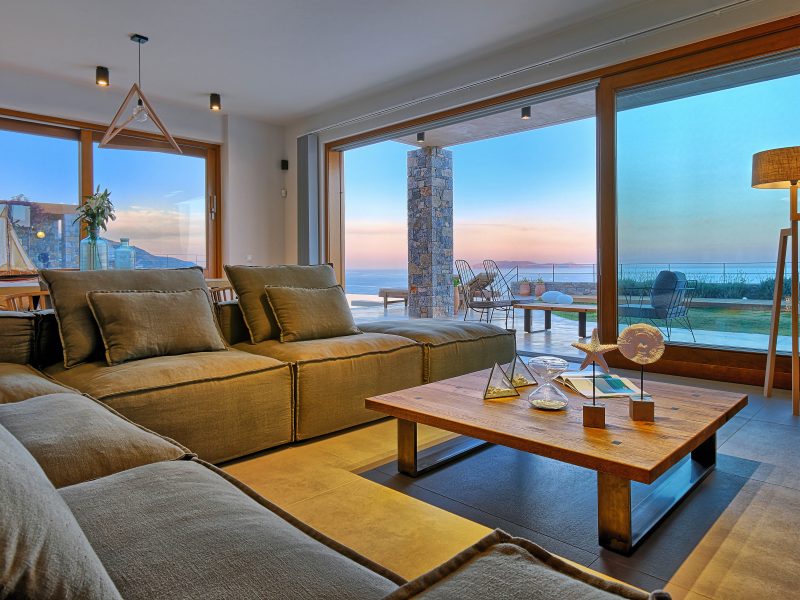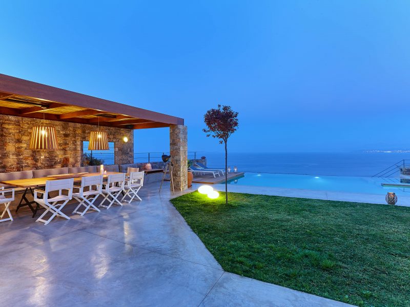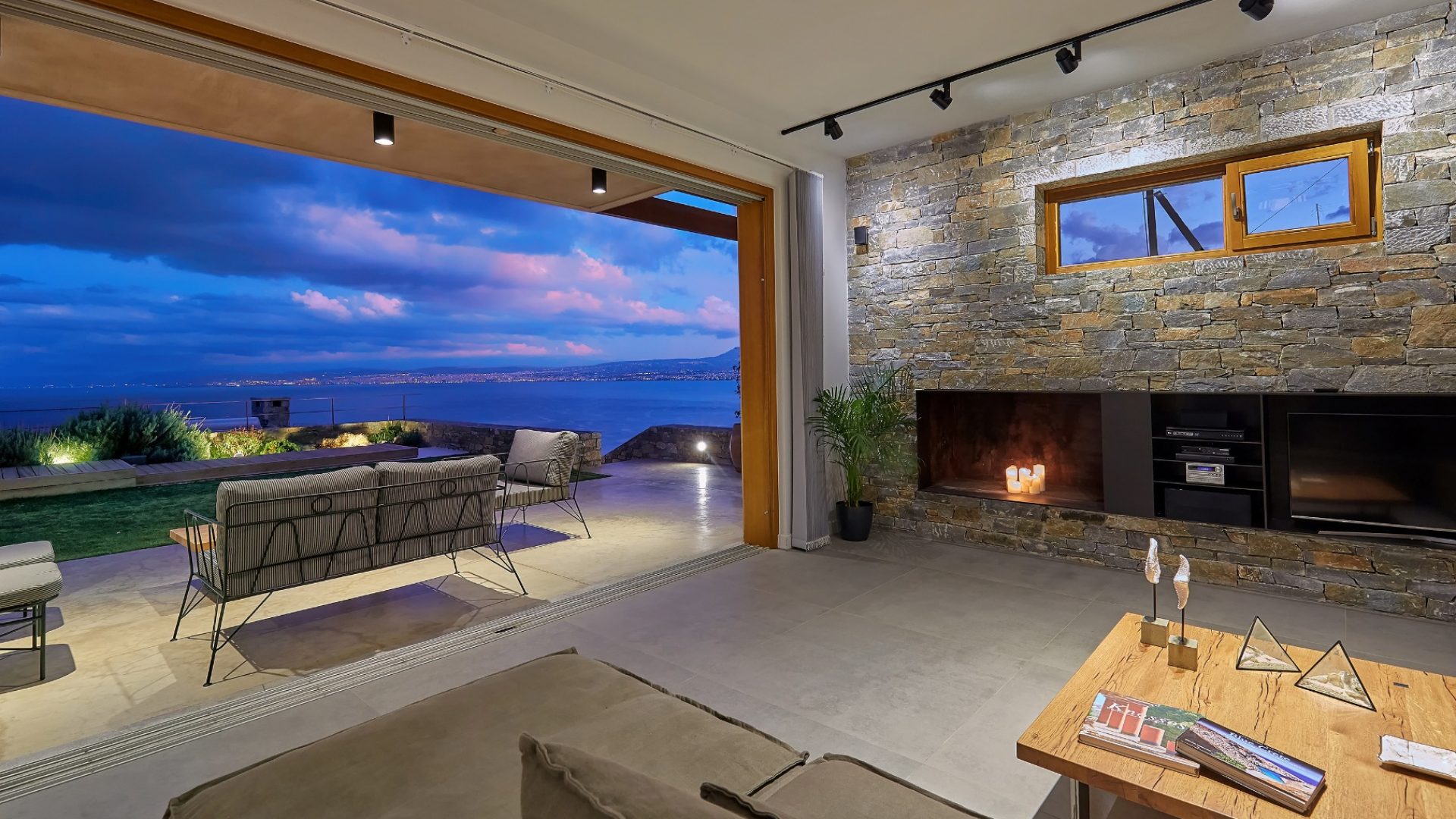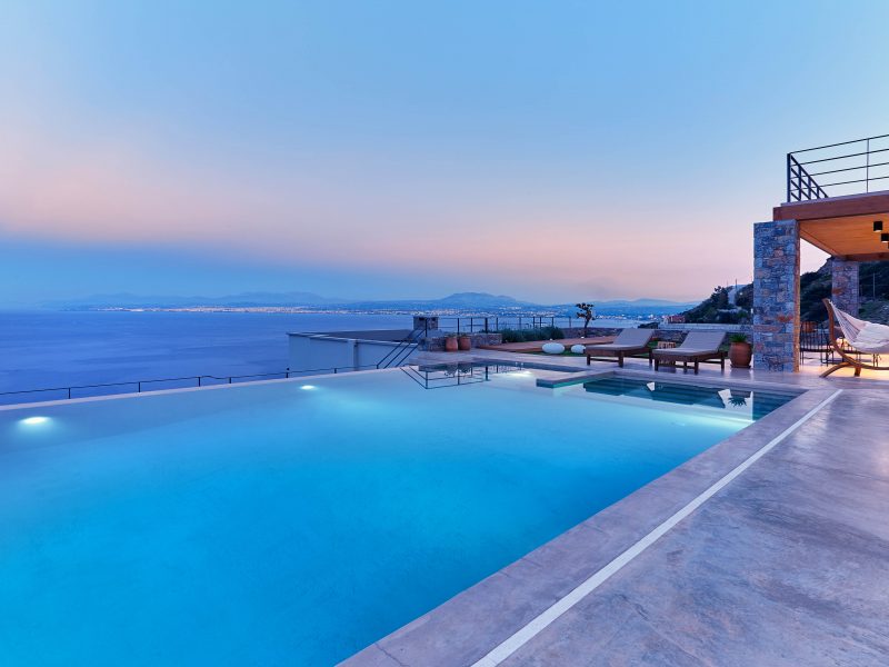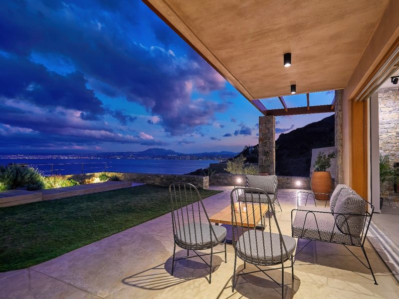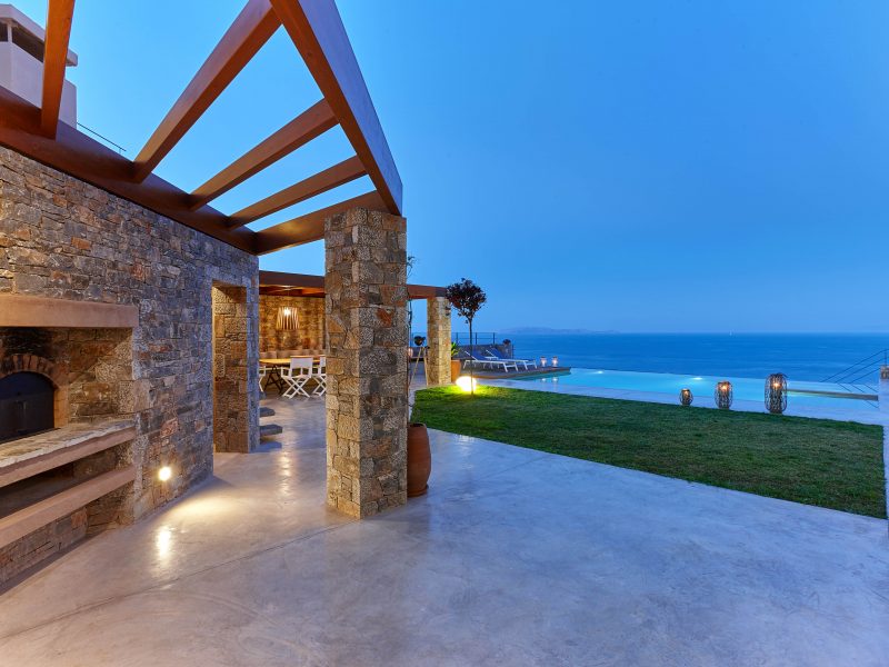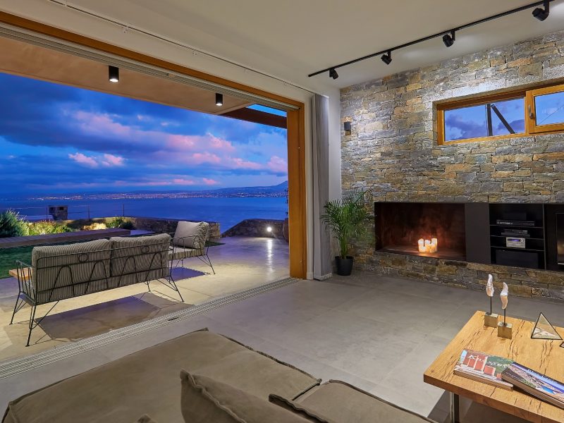 The location of the Villa offers splendid views of the deep blue and an idyllic environment of harmony, relaxation and discrete luxury surrounded by Crete’s nature. The distance from the city center is 15km and 20 km from the Nikos Kazantzakis International Airport. The distance from the port is 15km & Knossos Palace is just 17km away.
