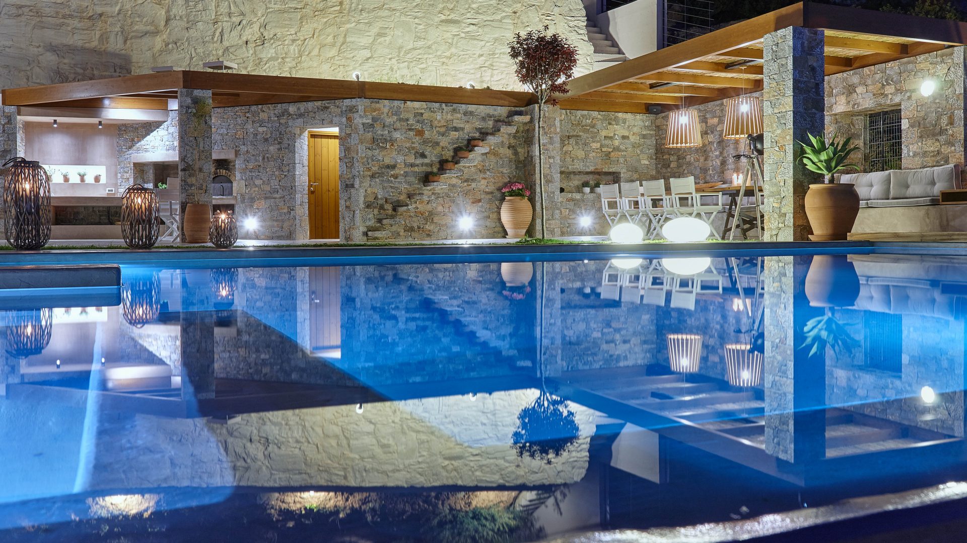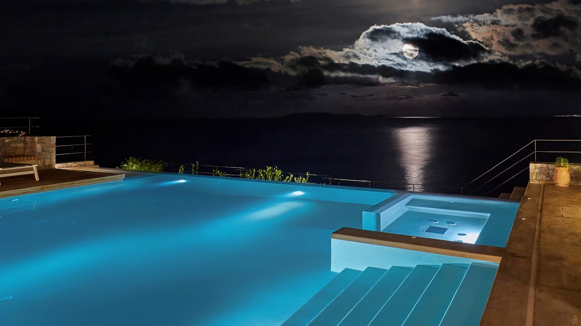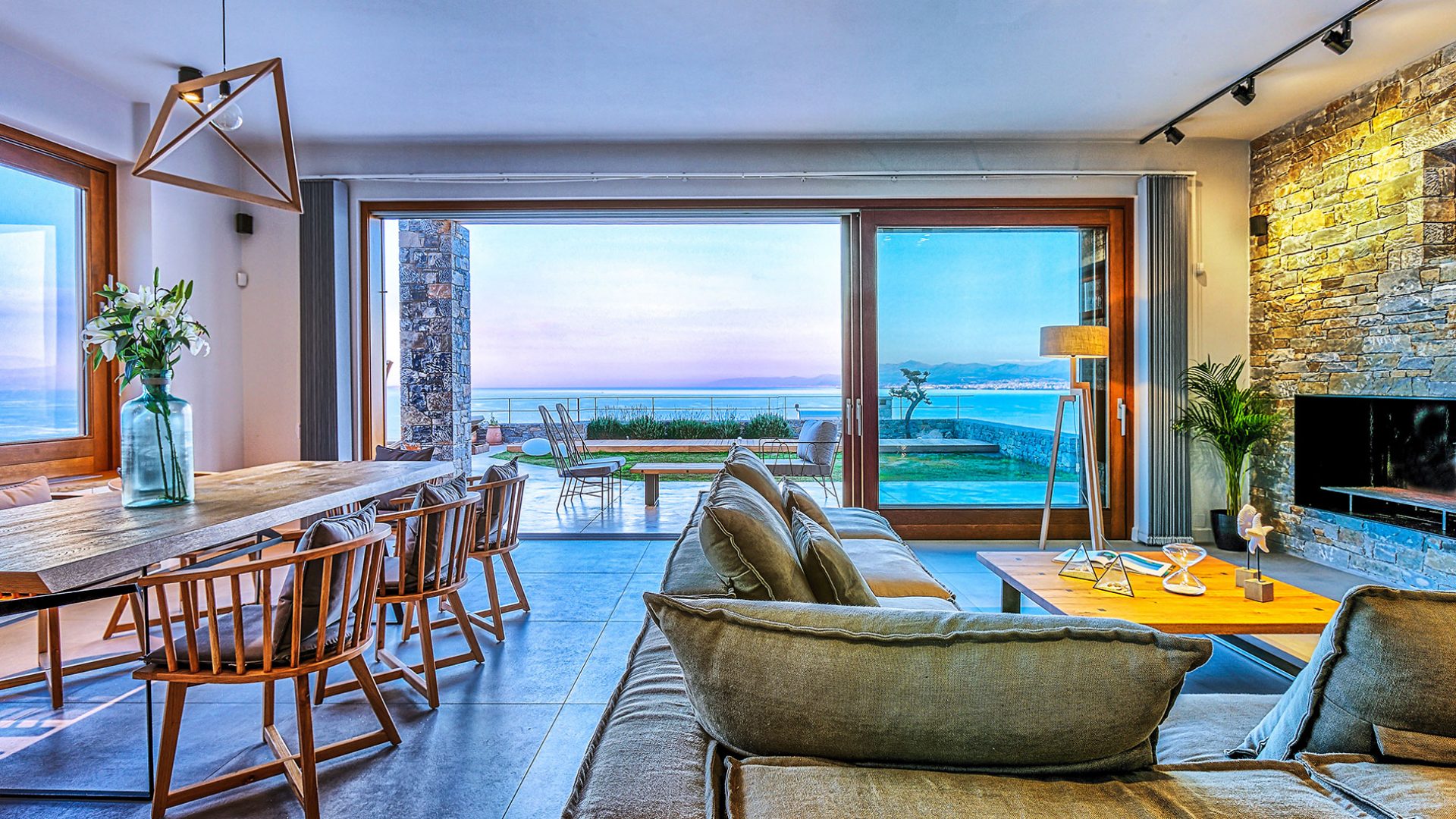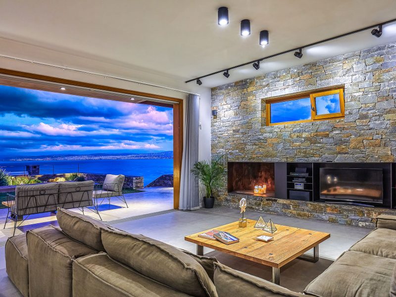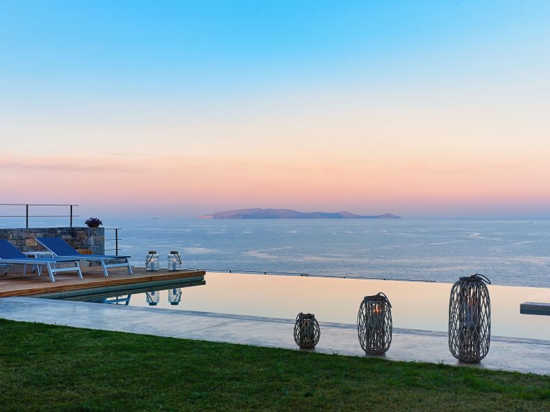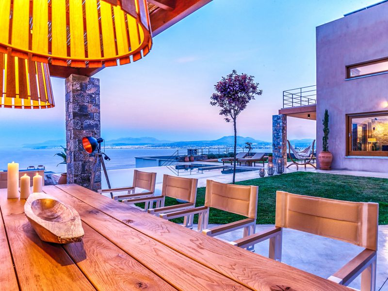 The location of the Villa offers splendid views of the deep blue and an idyllic environment of harmony, relaxation and discrete luxury surrounded by Crete’s nature. The distance from the city center is 15km and 20 km from the Nikos Kazantzakis International Airport. The distance from the port is 15km & Knossos Palace is just 17km away.