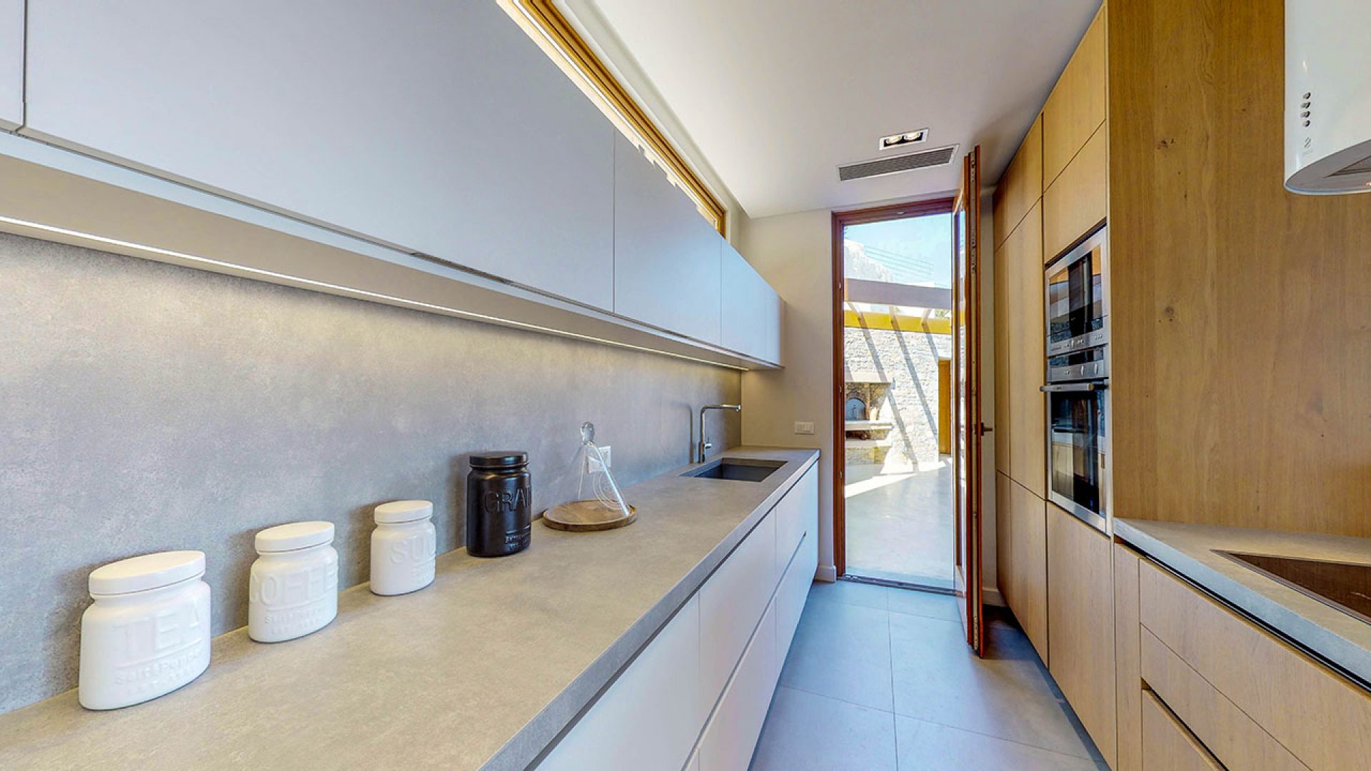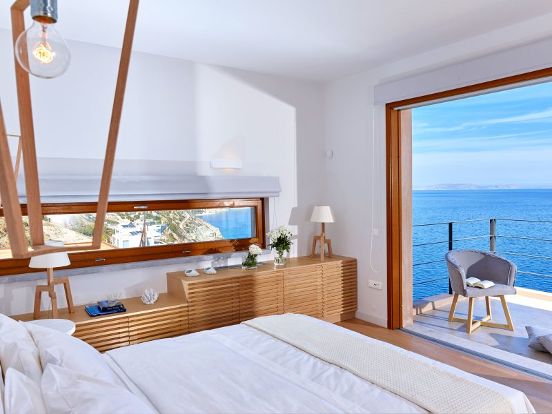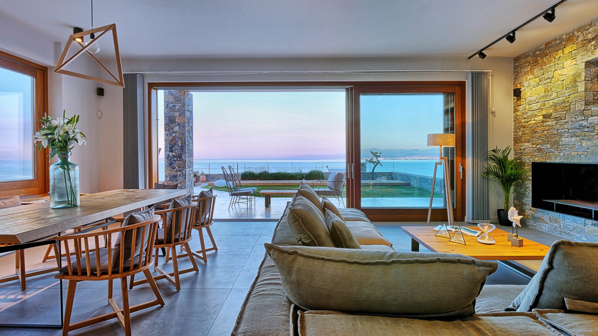 On the ground floor you will find the luxurious open space living room & kitchen area with hand-picked, stylish sofas & specially made furniture for you to enjoy the splendid views & share moments with your friends or family.