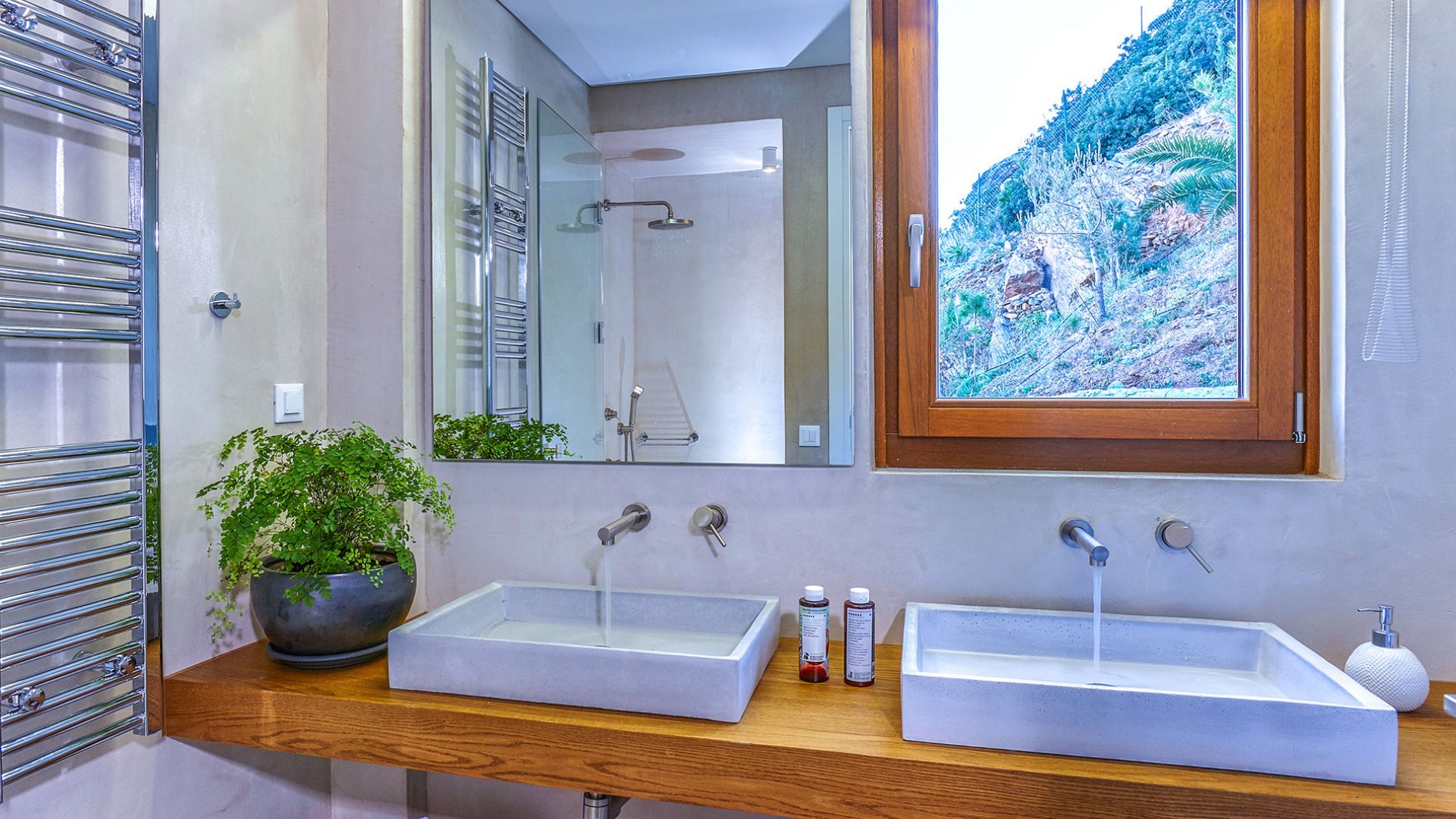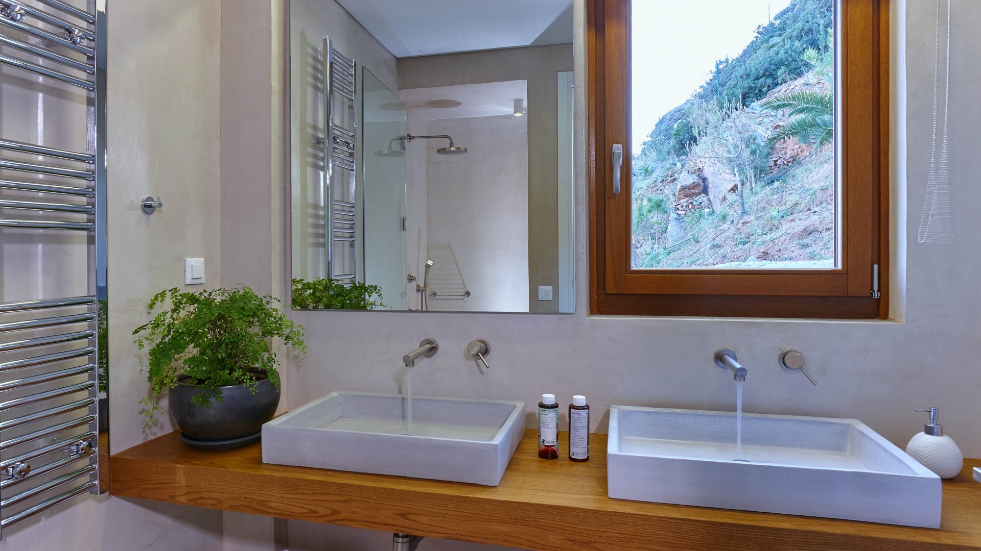 The main bathroom with shower services the extra bedrooms. All bedrooms are equipped with CocoMat natural full latex anatomic mattresses & beddings to offer the ultimate sleeping experience.