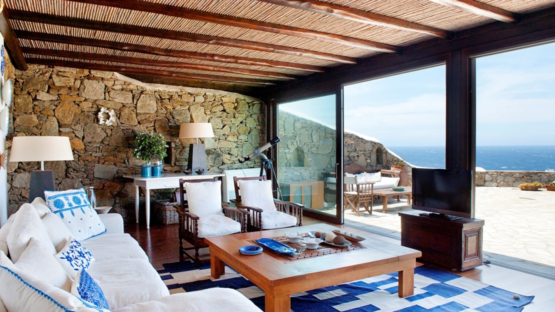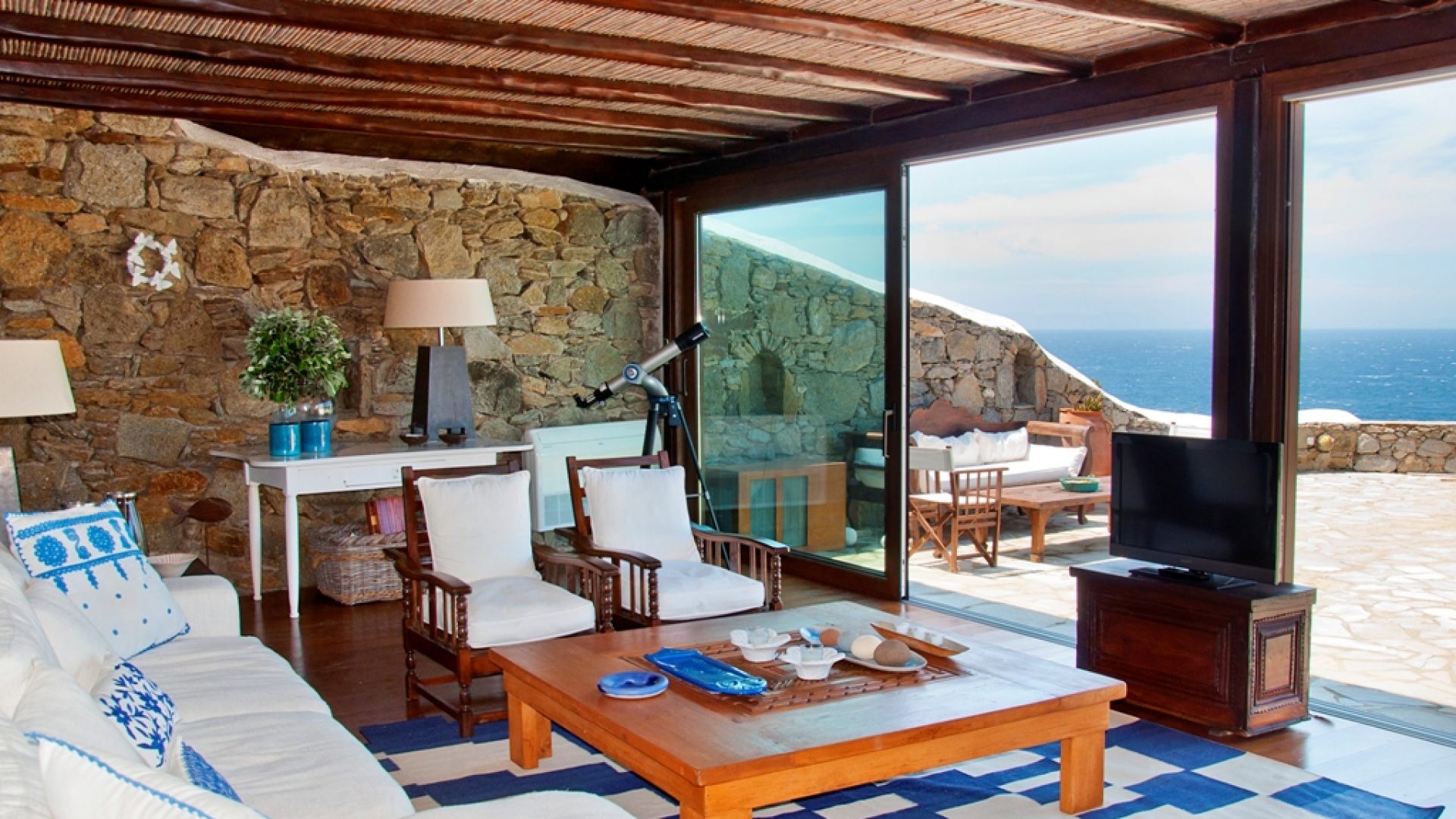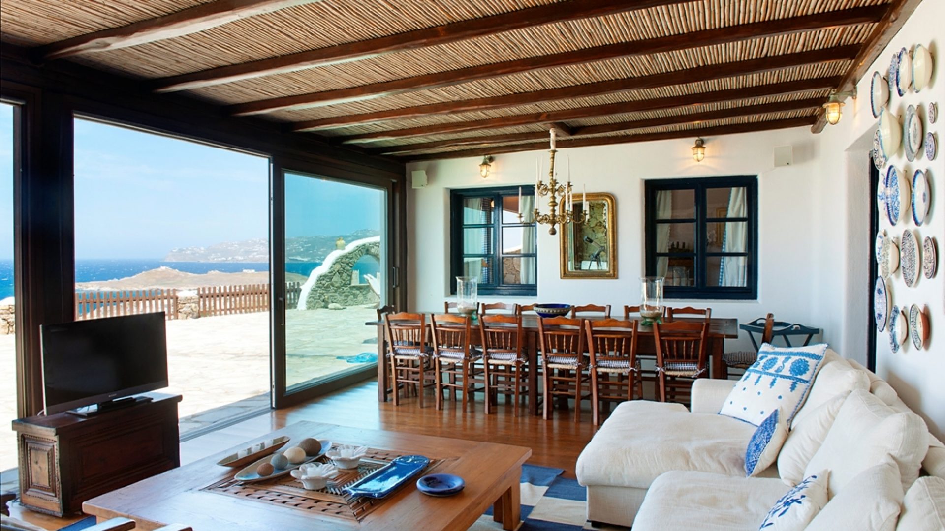 It has a wide open horizon and you can see Dilos and Tinos islands, Chora and Agios Stefanos. From the yard you can enjoy the best sunset of Mykonos.