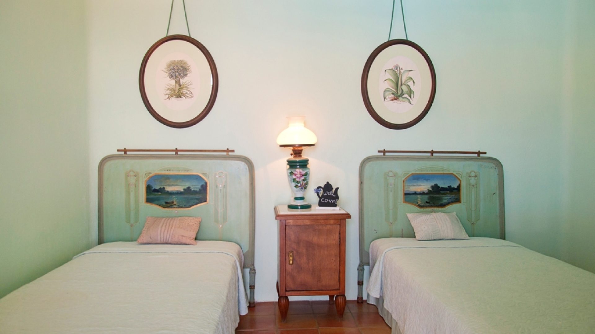 All the rooms are air conditioned. Three of the rooms have a view of the pool. The one bedroom has en suite bathroom and a small kitchen. The other two rooms also have their own bathrooms.
