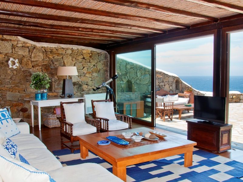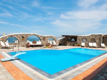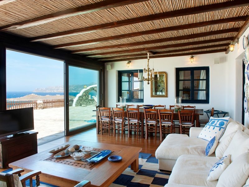 It has a wide open horizon and you can see Dilos and Tinos islands, Chora and Agios Stefanos. From the yard you can enjoy the best sunset of Mykonos.