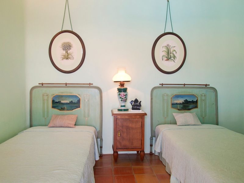 All the rooms are air conditioned. Three of the rooms have a view of the pool. The one bedroom has en suite bathroom and a small kitchen. The other two rooms also have their own bathrooms.