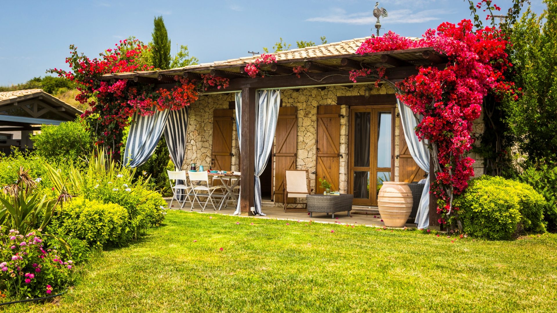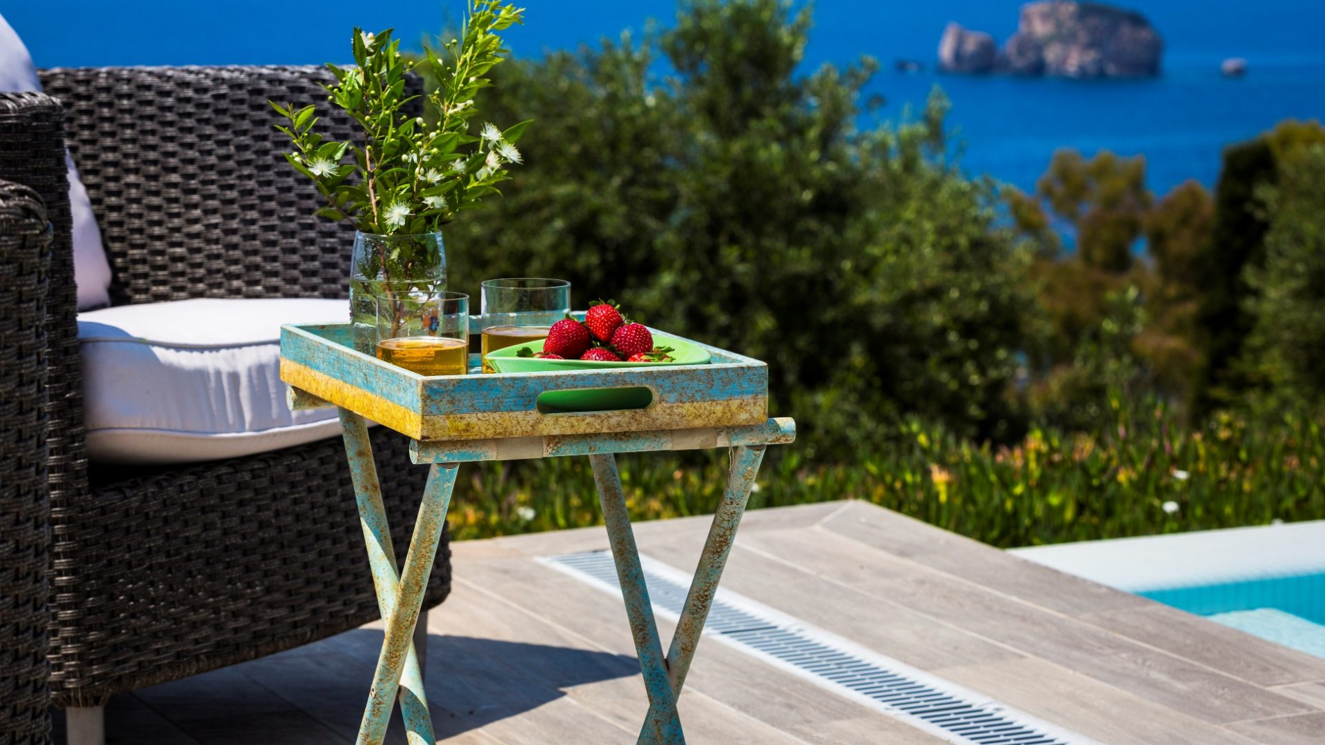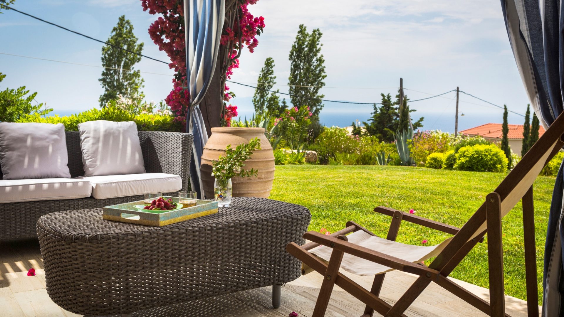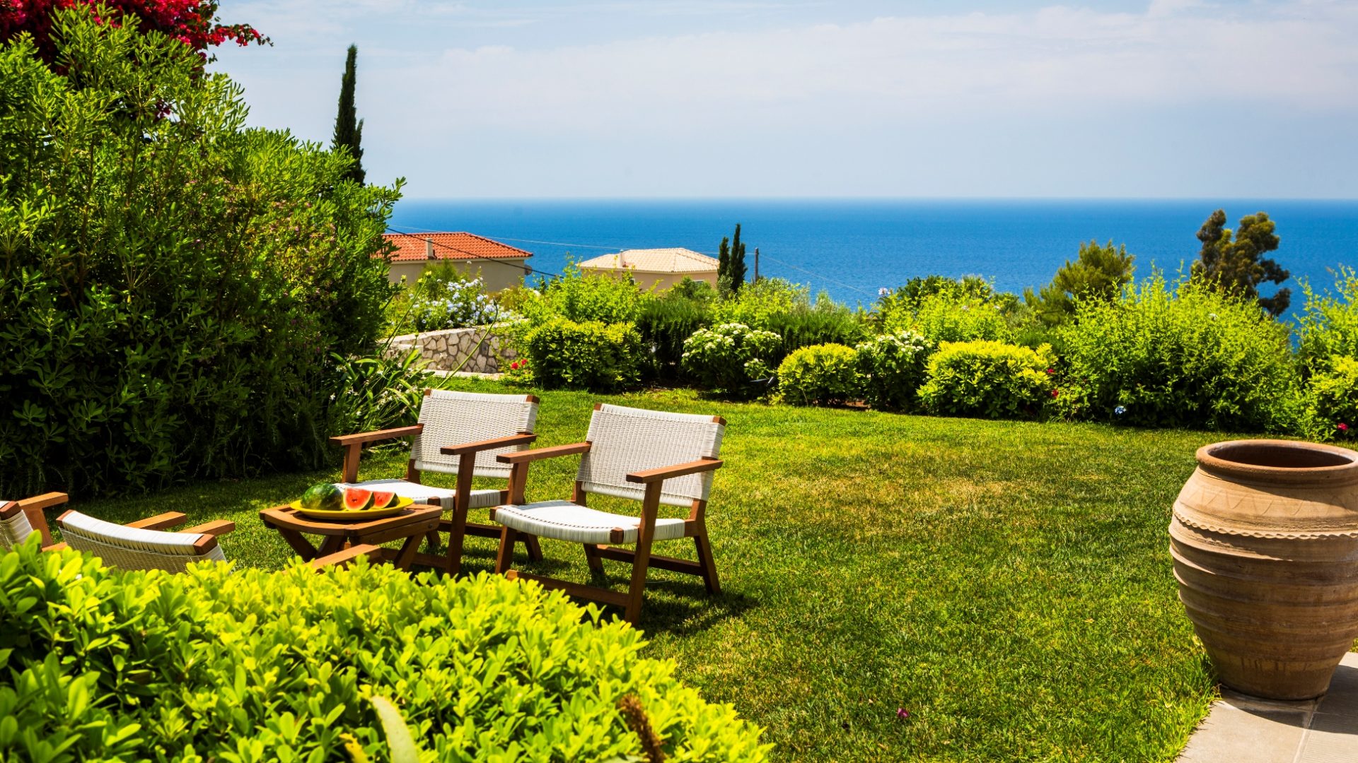 As you arrive, the eye is drawn to the stunning, vibrant hues of the striking landscape. Clear blue sky, deep blue seas, sparkling clear water in the swimming pool, rich, green rural tranquility and the Mount Aenos. We will show you the whole property and guide you through all the facilities. Also, we will give you a detailed description of what to do and how to take advantage of every single day on the island. We will make sure you can have the best-staying experience and meet the Greek Hospitality!