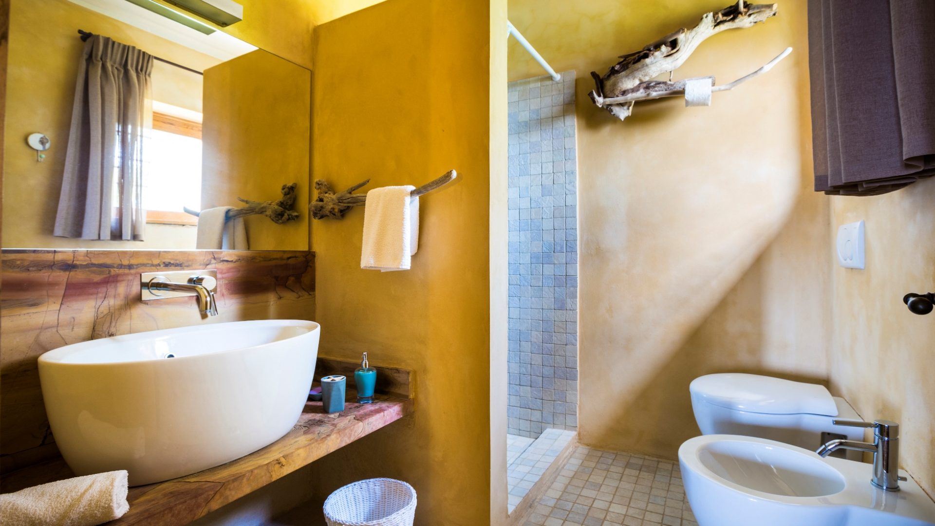 Villa Terra stone house is brand new, built in 2015 has all kind of amenities. Designed and built with the highest quality and respect for the environment. Inside the house, you can find 2 separate bedrooms, one with double bed and the other 2 single beds that can be fixed to one double. Each bedroom has its own bathroom with shower and WC. A great variety of amenities are also found such as individual reading lamps next to the bed, lights for the kitchen and the outside space, big solar panels for warm water during your stay, great comfort mattresses, a TV, the kitchen is fully equipped: a powerful oven and stoves, a microwave, a coffee maker, a toaster, espresso coffee machine, washing machine and many more. Finally, AC units in each room will ensure a pleasant cool stay for the hot summer nights/days.
